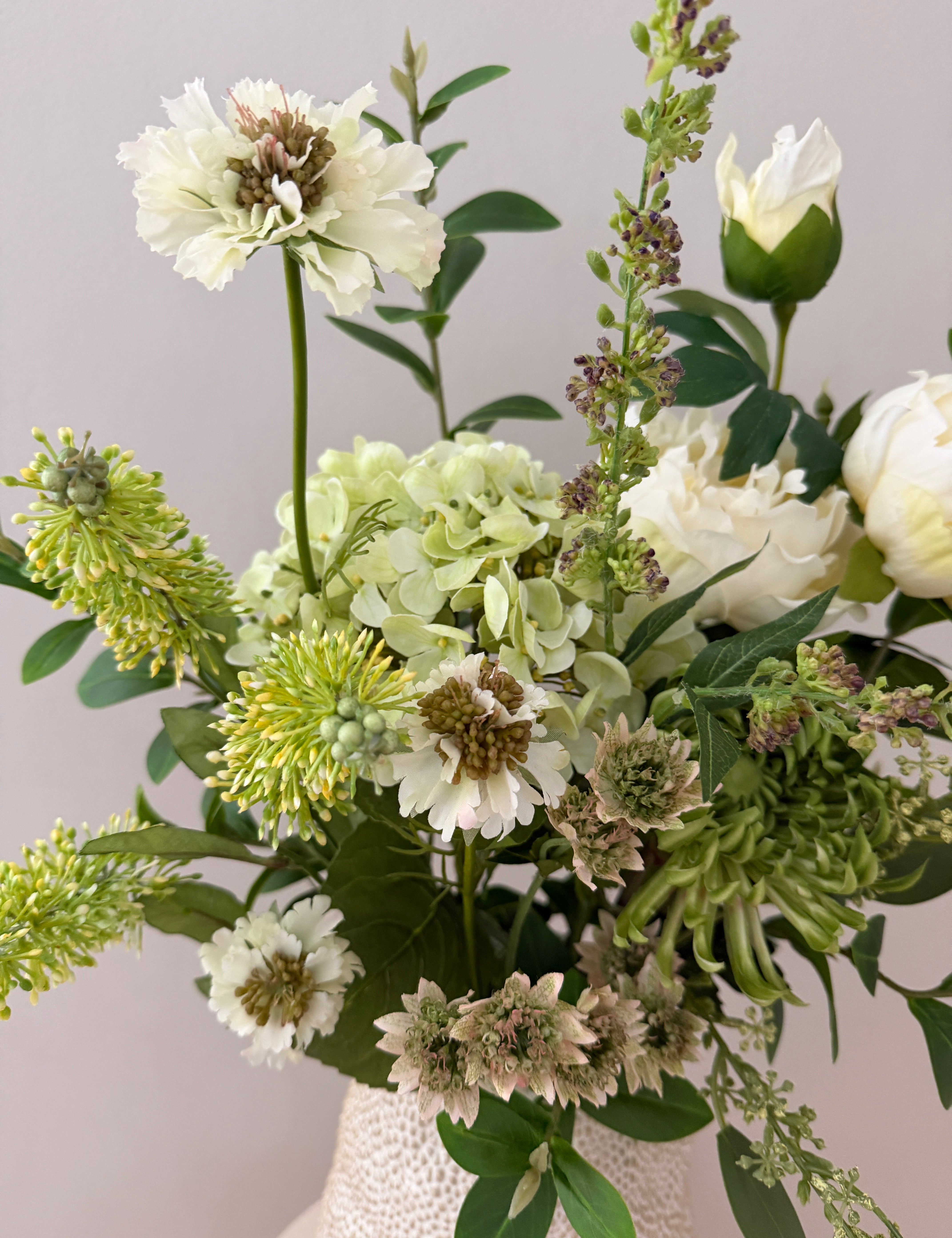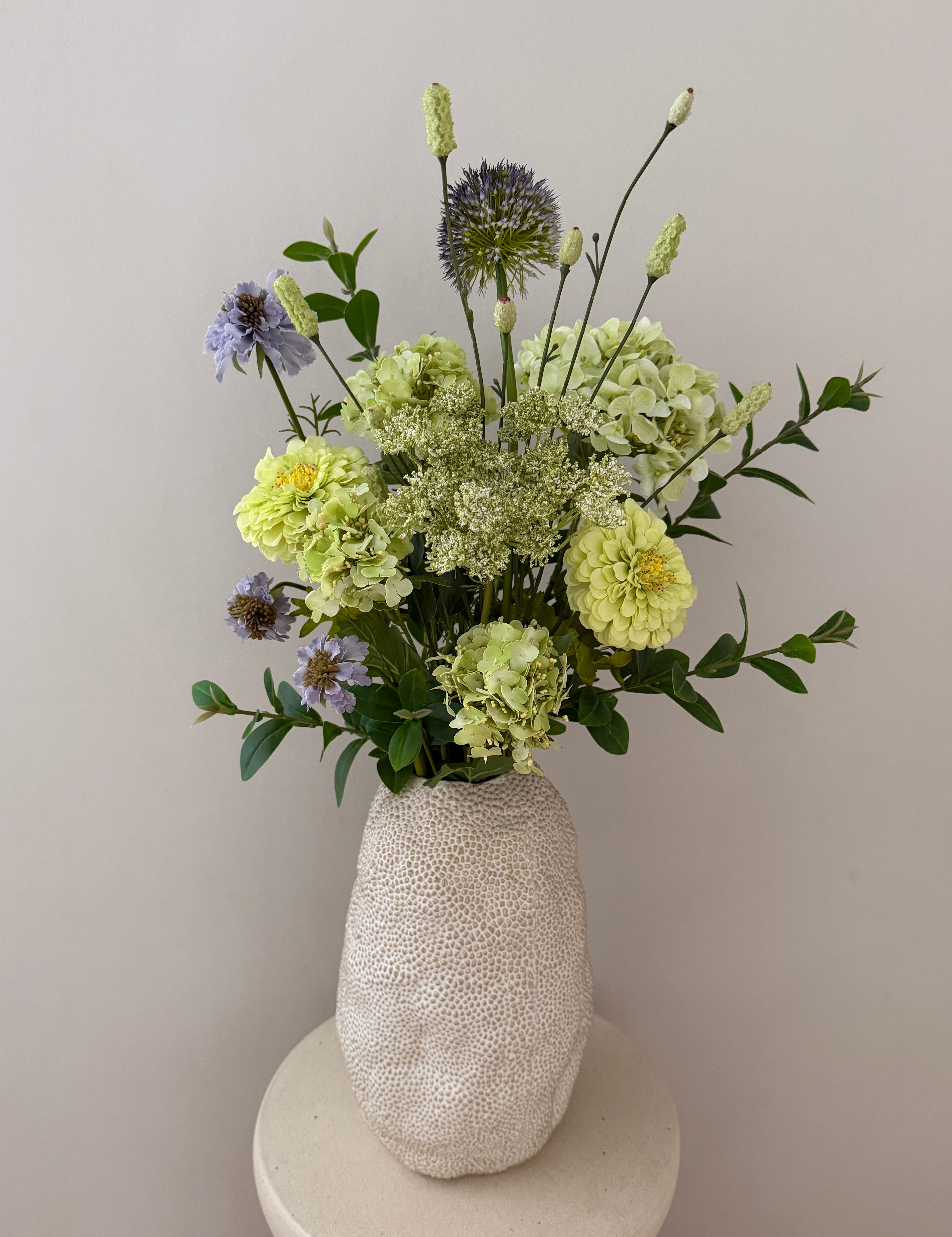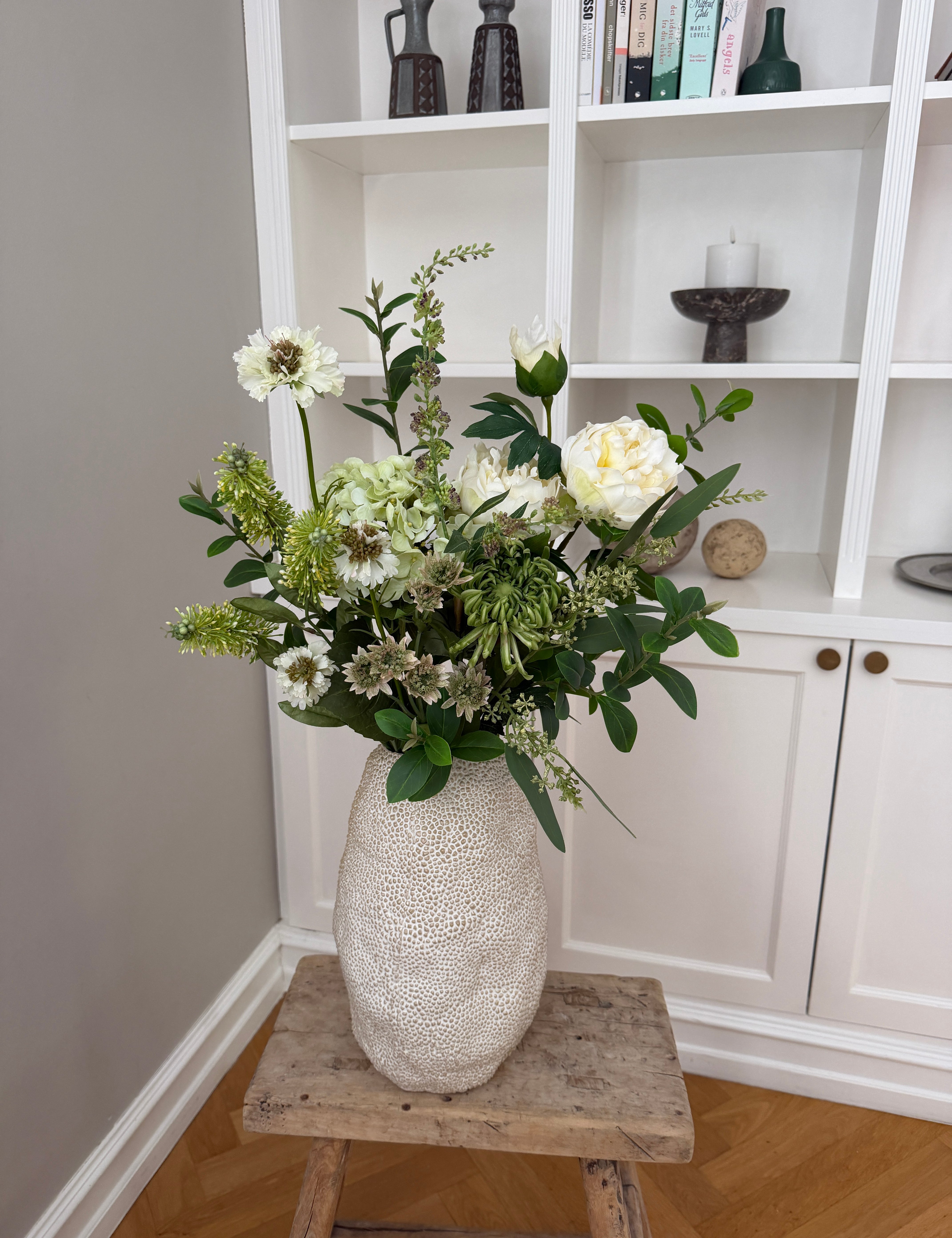 Hver stilk og blomst er nøje udvalgt for at skabe et udtryk, der føles levende, harmonisk og tidssvarende – og som holder sig smukt sæson efter sæson.