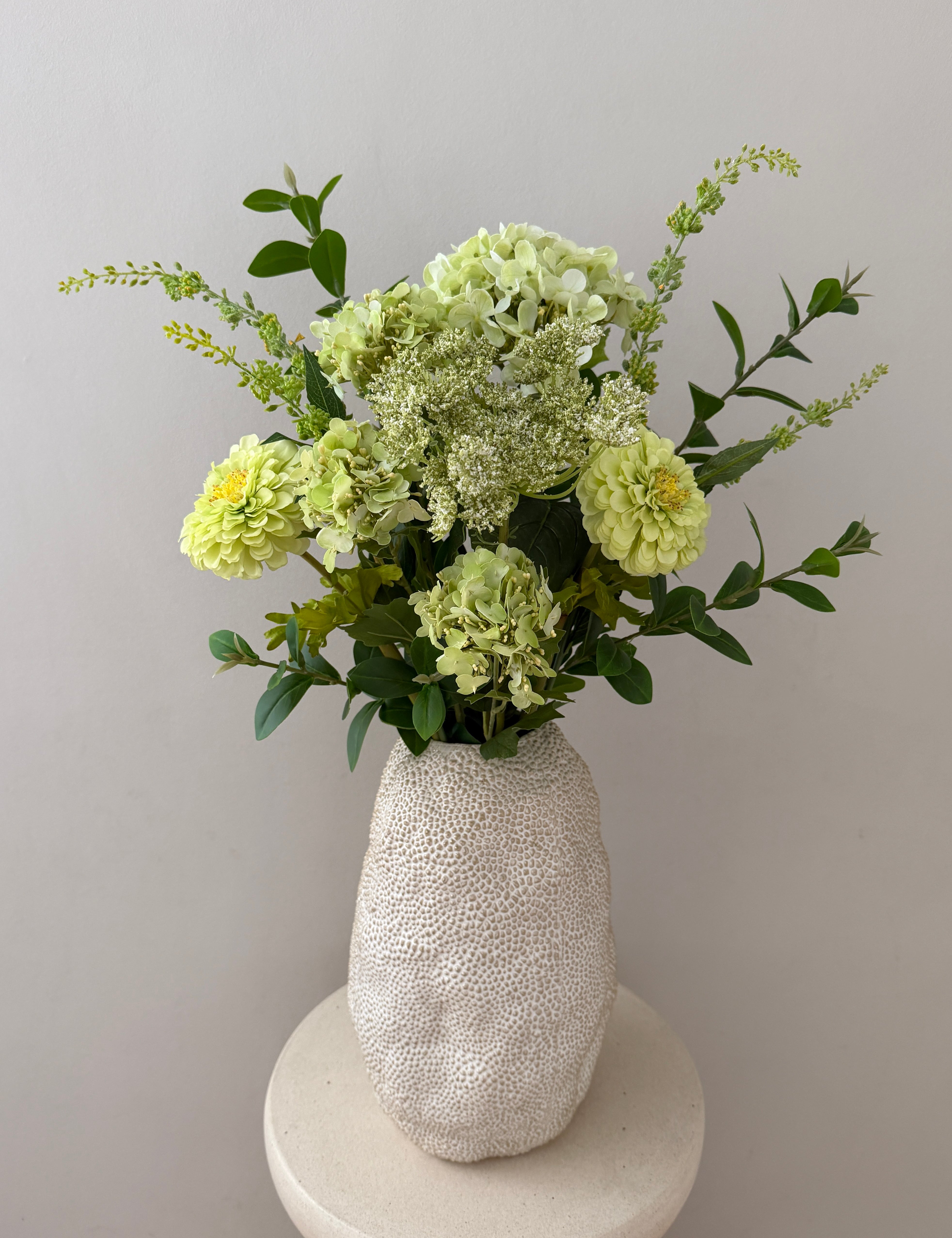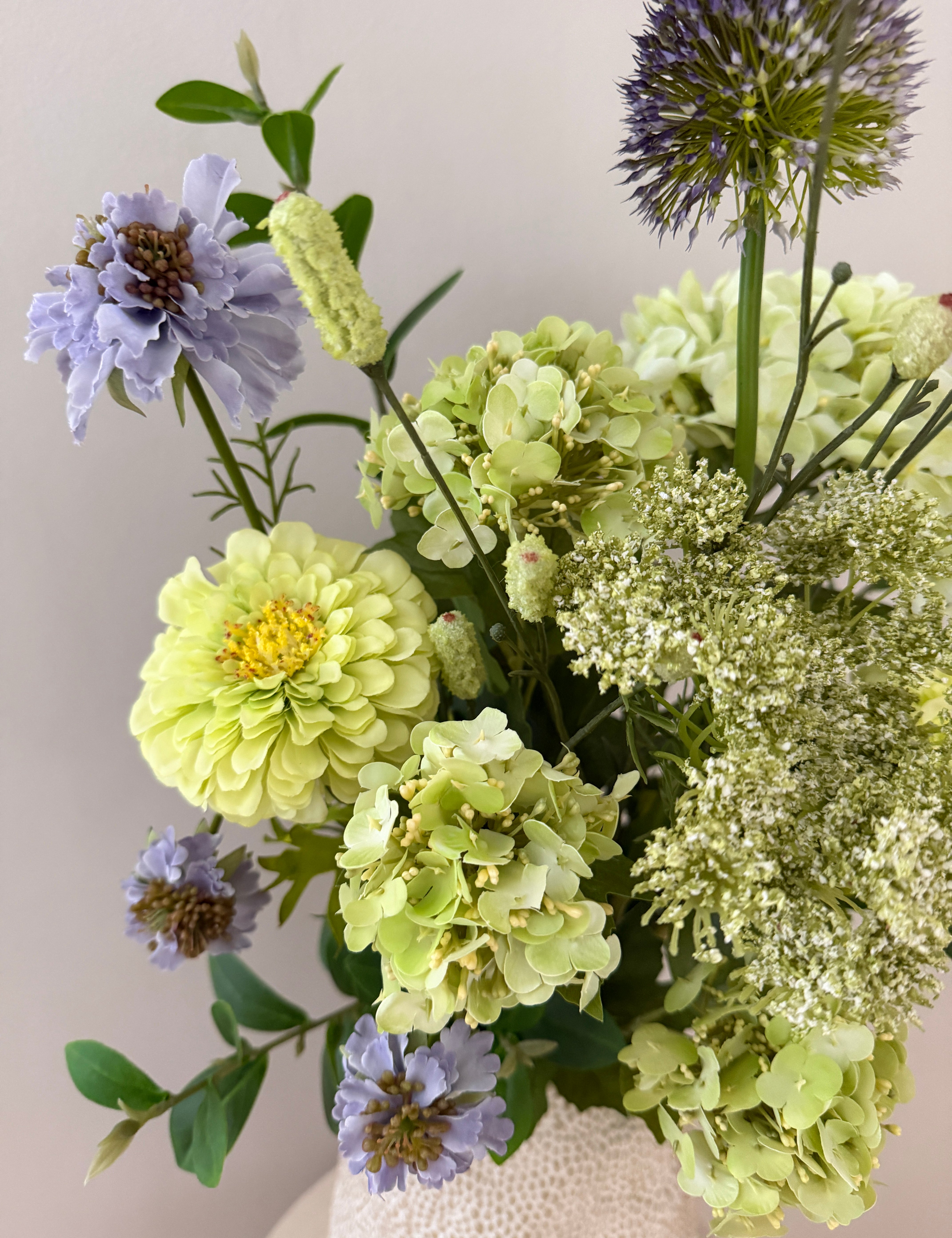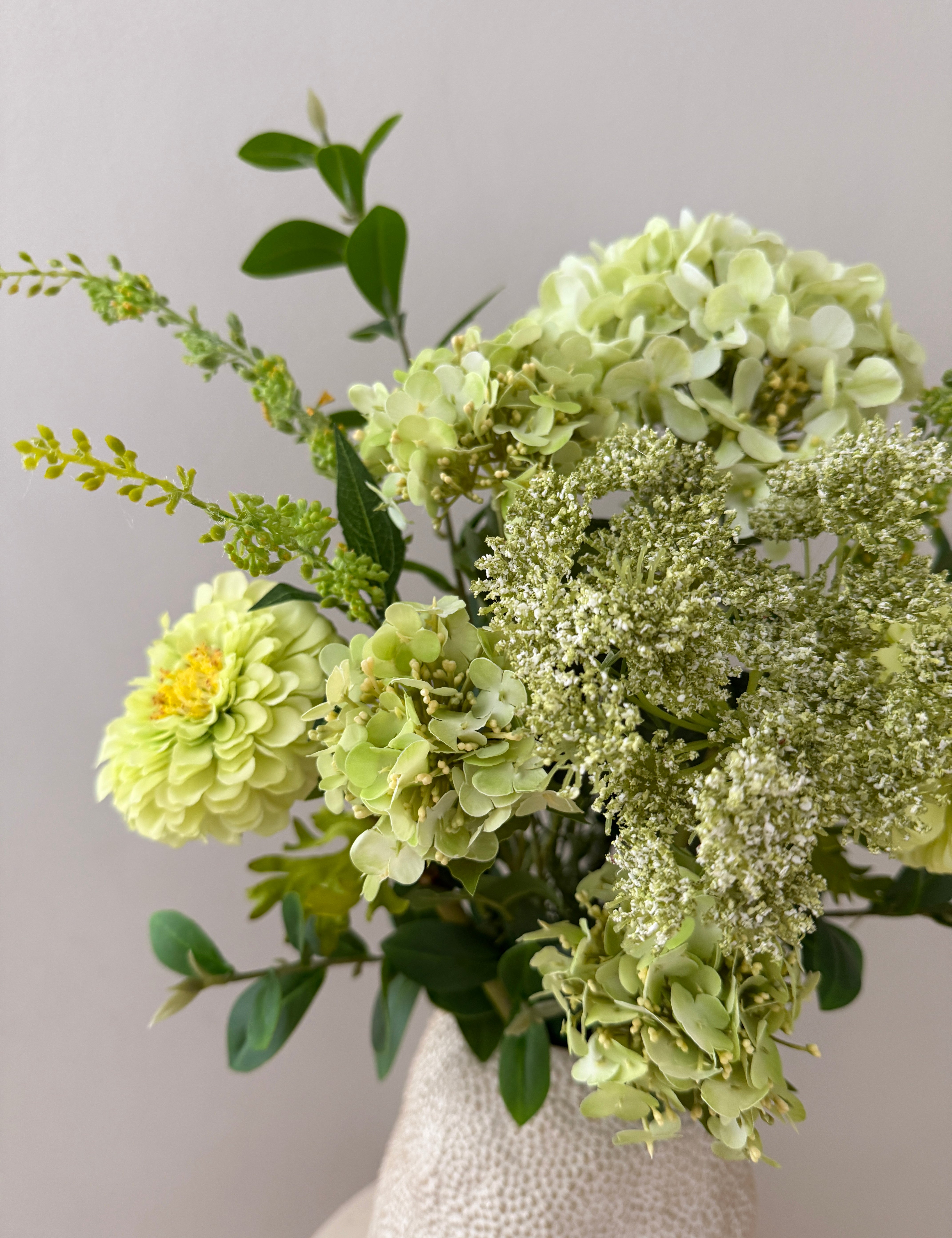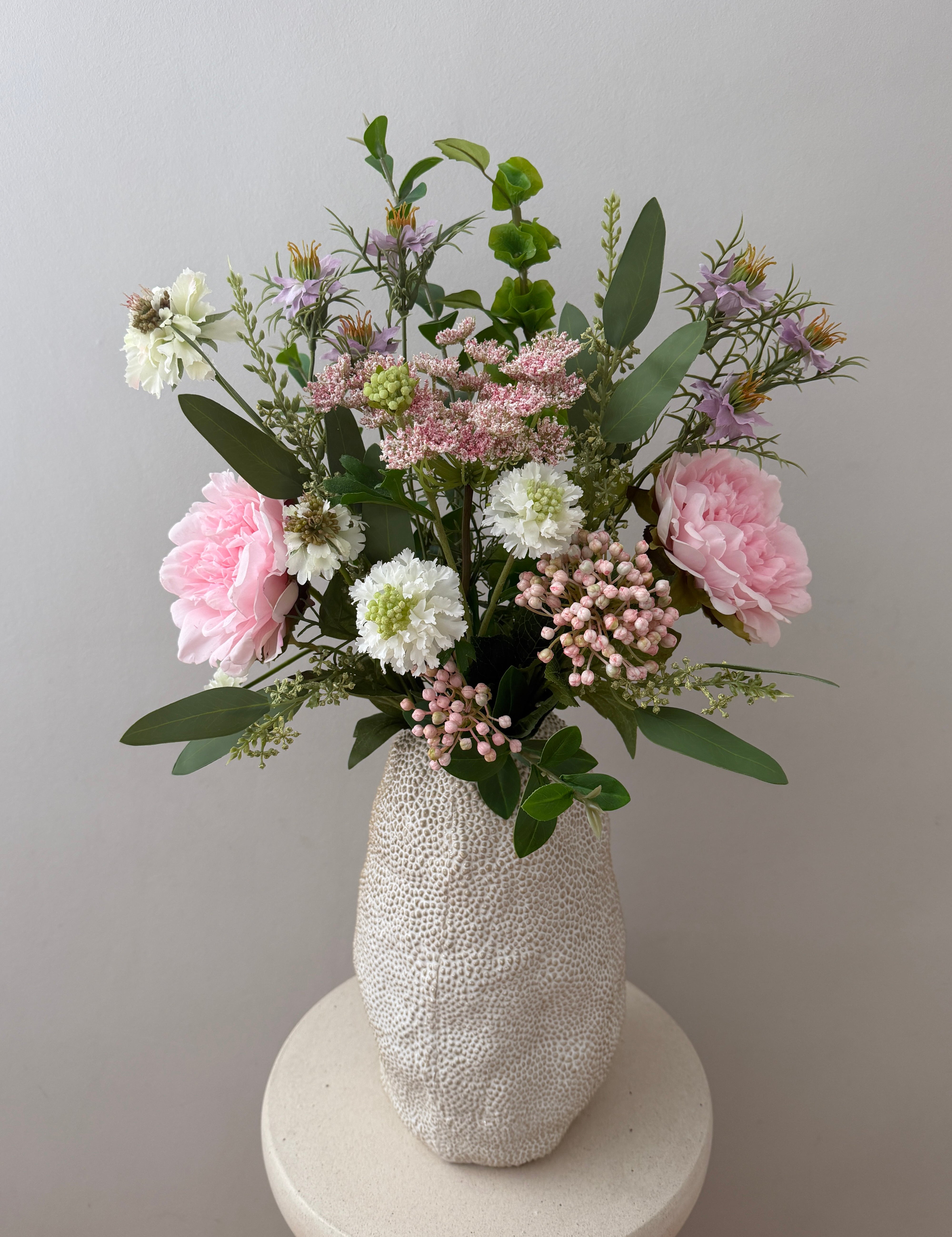 Hver stilk og blomst er nøje udvalgt for at skabe et udtryk, der føles levende, harmonisk og tidssvarende – og som holder sig smukt sæson efter sæson.