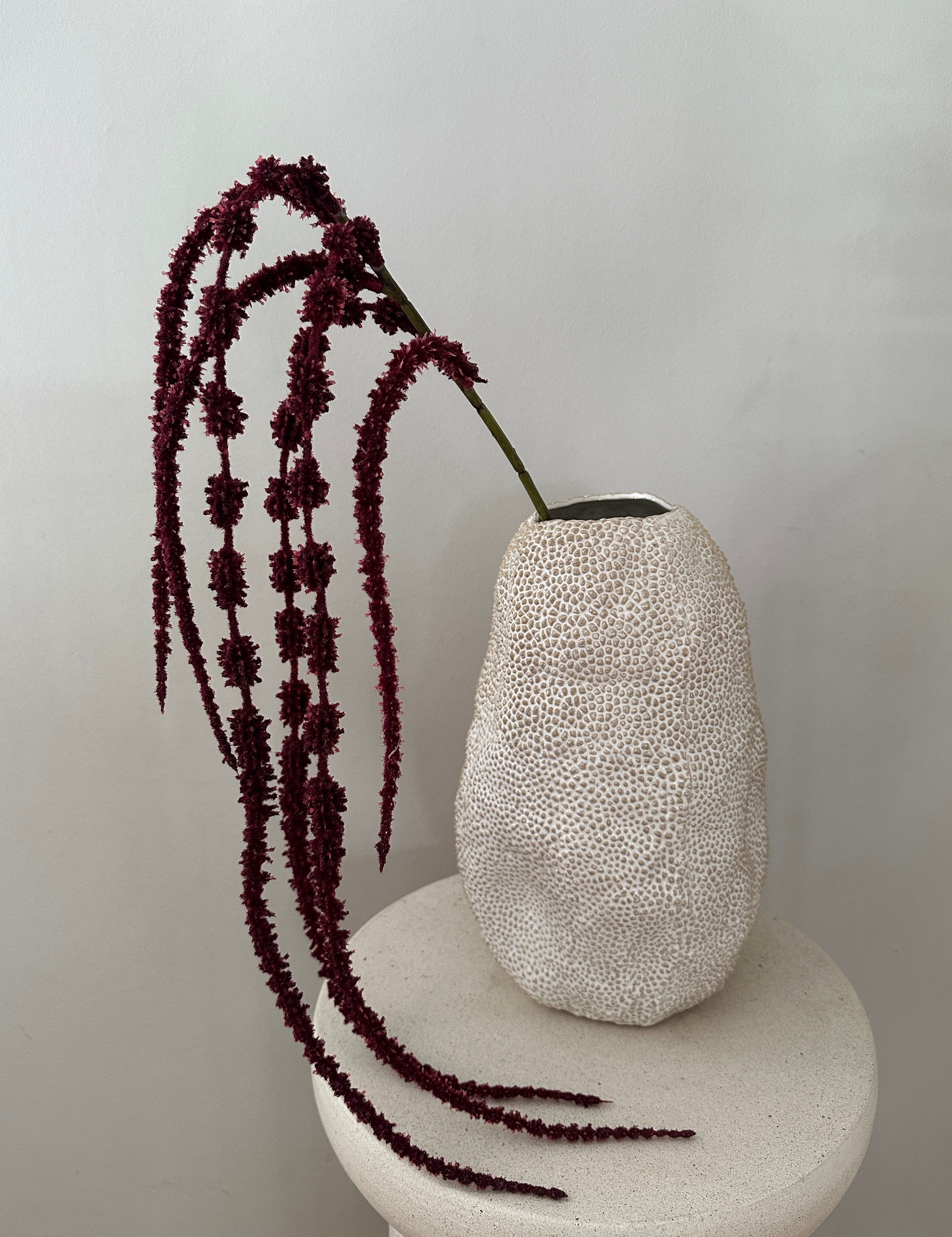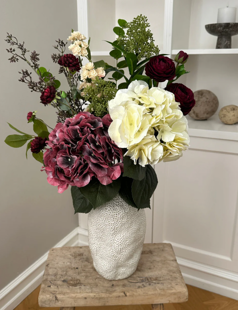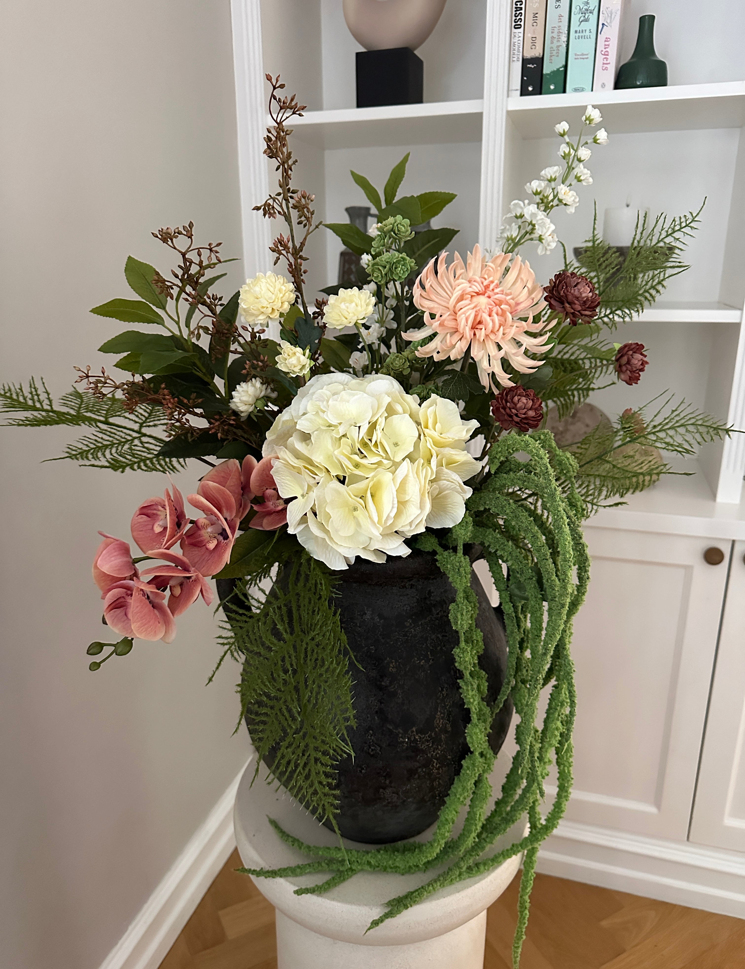 “Jeg elsker at eksperimentere med forskellige blomster og arrangere dem på nye måder, som passer til mit humør og årstiden. Friske buketter visner alt for hurtigt, så jeg elsker mulighederne, som kunstige blomster giver mig. For mig er det vigtigt, at jeg nemt kan ændre udtrykket på min buket ved at udskifte enkelte stilke.
