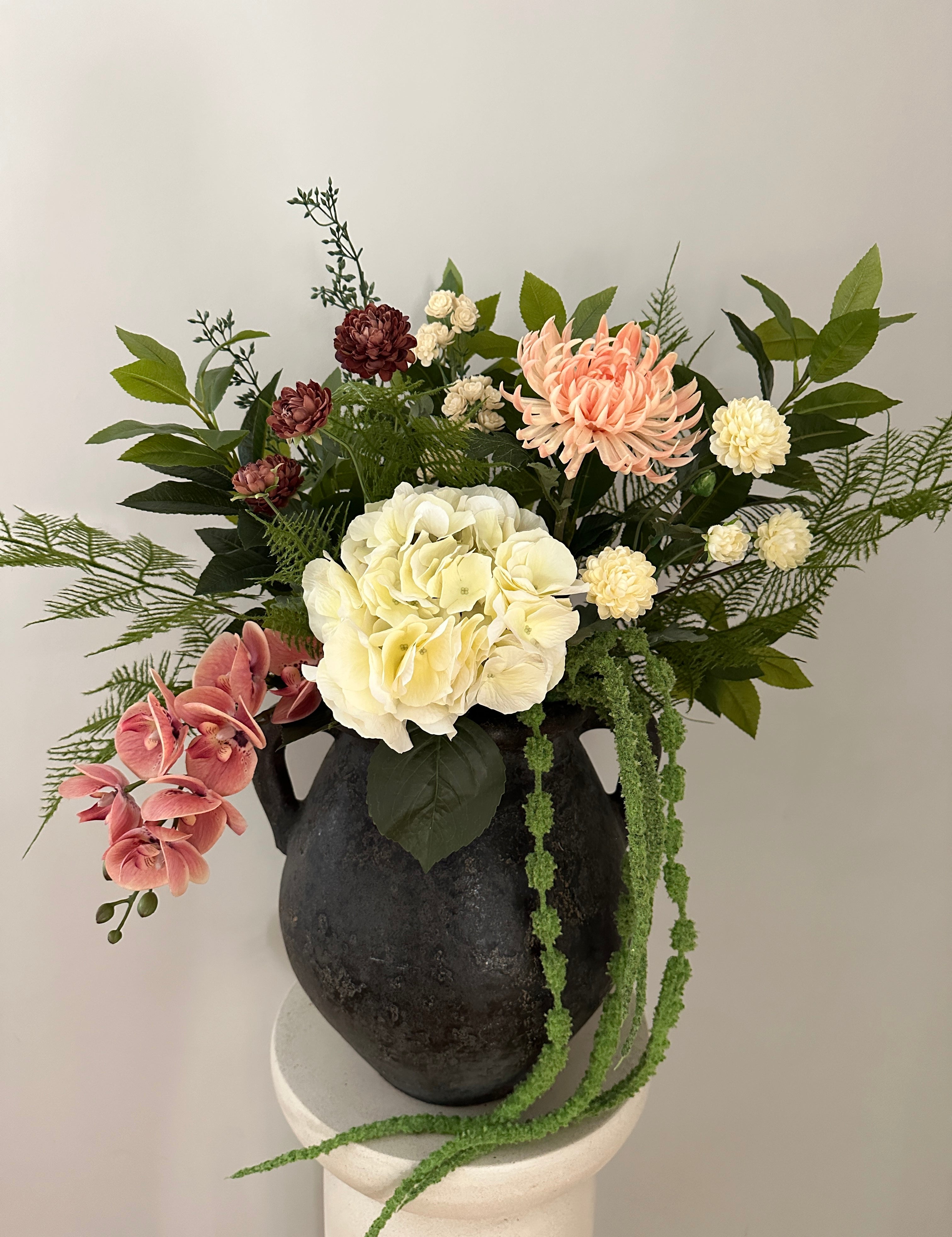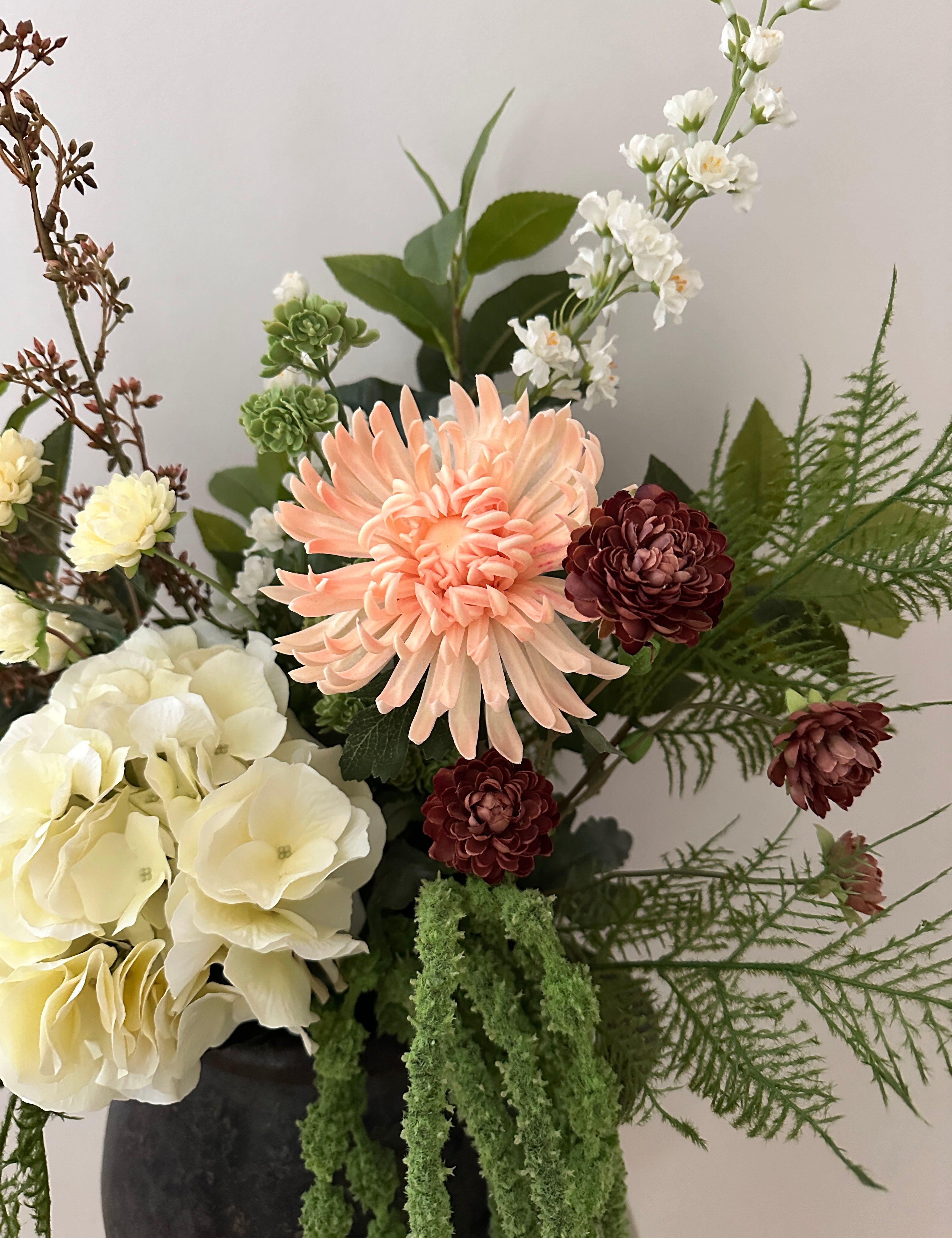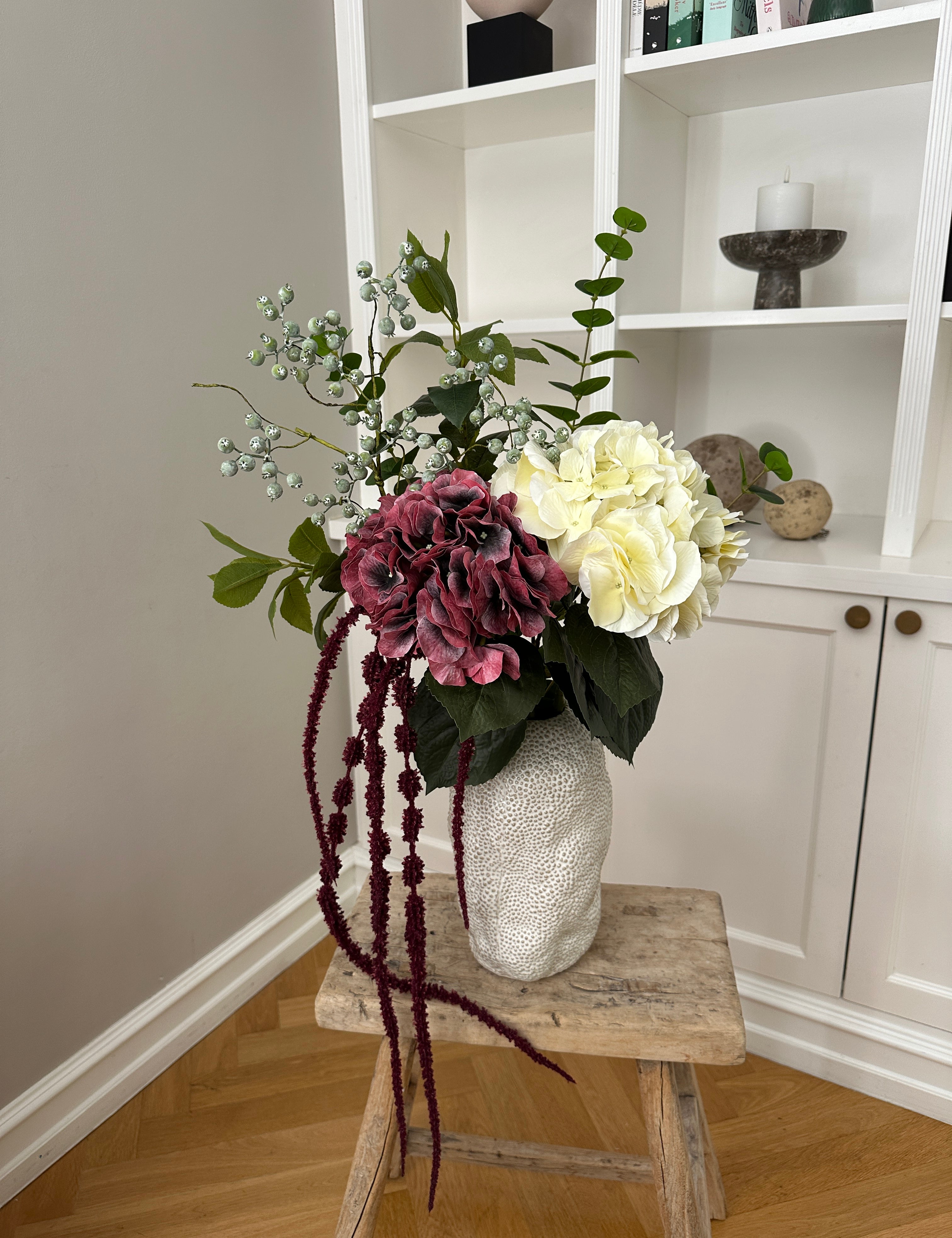 “Jeg elsker at eksperimentere med forskellige blomster og arrangere dem på nye måder, som passer til mit humør og årstiden. Friske buketter visner alt for hurtigt, så jeg elsker mulighederne, som kunstige blomster giver mig. For mig er det vigtigt, at jeg nemt kan ændre udtrykket på min buket ved at udskifte enkelte stilke.