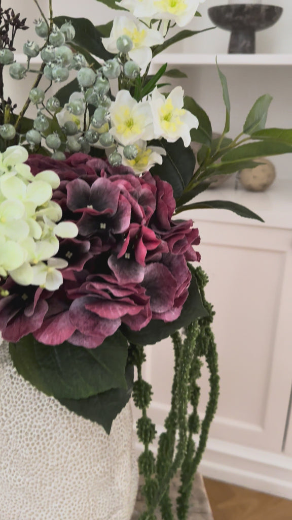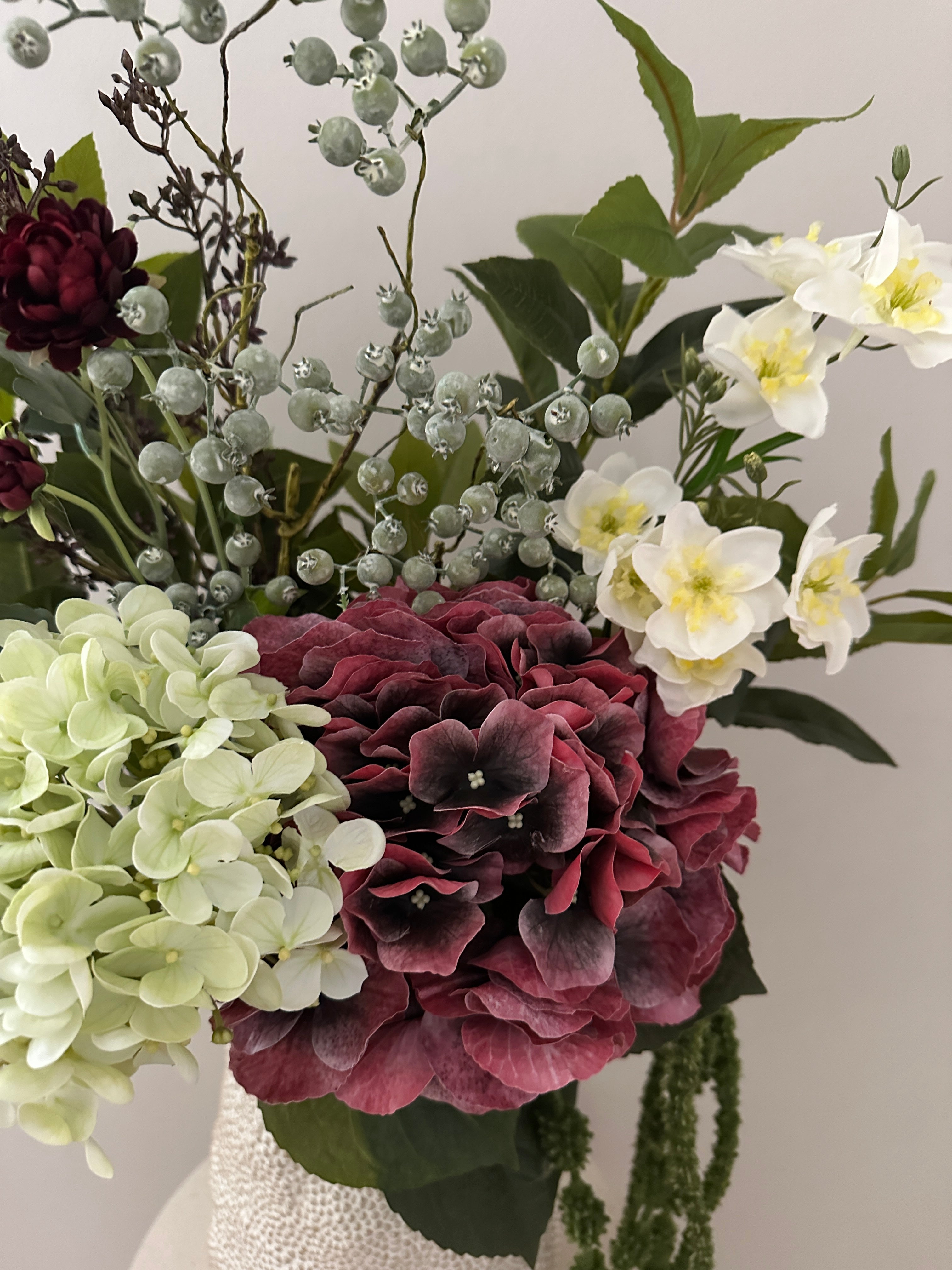Elegant buket af kunstige blomster i årstidens smukkeste farver.