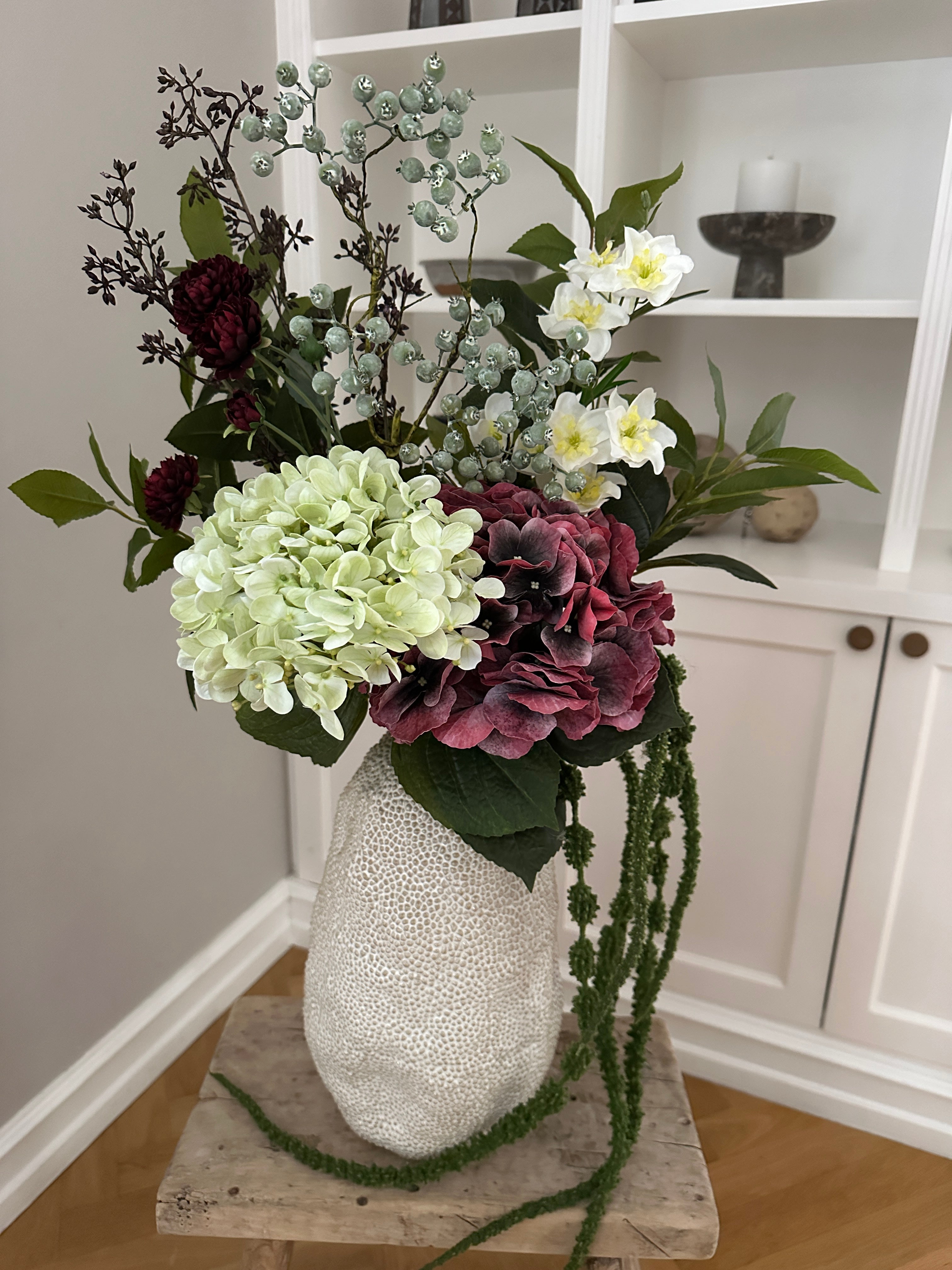 Kunstige blomster: Når du modtager buketten er det vigtigt, at du former og bukker stilkene, så buketten passer perfekt til netop din vase. Stilkene er ofte meget lange, men ved at bukke dem får du præcis det udtryk du godt kan lide. Så lad kreativiteten slippe løs!