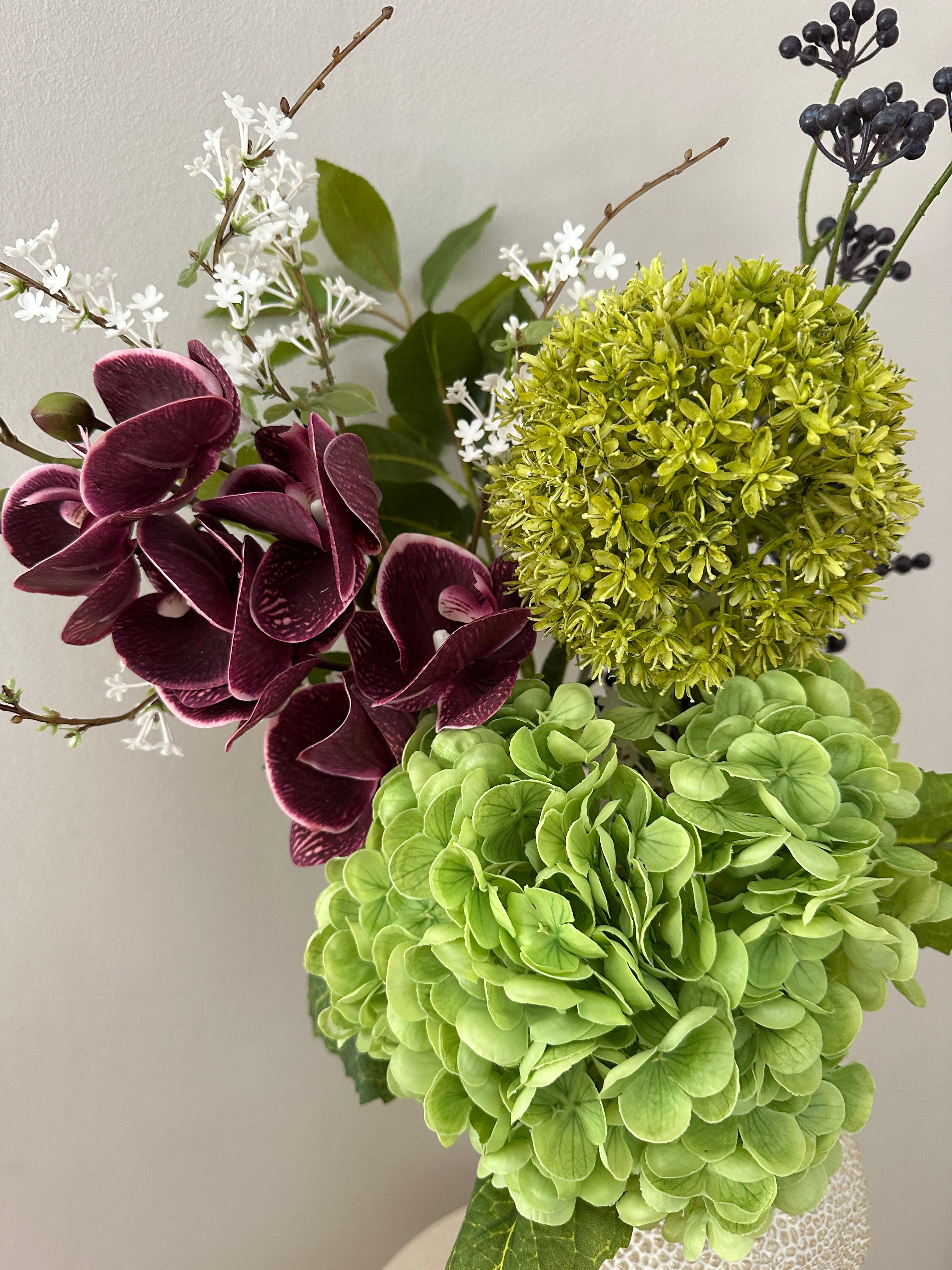 Smuk buket af kunstige blomster, som giver et tidløst touch til ethvert rum. De naturtro blomster ser ud som friske, og du kan nyde dem uden bekymringer om vanding eller pleje. Den perfekte dekoration til hjemmet, kontoret eller som gave, der kan glæde i lang tid.