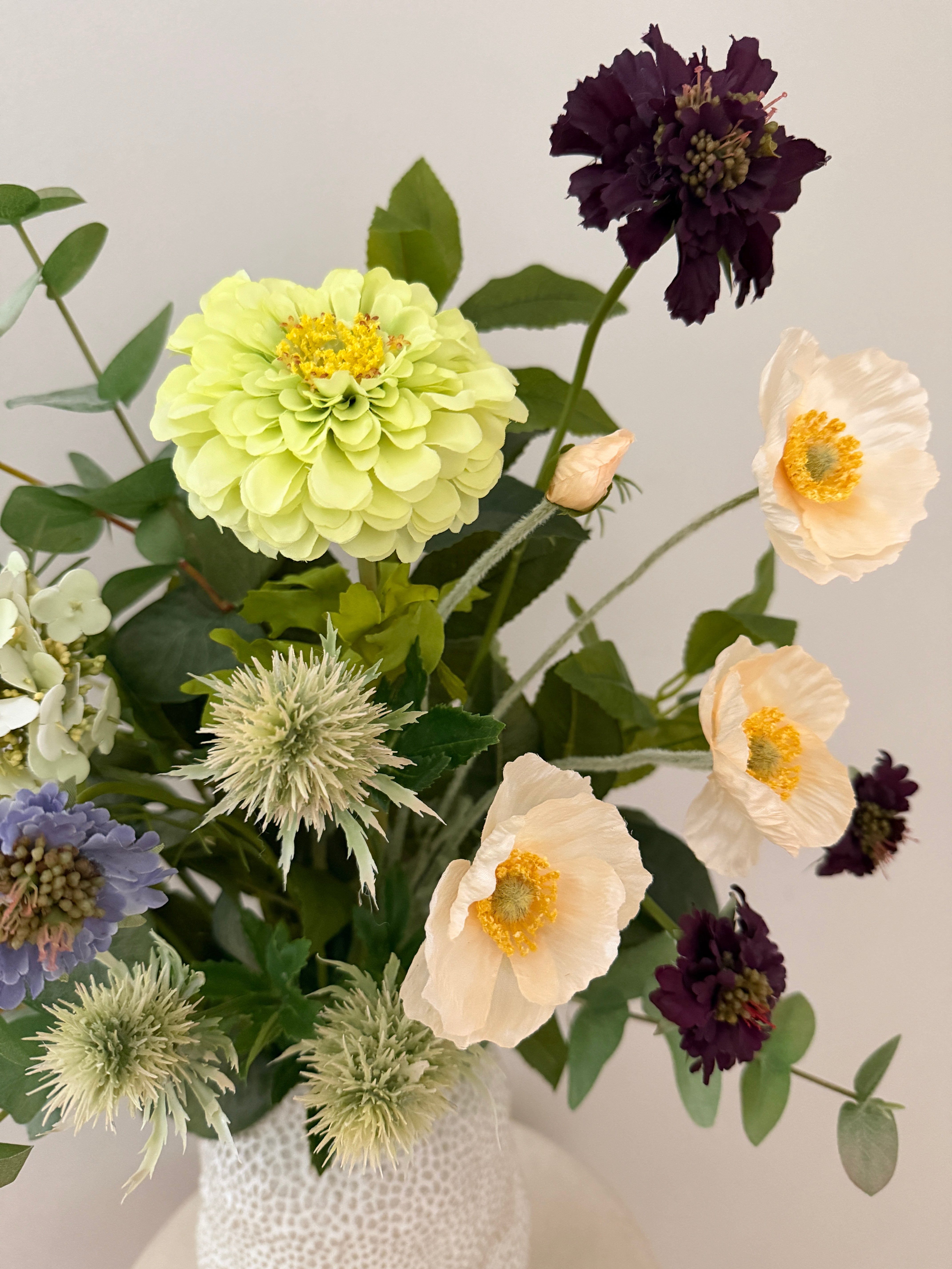 Kunstige blomster: Når du modtager buketten er det vigtigt, at du former og bukker stilkene, så buketten passer perfekt til netop din vase. Stilkene er ofte meget lange, men ved at bukke dem får du præcis det udtryk du godt kan lide. Så lad kreativiteten slippe løs!