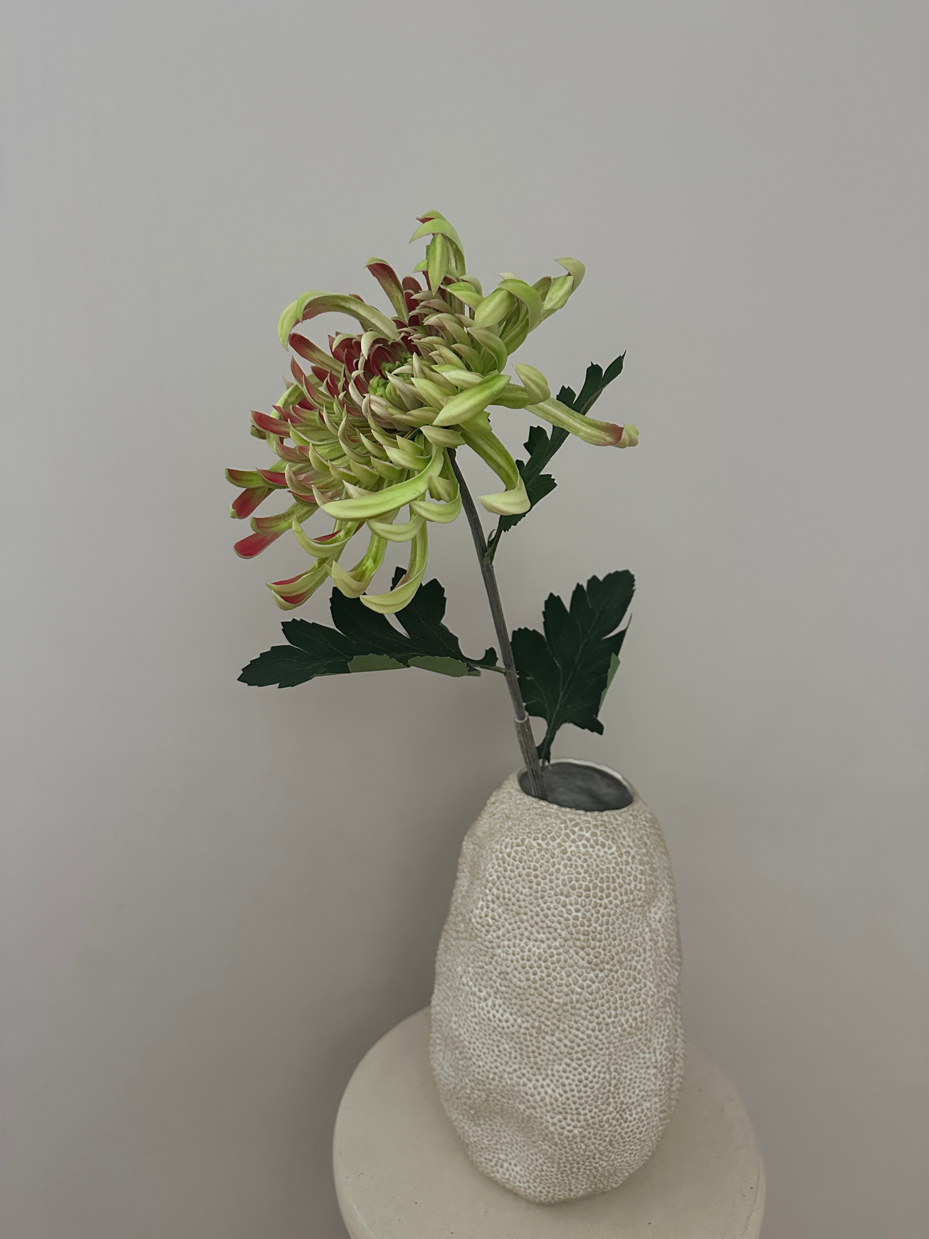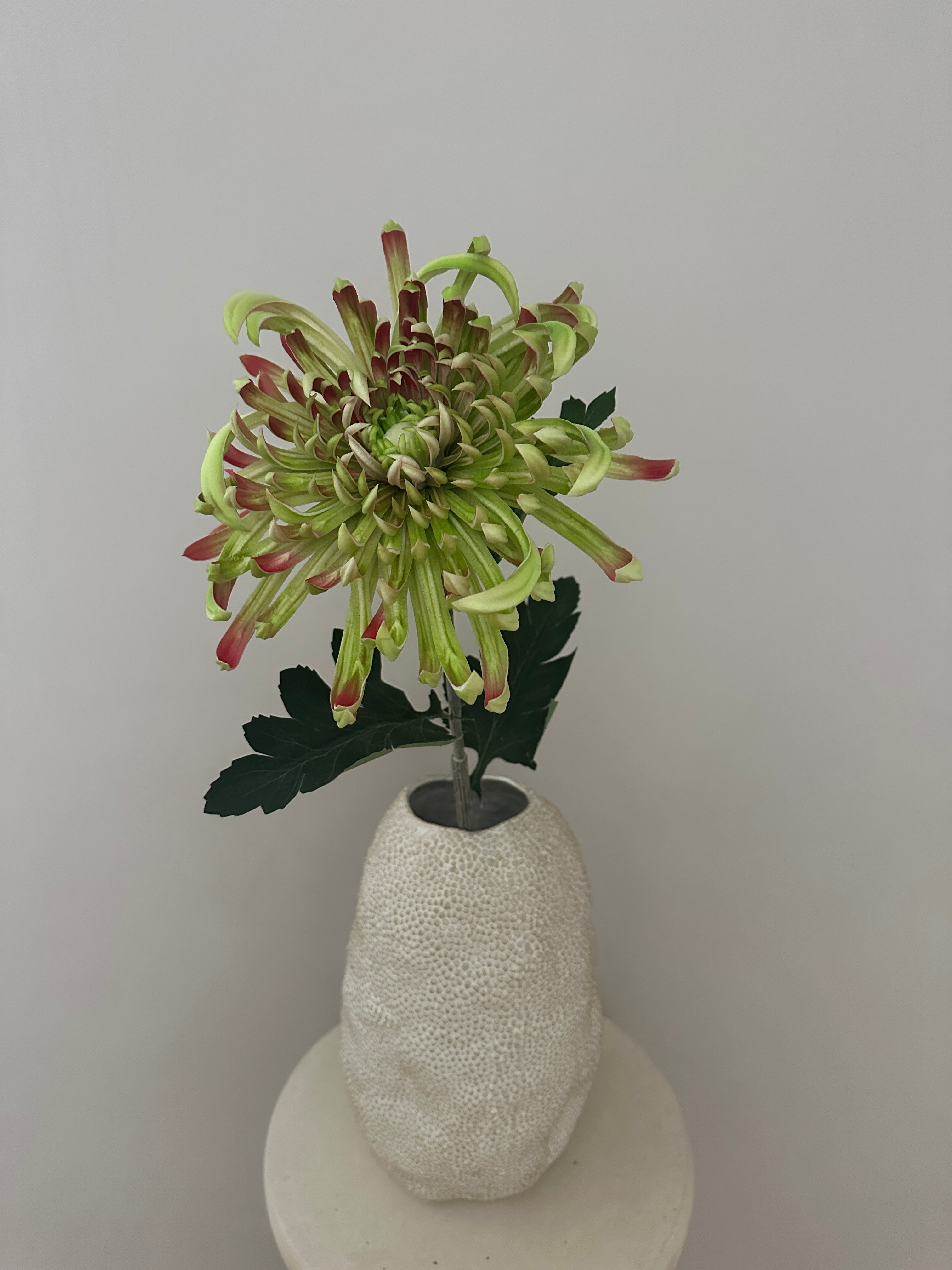 Kunstig eksotisk Chrysanthemum blomst med dragelignende blade.
