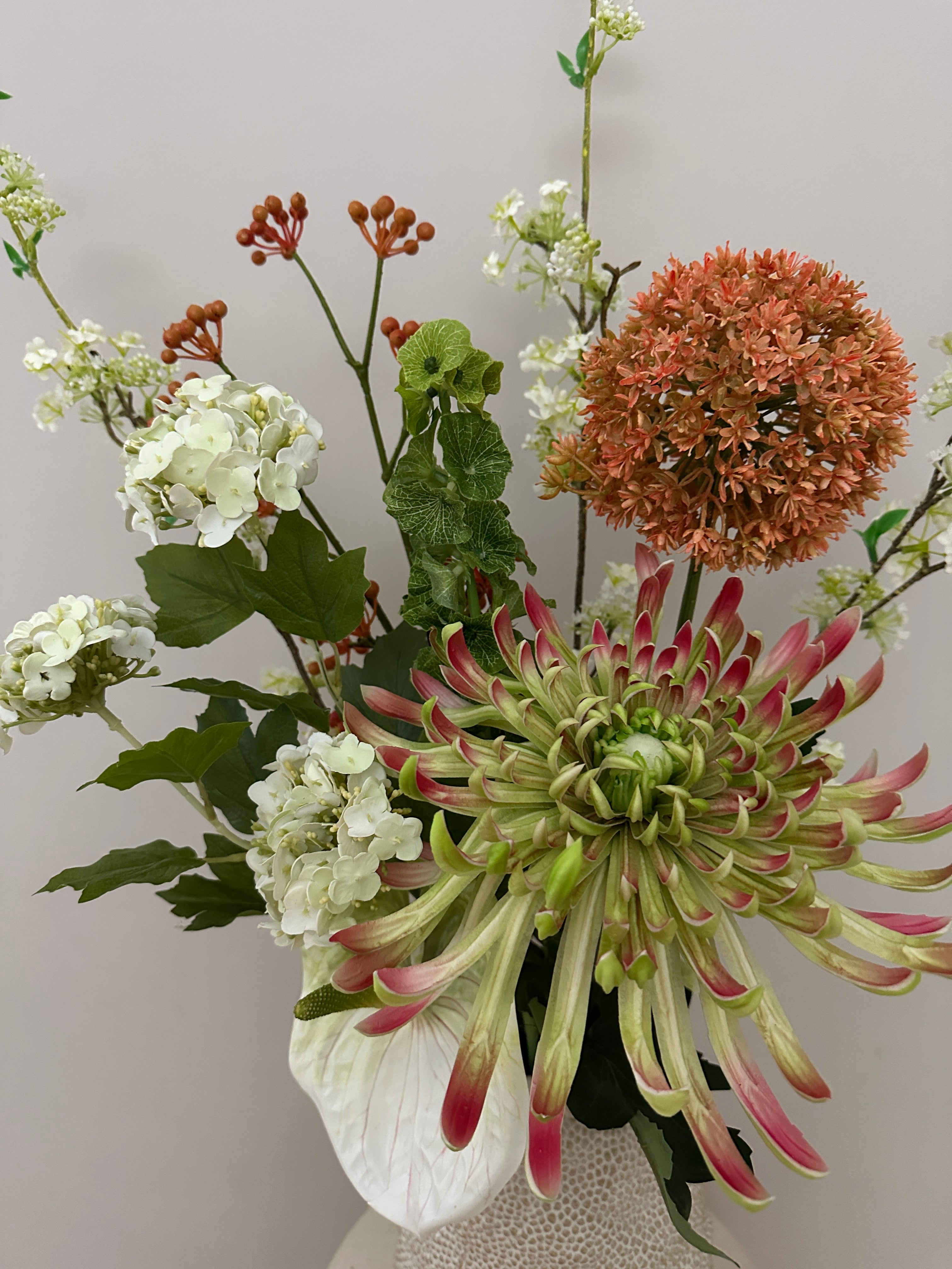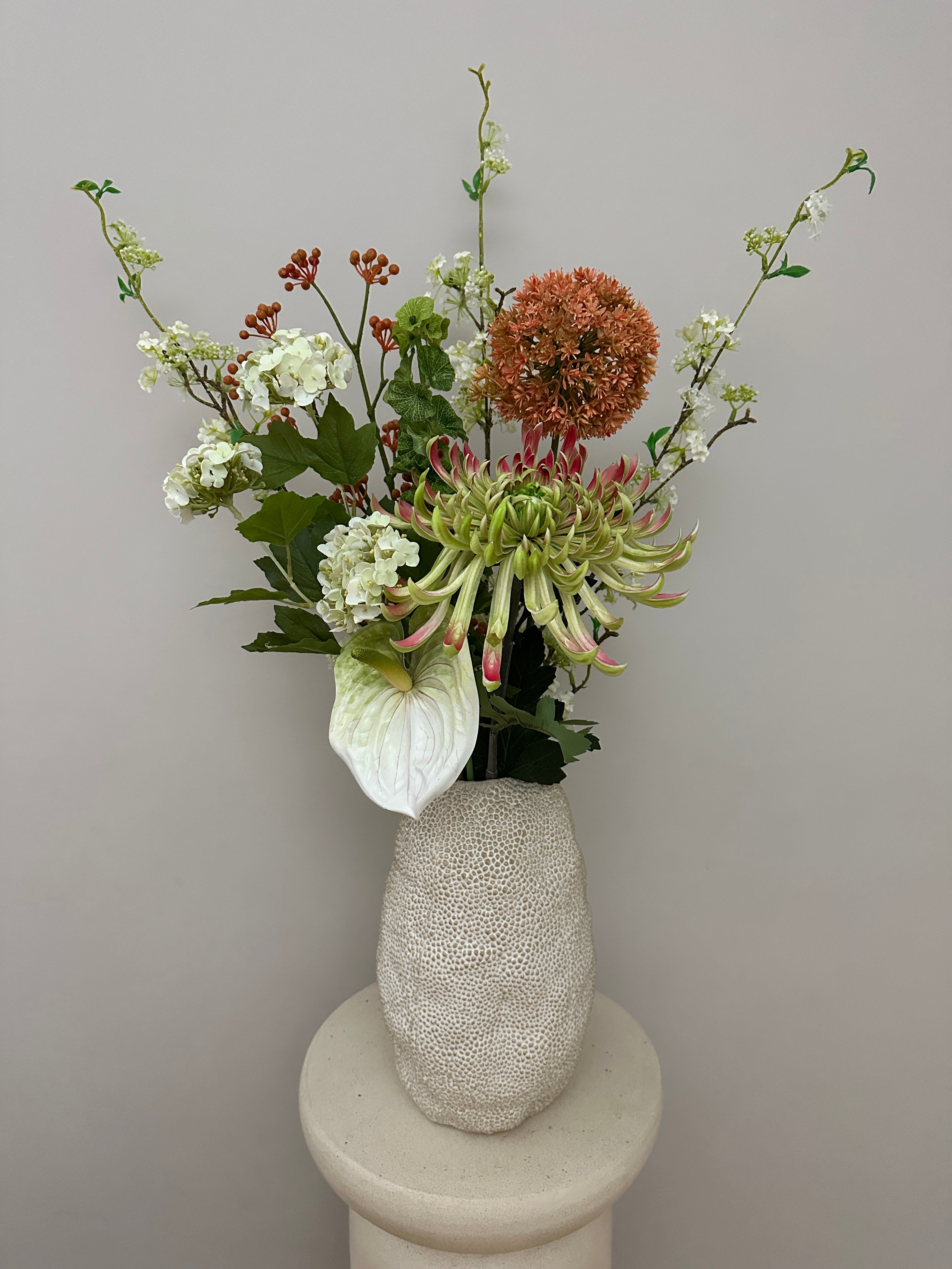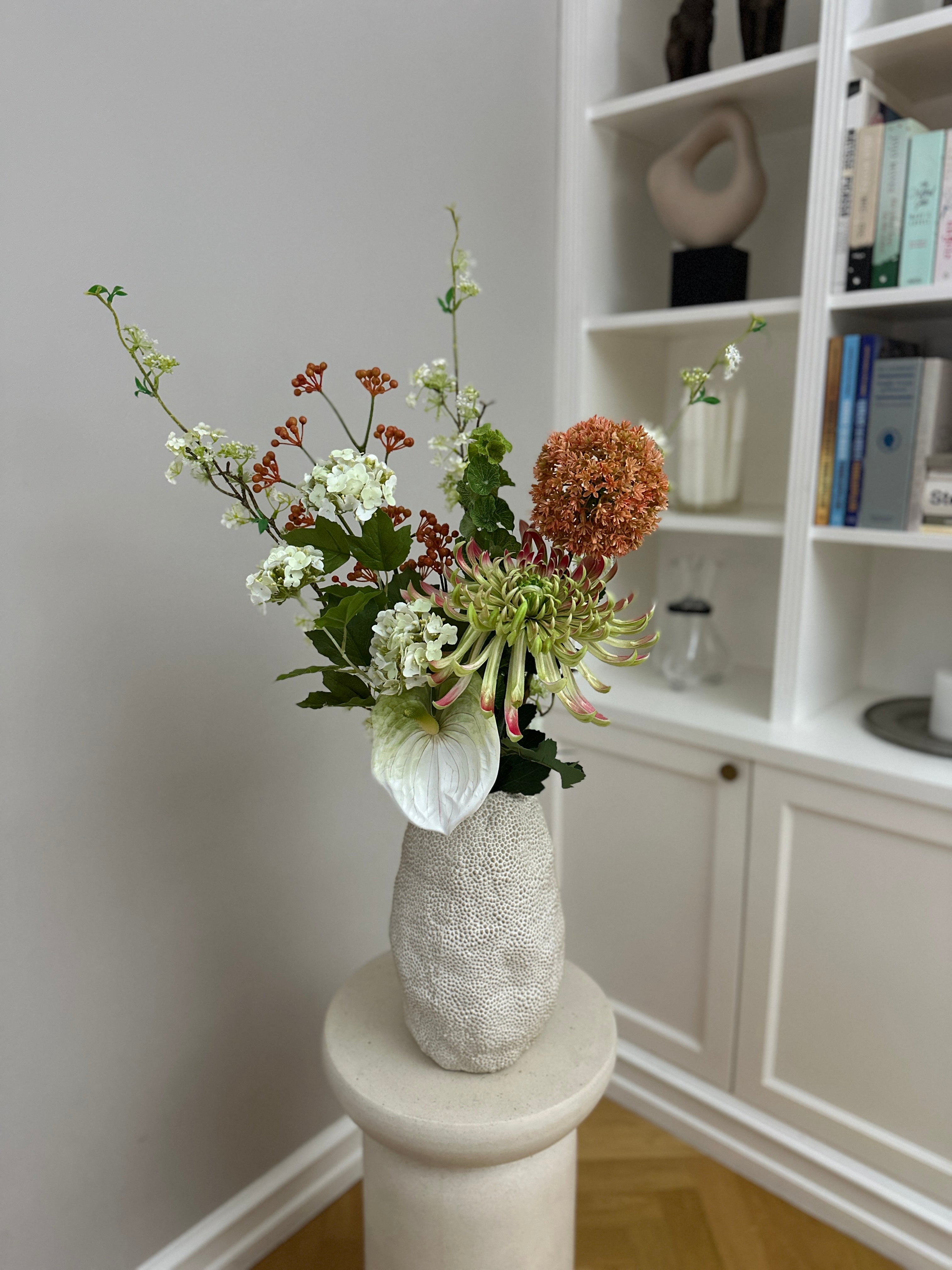 Smuk buket af kunstige blomster, som giver et tidløst touch til ethvert rum. De naturtro blomster ser ud som friske, og du kan nyde dem uden bekymringer om vanding eller pleje. Den perfekte dekoration til hjemmet, kontoret eller som gave, der kan glæde i lang tid.