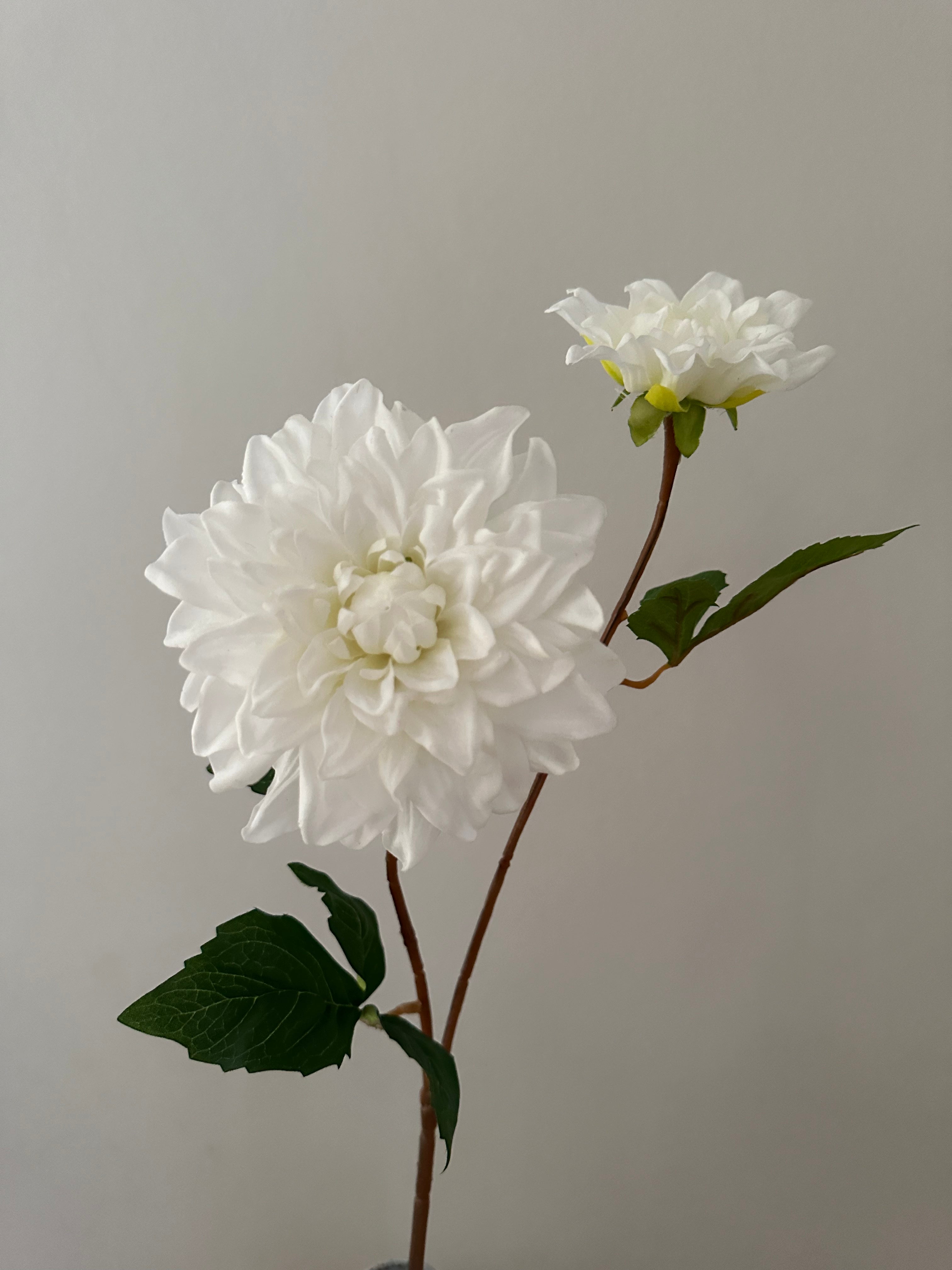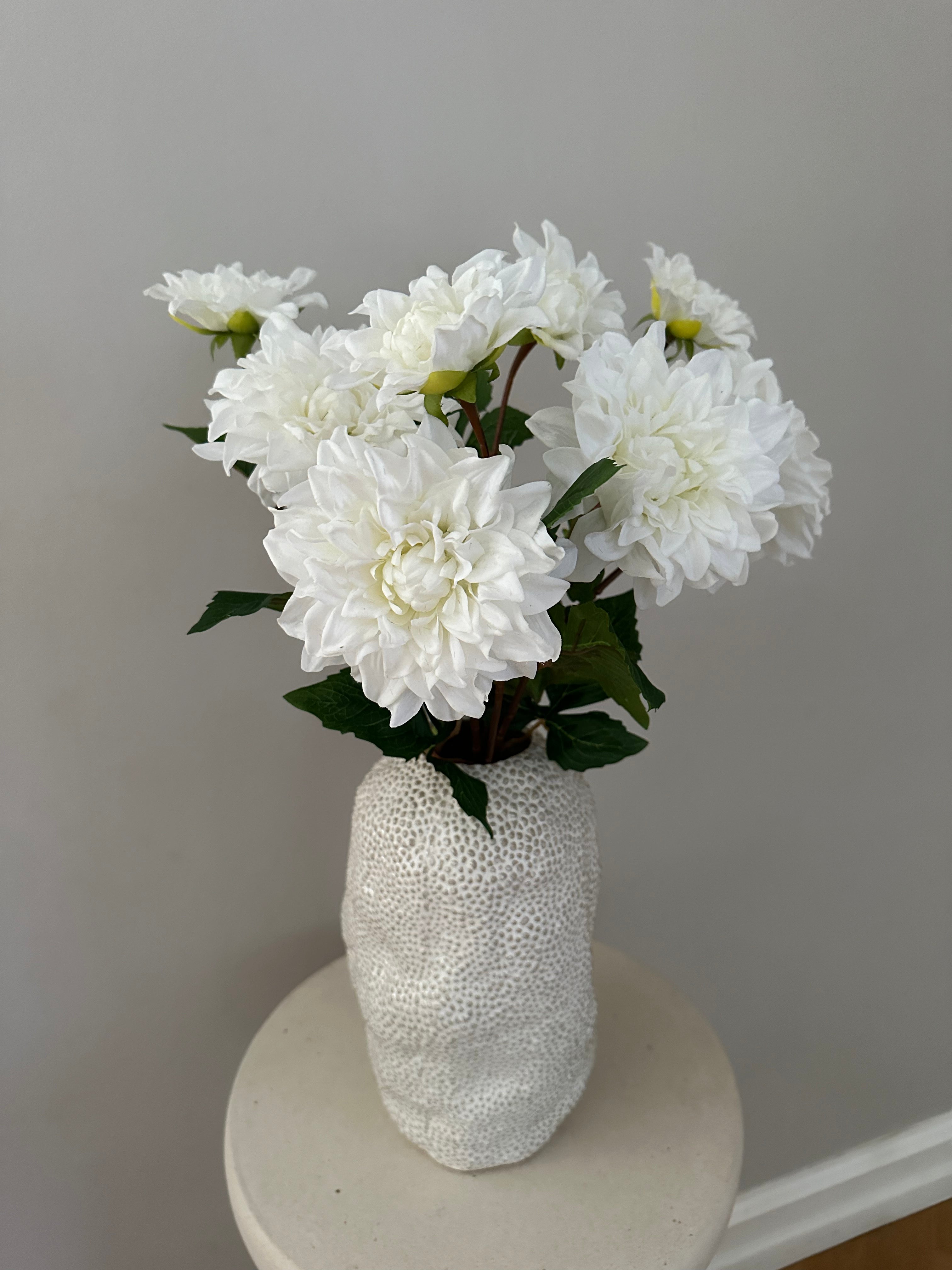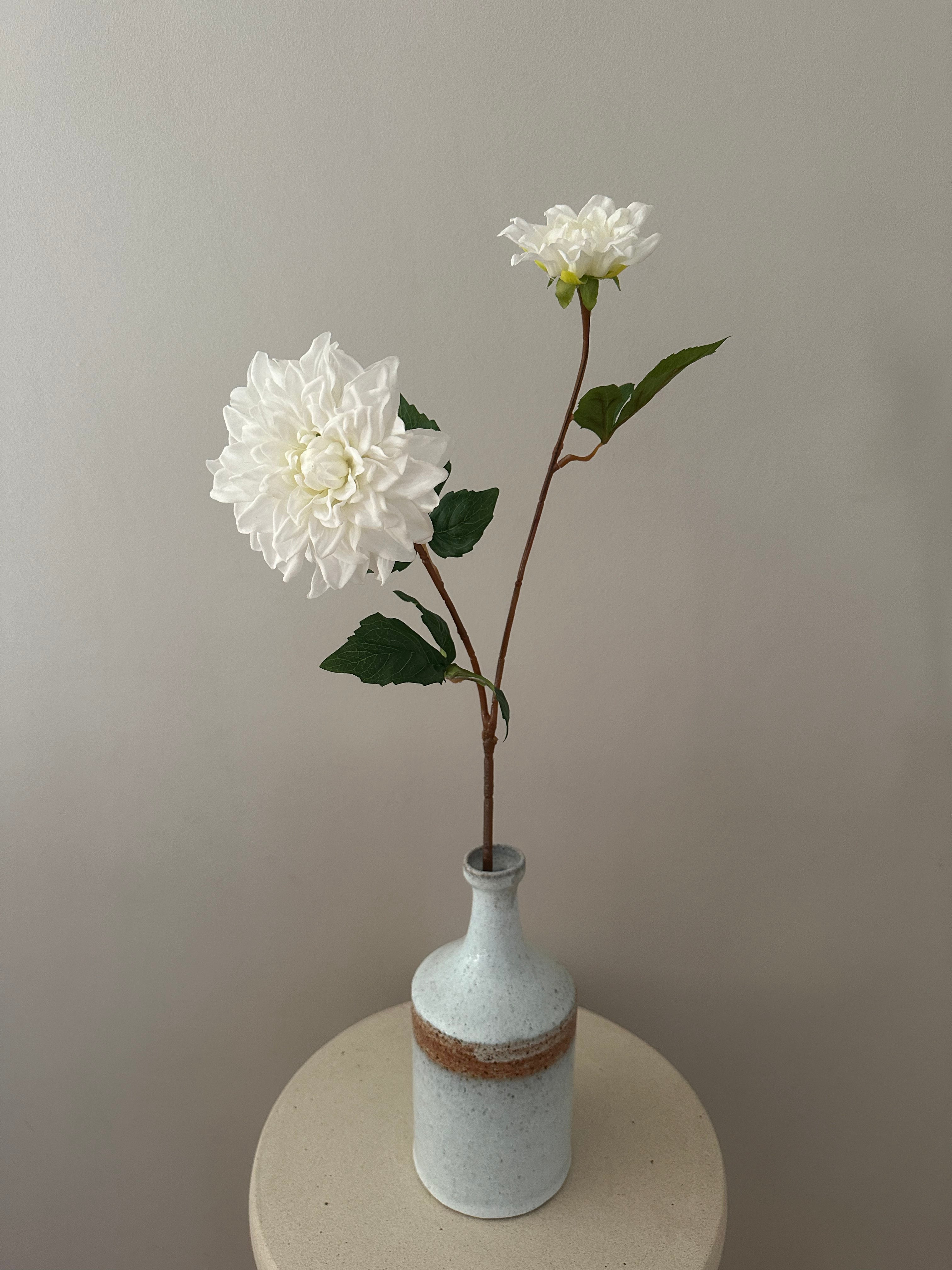 2 hovedet hvid kunstig Dahlia. Stilken er 60 cm lang.
