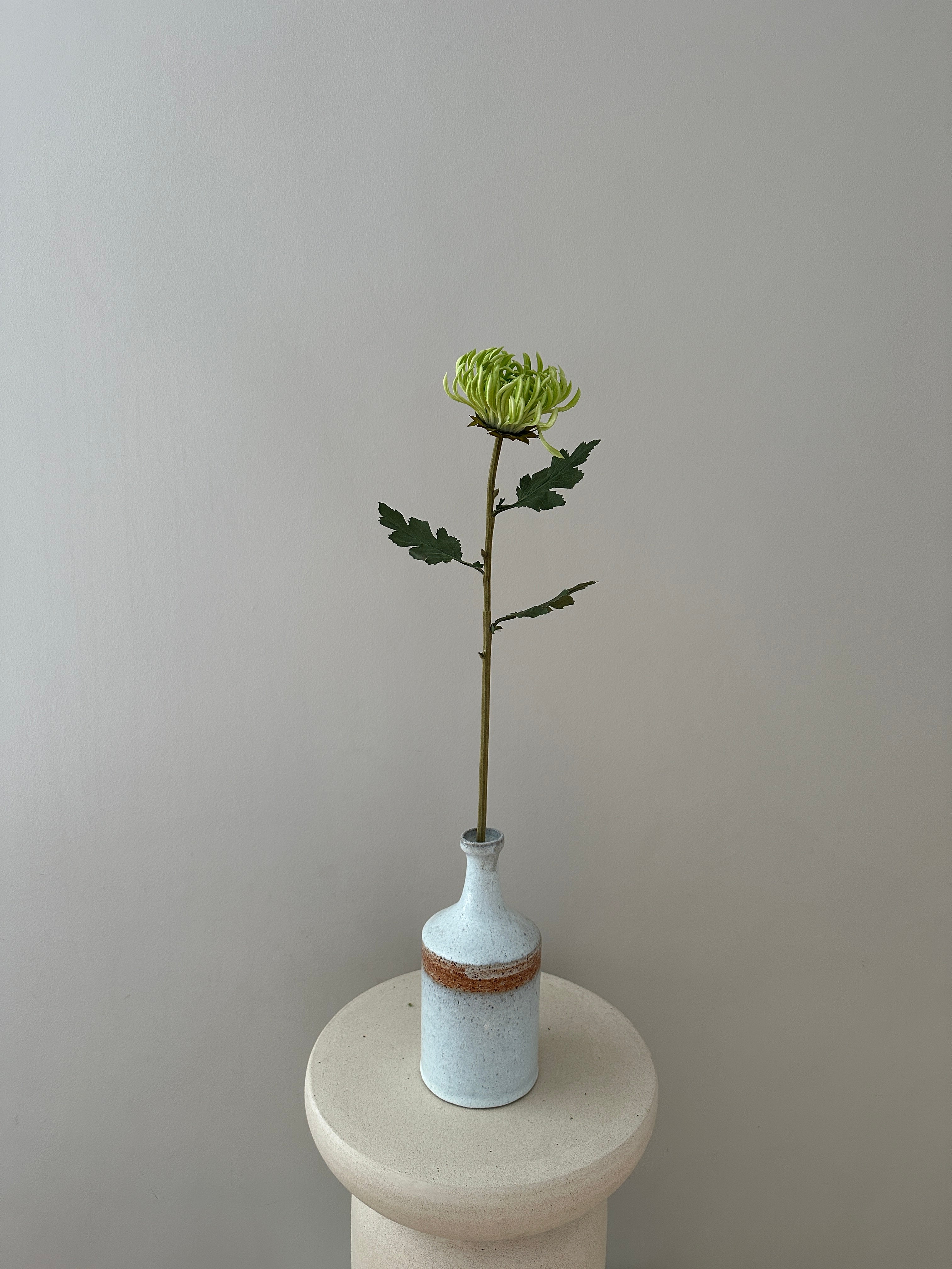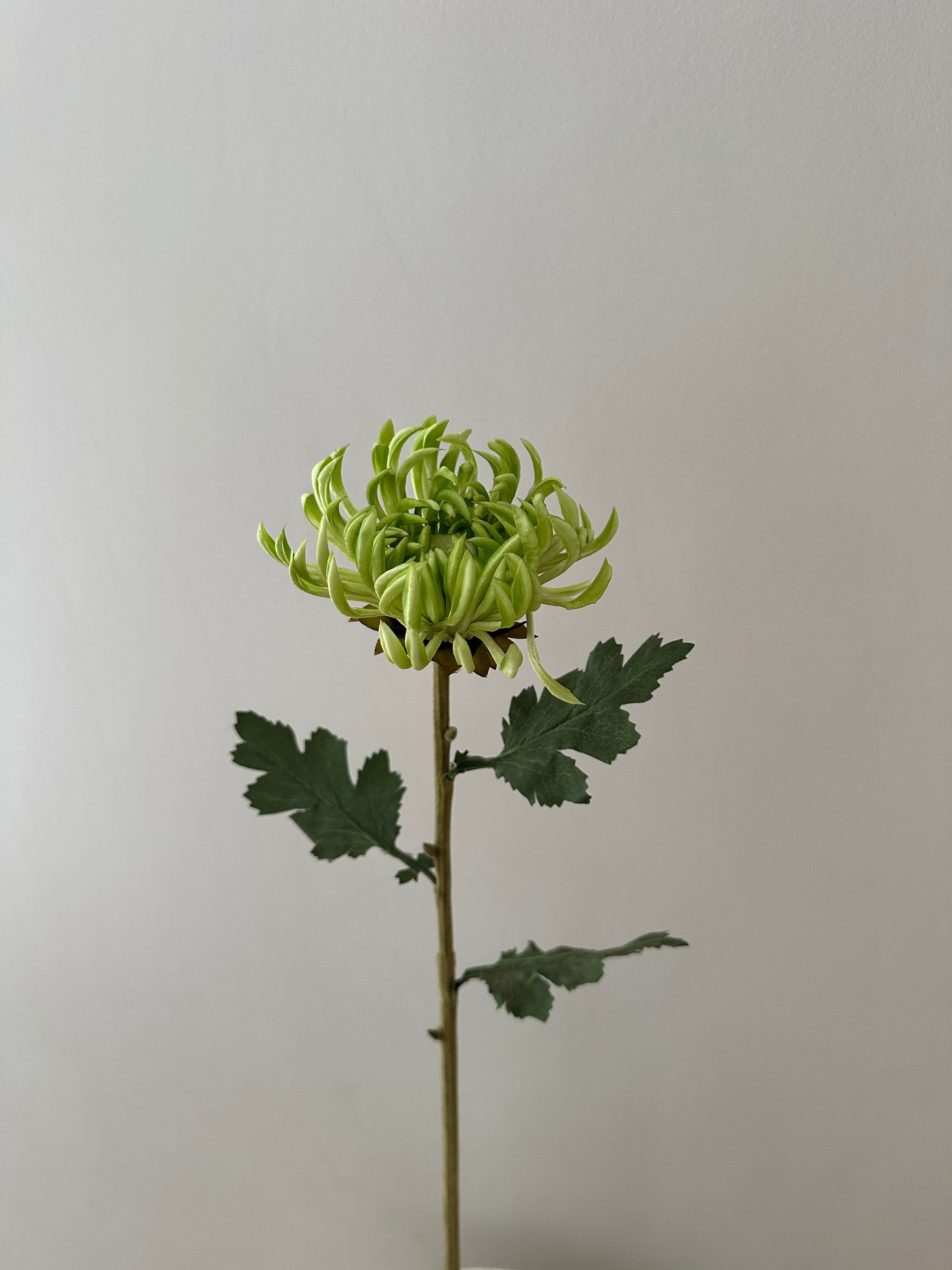 Kunstig eksotisk Krysantemum med dragelignende blade. Stilken er 60 cm lang, men kan bukkes så den passer til alle vaser.