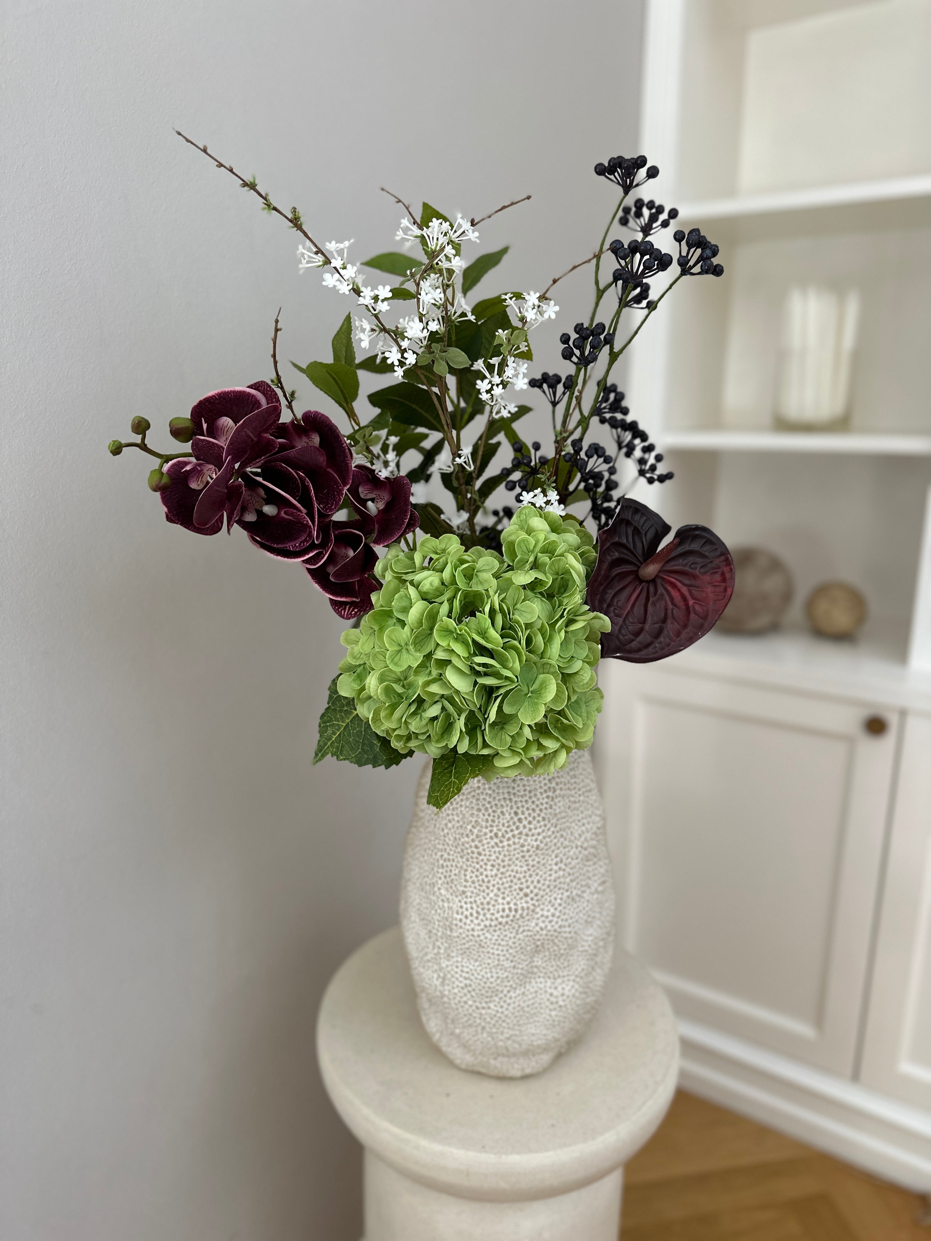 Kunstige blomster: Når du modtager buketten er det vigtigt, at du former og bukker stilkene, så buketten passer perfekt til netop din vase. Stilkene er ofte meget lange, men ved at bukke dem får du præcis det udtryk du godt kan lide. Så lad kreativiteten slippe løs!