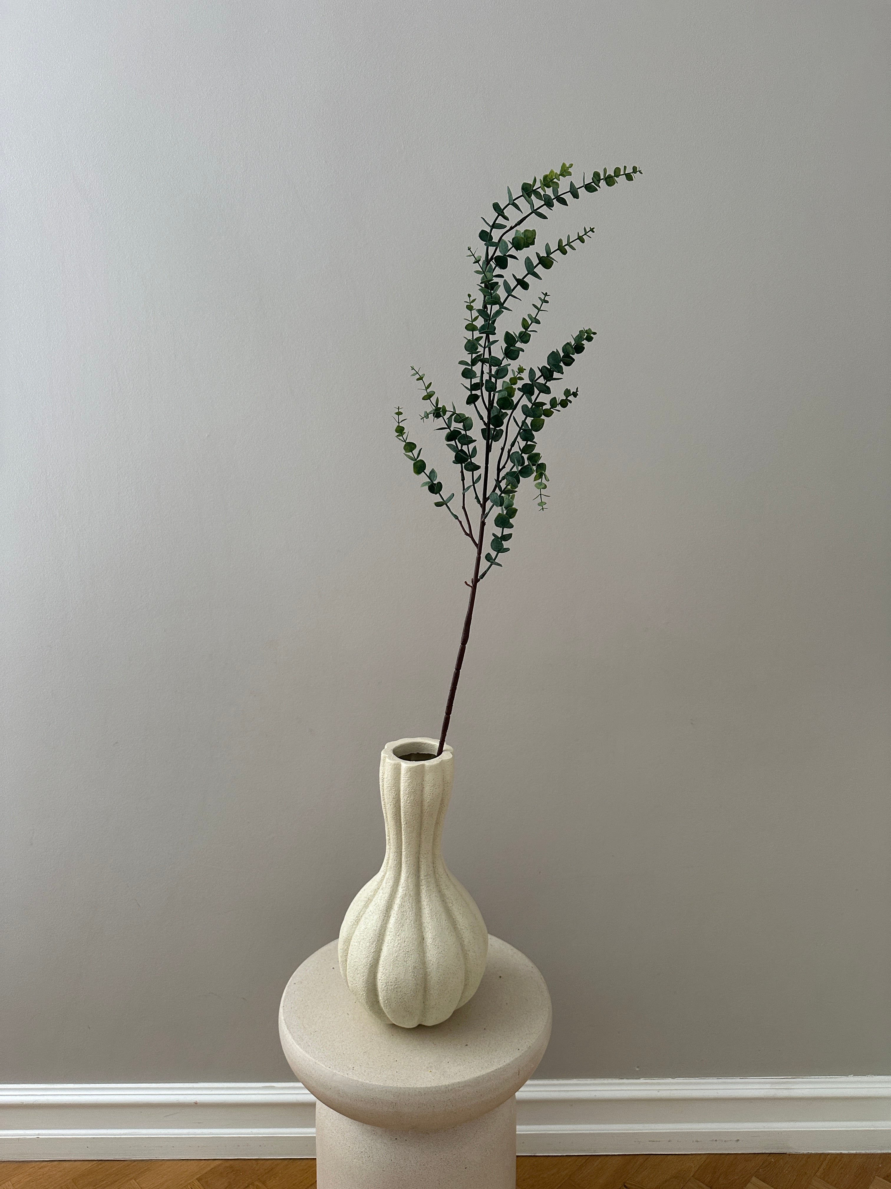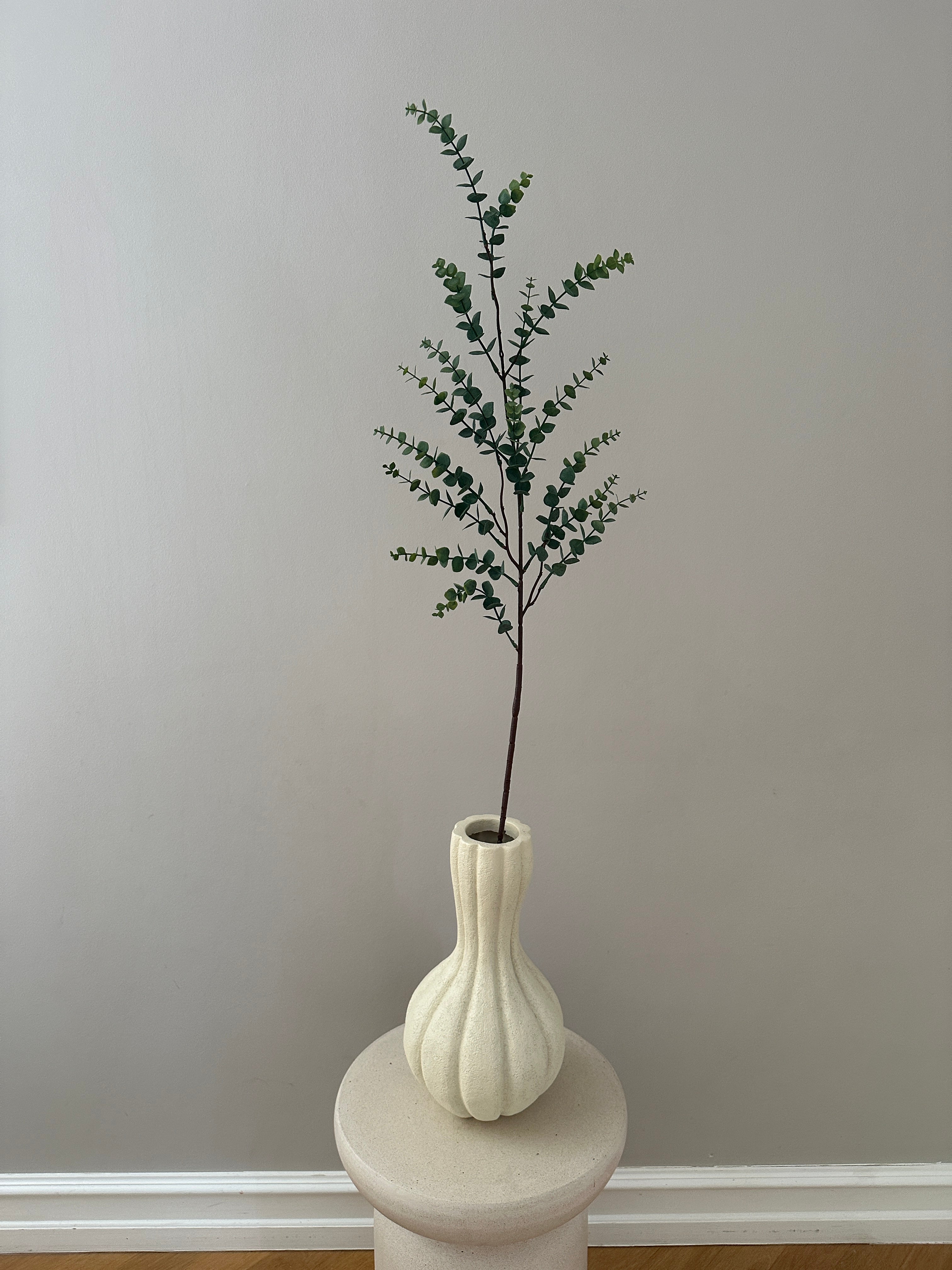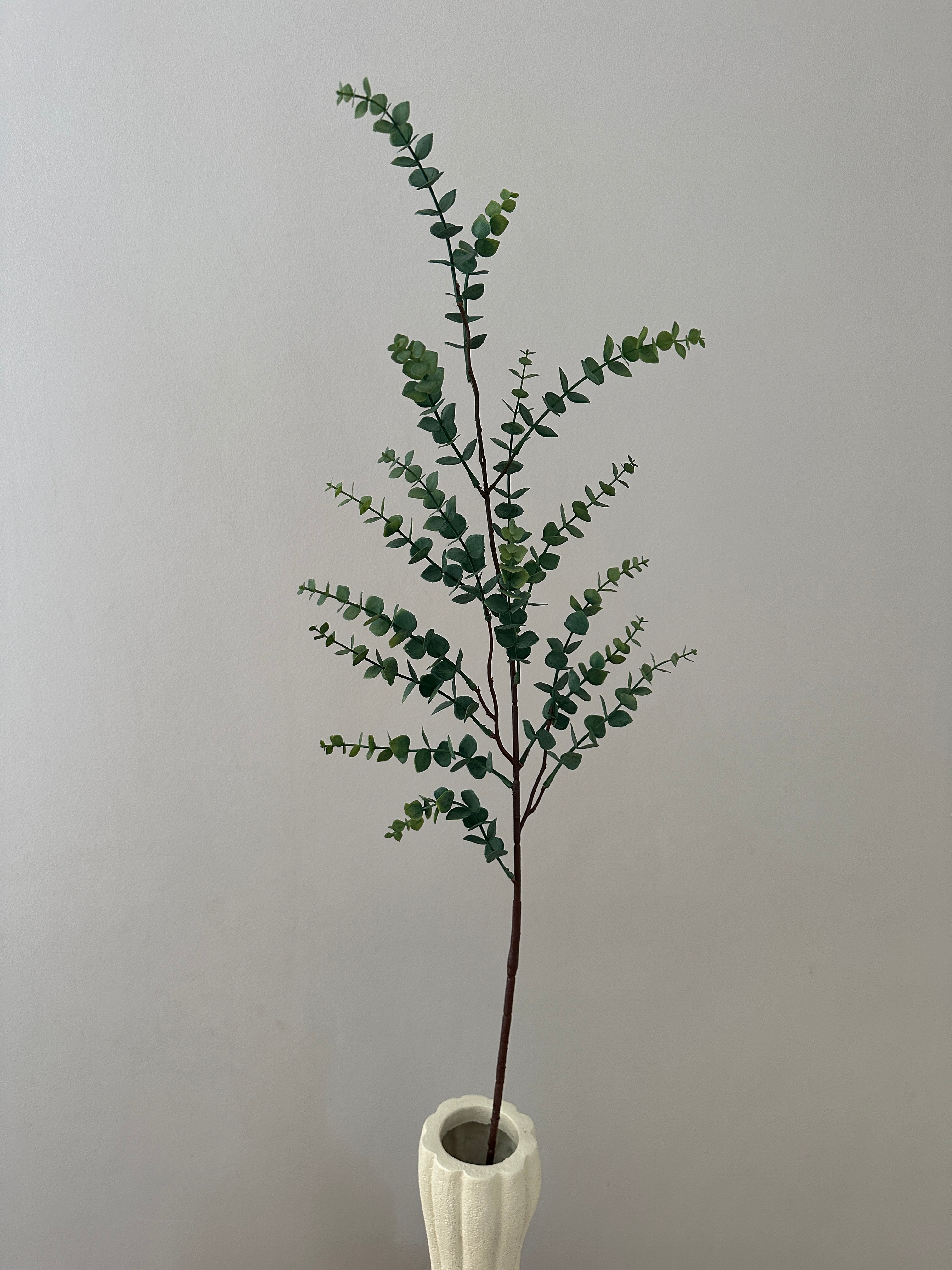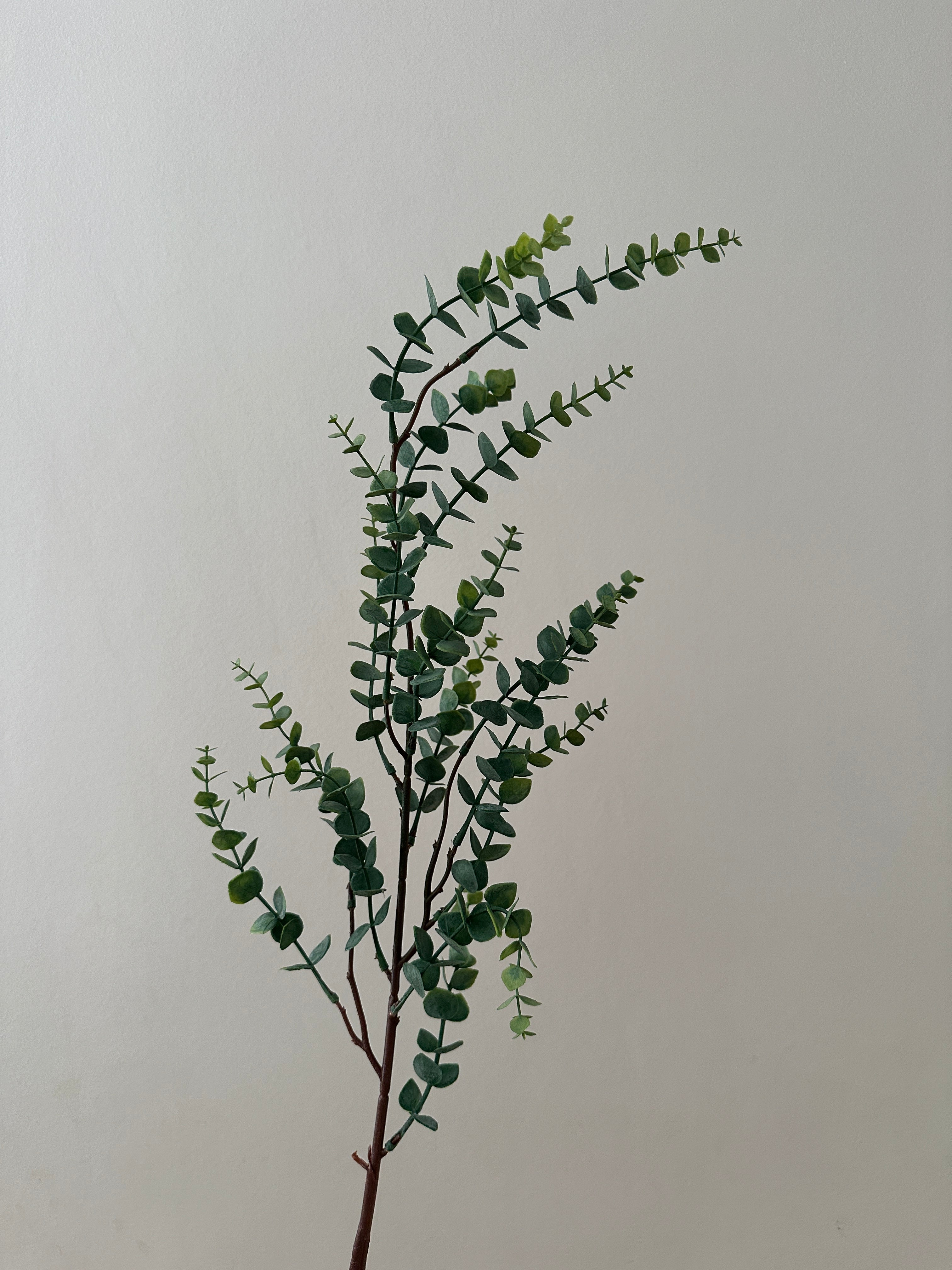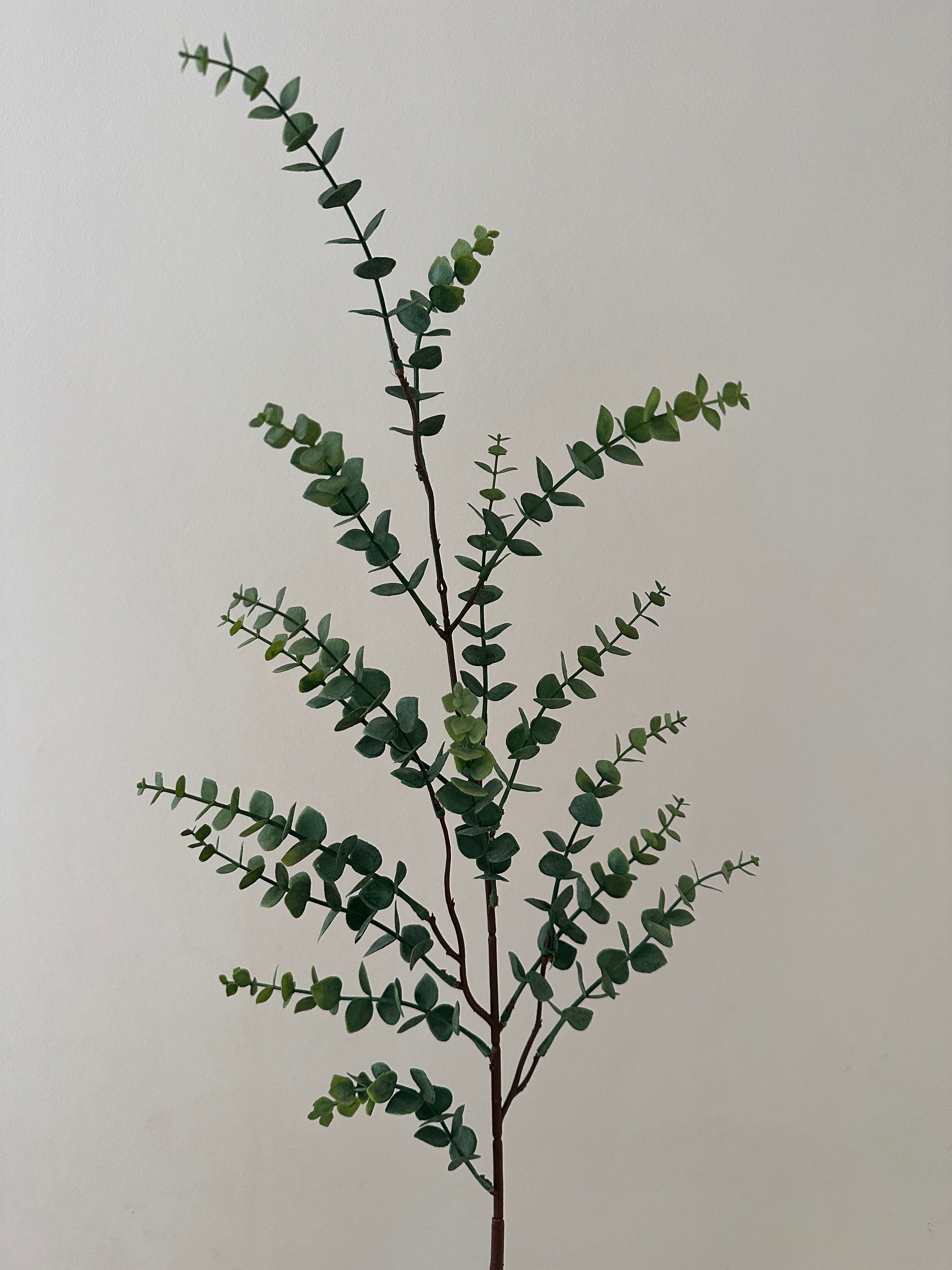 Kunstig Eucalyptus med gummiblade, som giver smuk grøn fylde til din buket. Stilken er 106 cm lang, men kan bukkes så de passer til alle vaser.