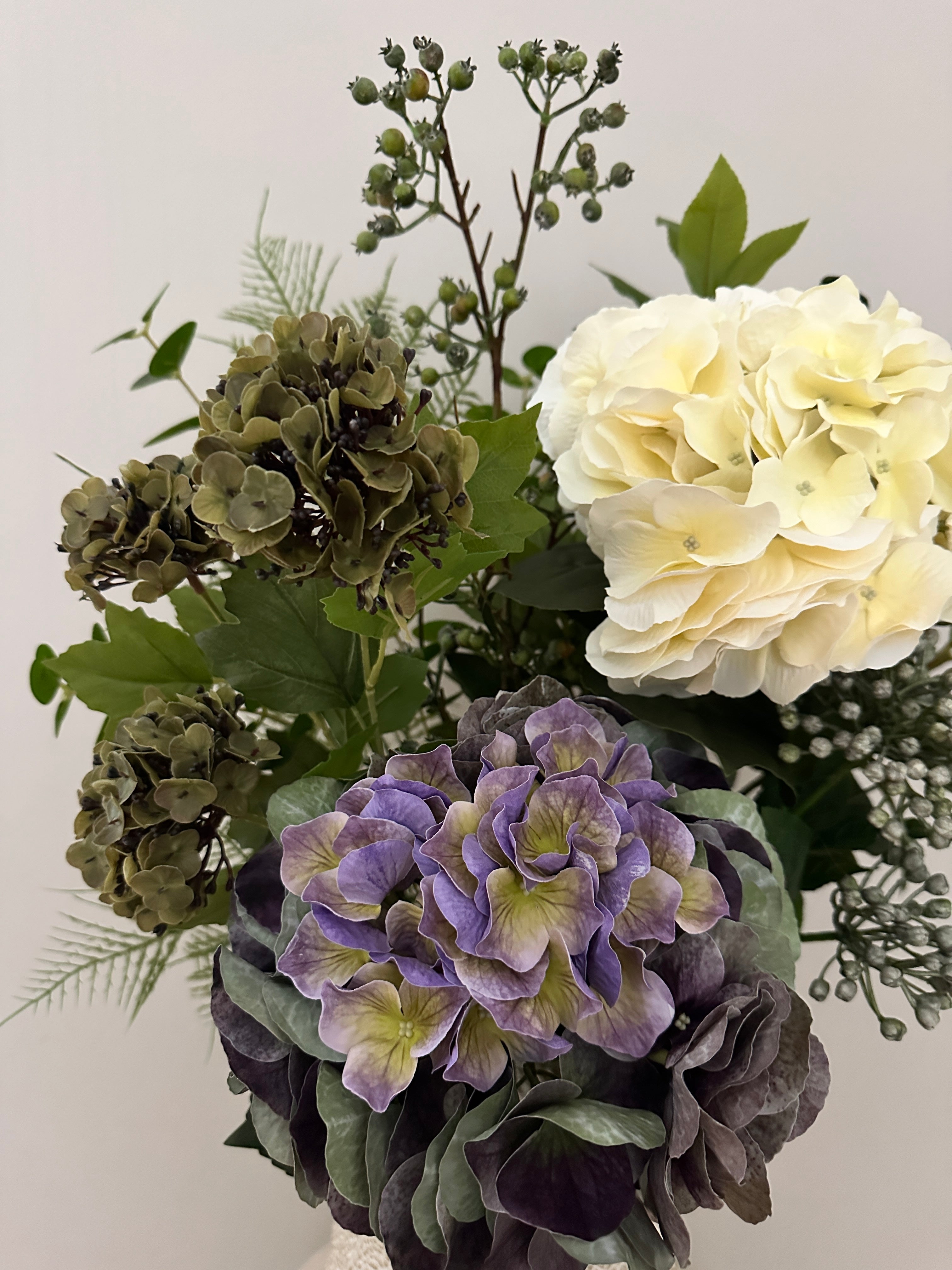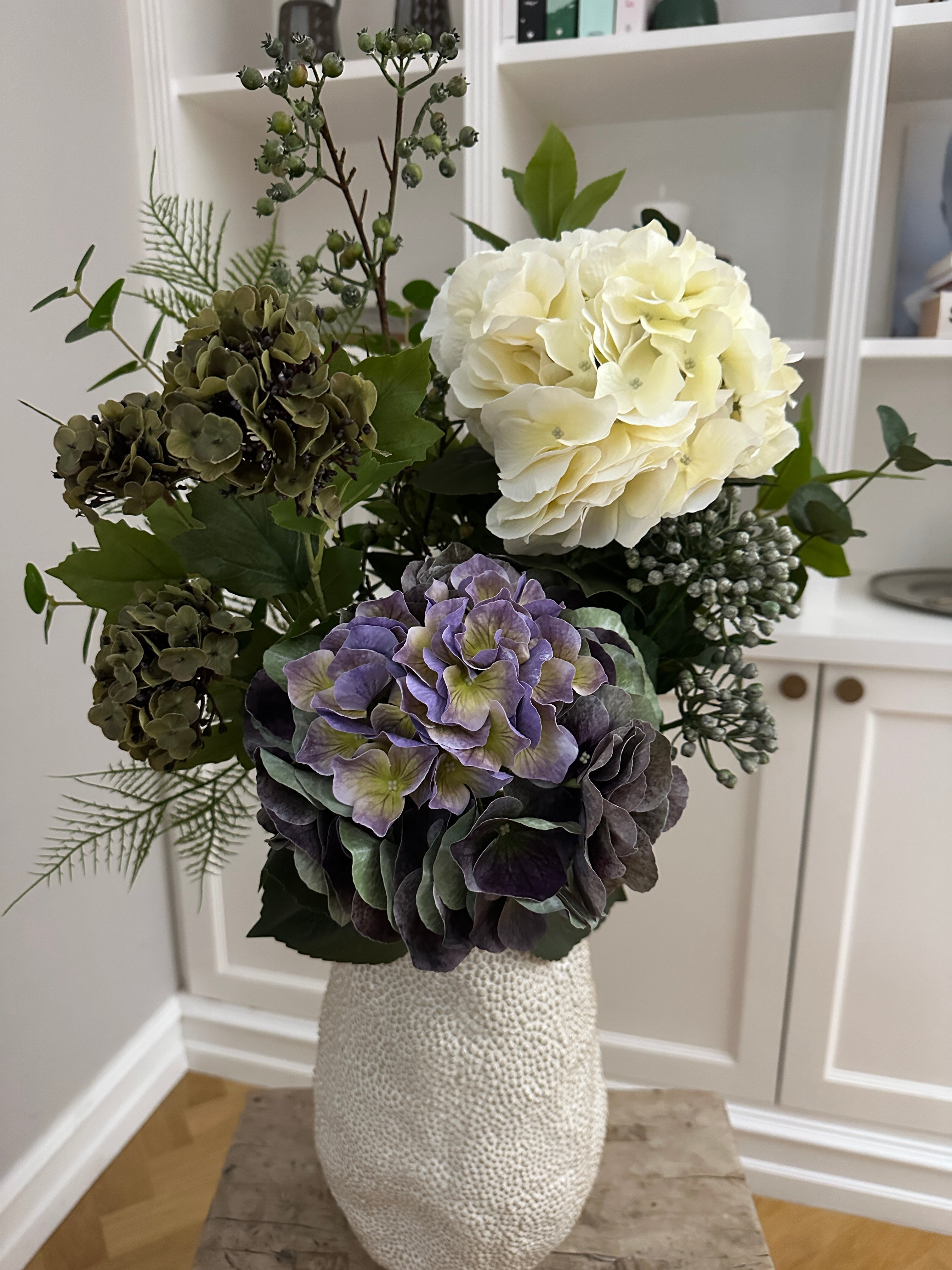Elegant buket af kunstige blomster i årstidens smukkeste farver.