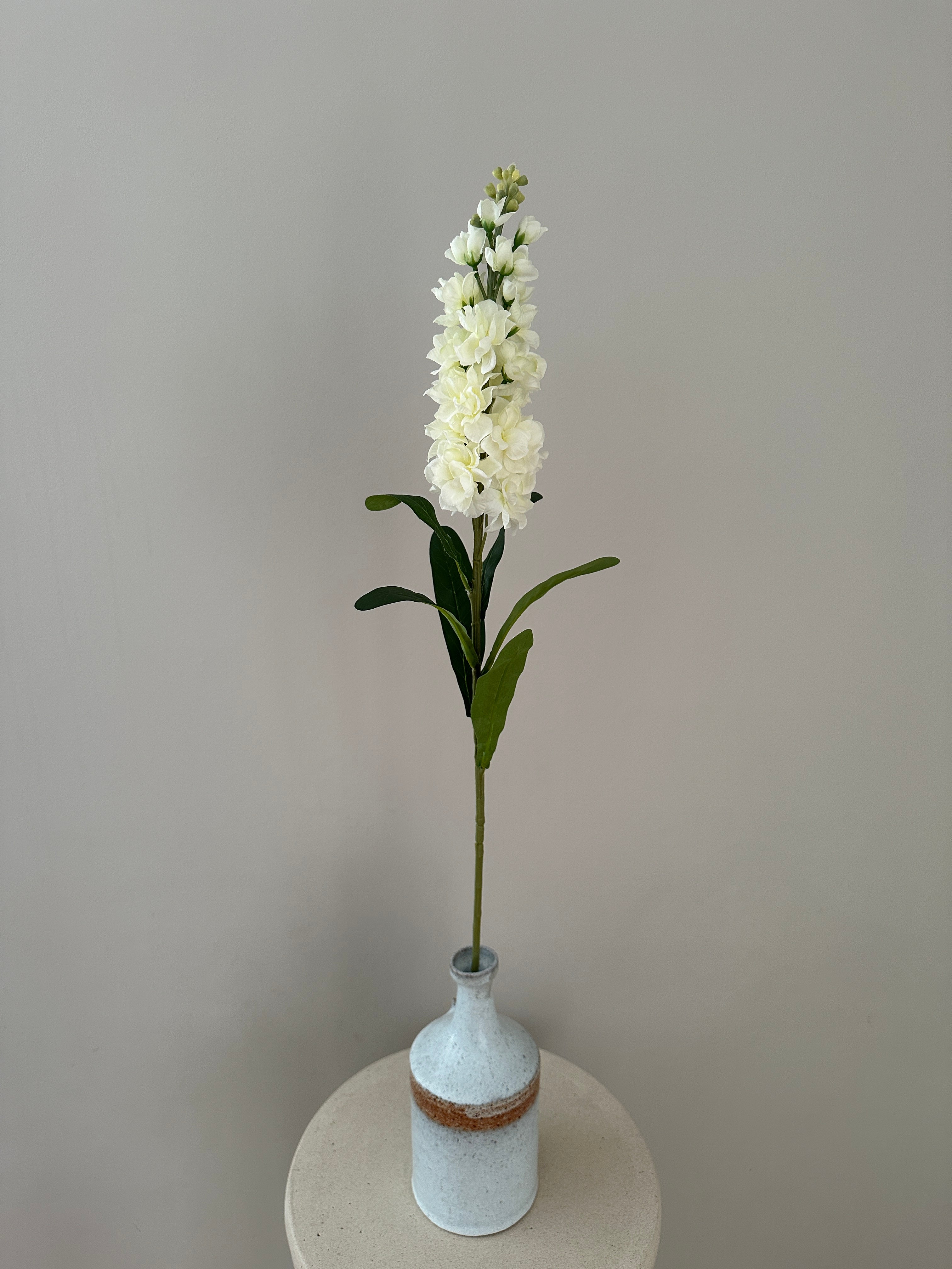 Hvid kunstig Hyacint, som er 80 cm lang.