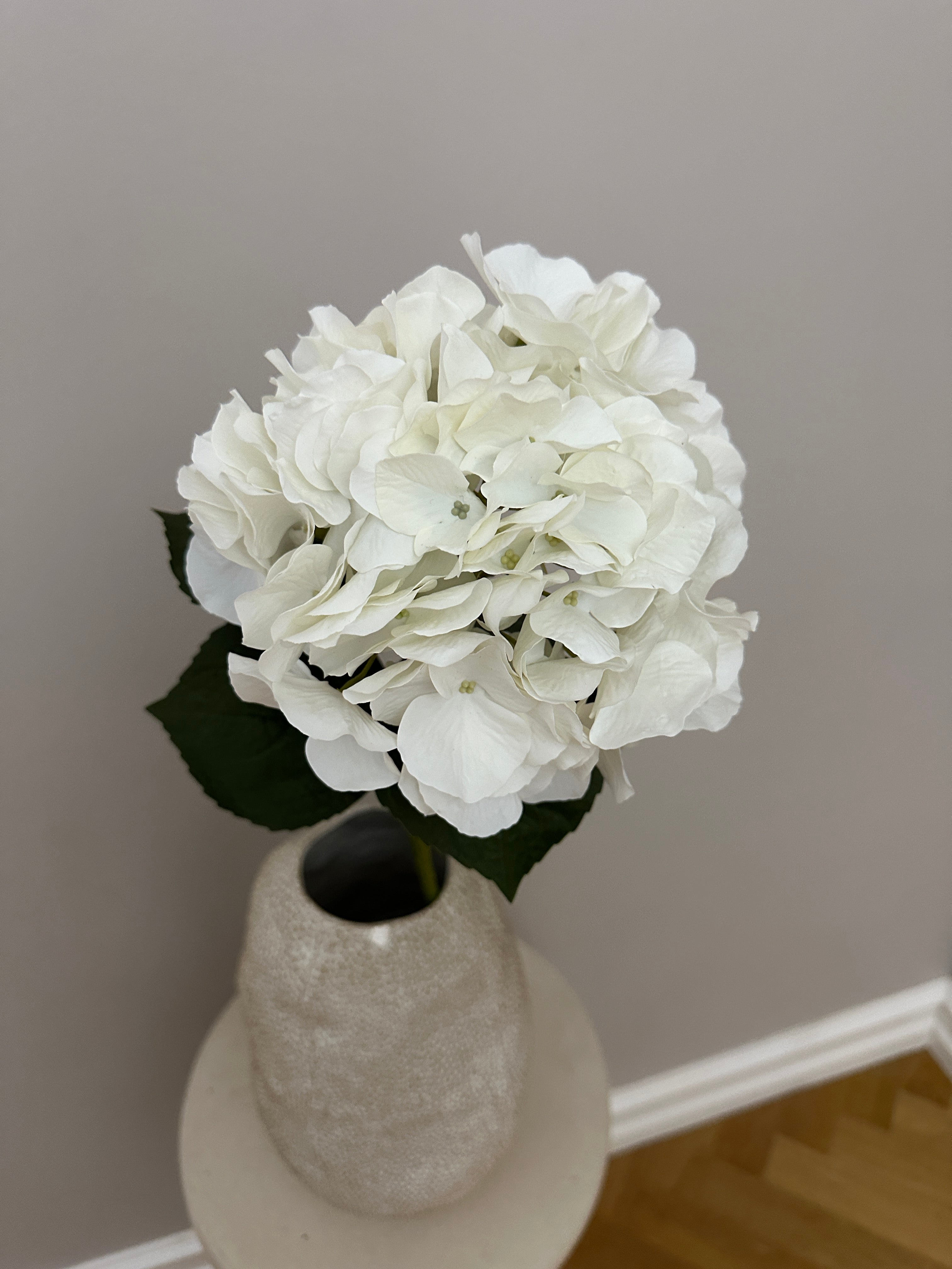 Giv dit hjem et friskt pust med vores kunstige naturtro hortensia i hvid nuancer. Denne blomsts elegante blomsterhoved, bringer naturens ro og harmoni direkte ind i din indretning. Stilken er 65 cm lang.