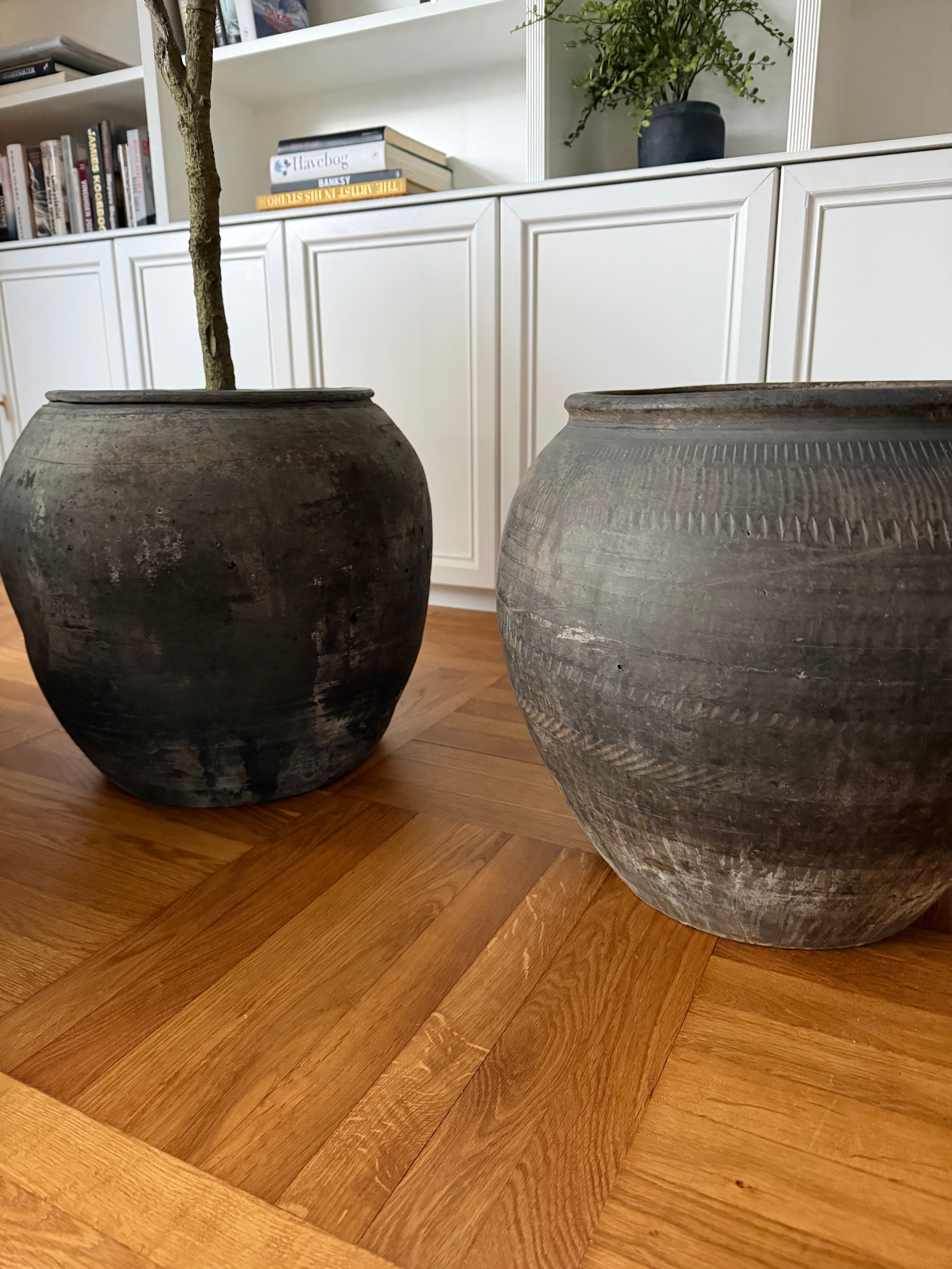 Smuk vintage lerkrukke til dit kunstige træ. Krukken har smukke detaljer og en skøn rustik patina. Alle krukkerne er unika, og kan derfor variere i farve og størrelse (omkring 40 cm).