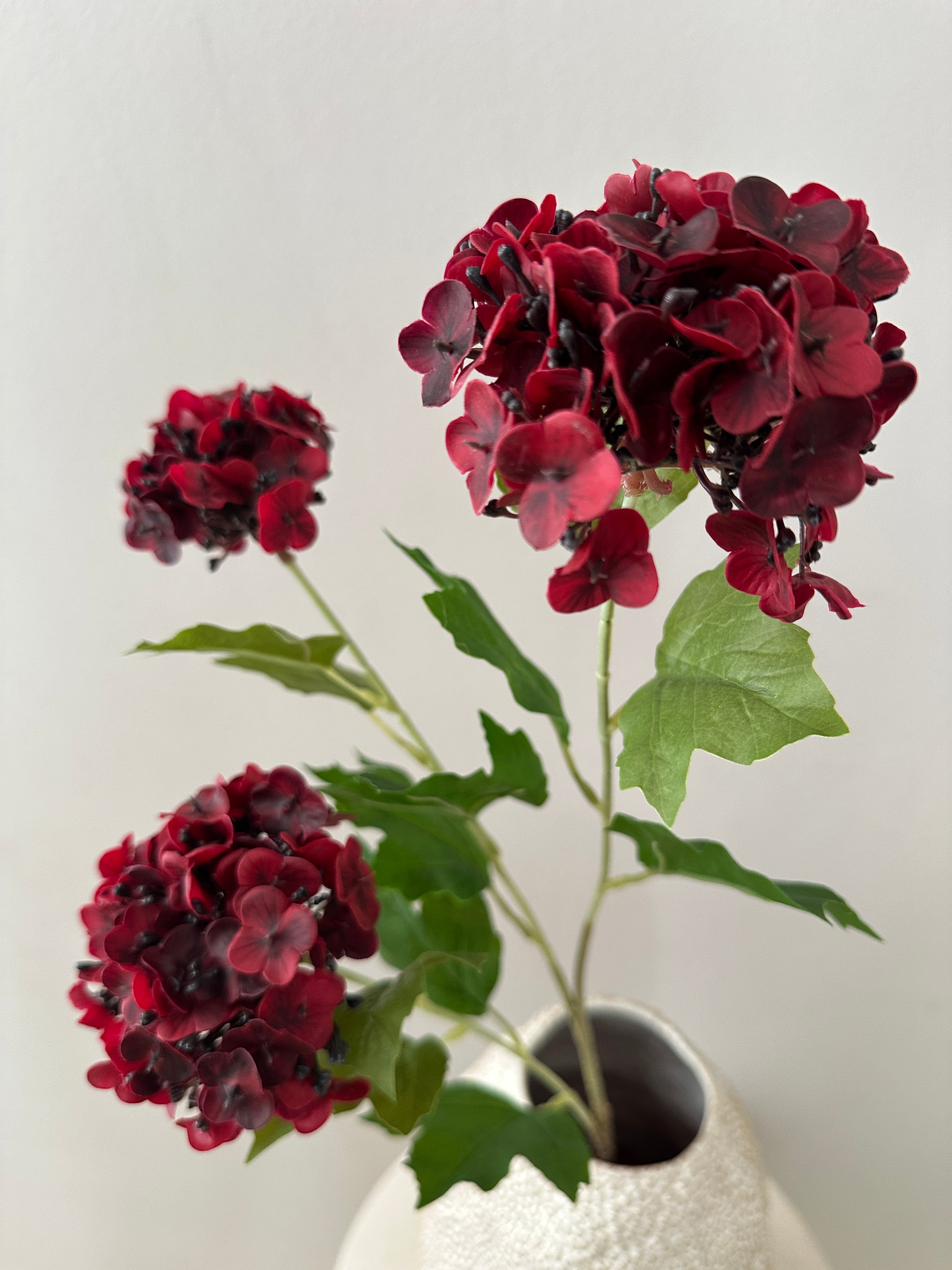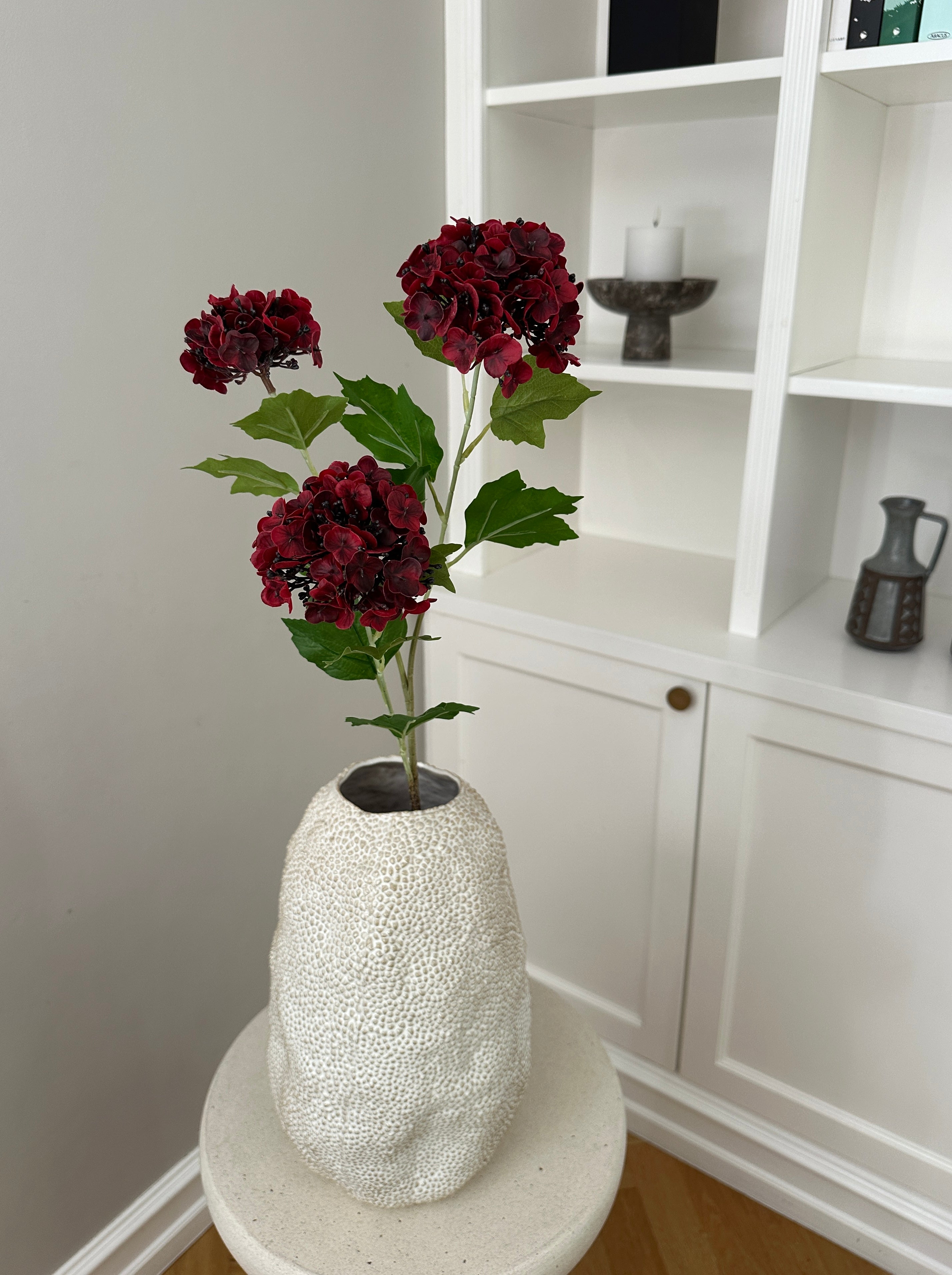 Smuk 3 hovedet kunstig Hortensia med naturtro bløde blade. Stilken er 62 cm lang.