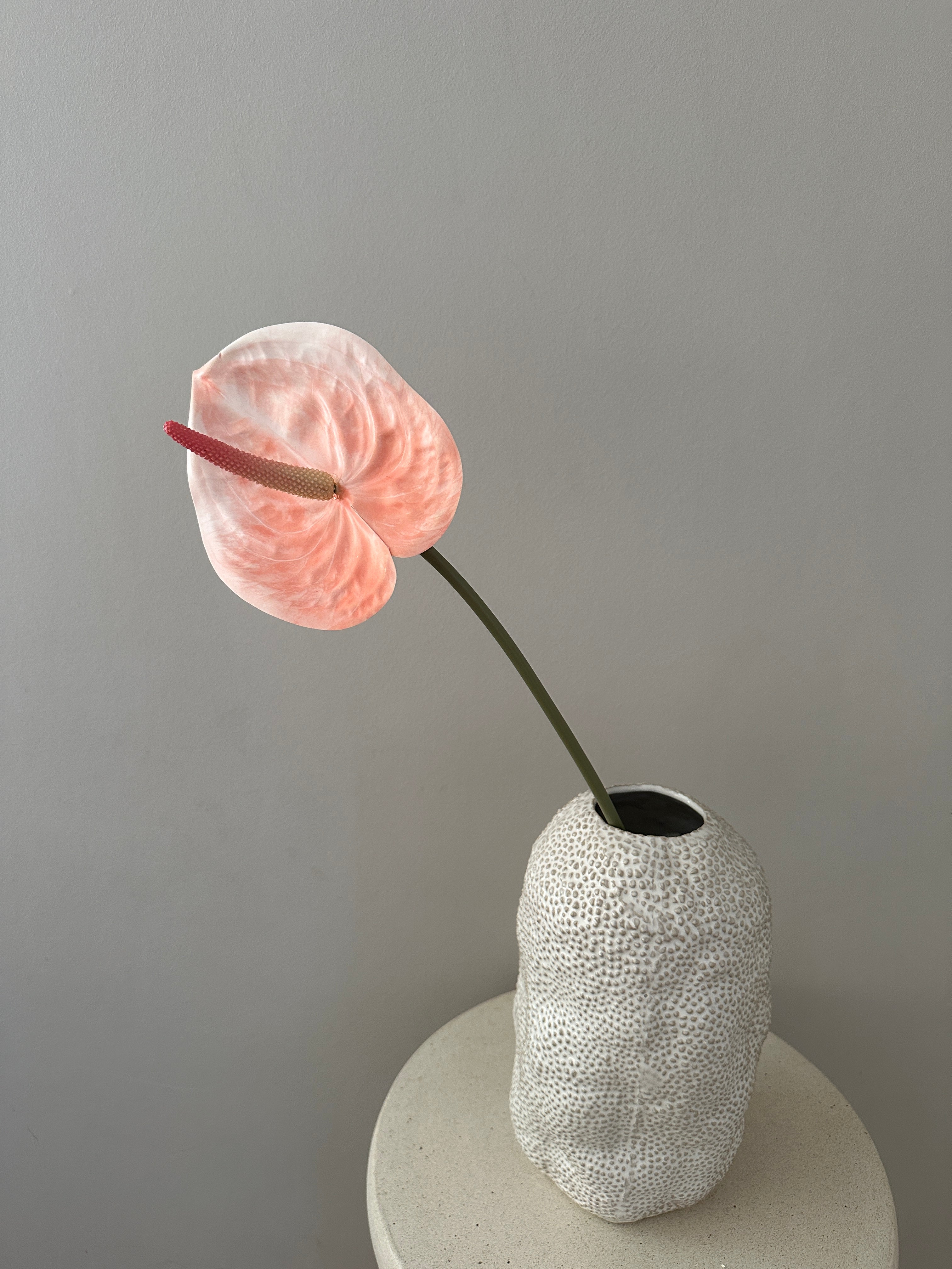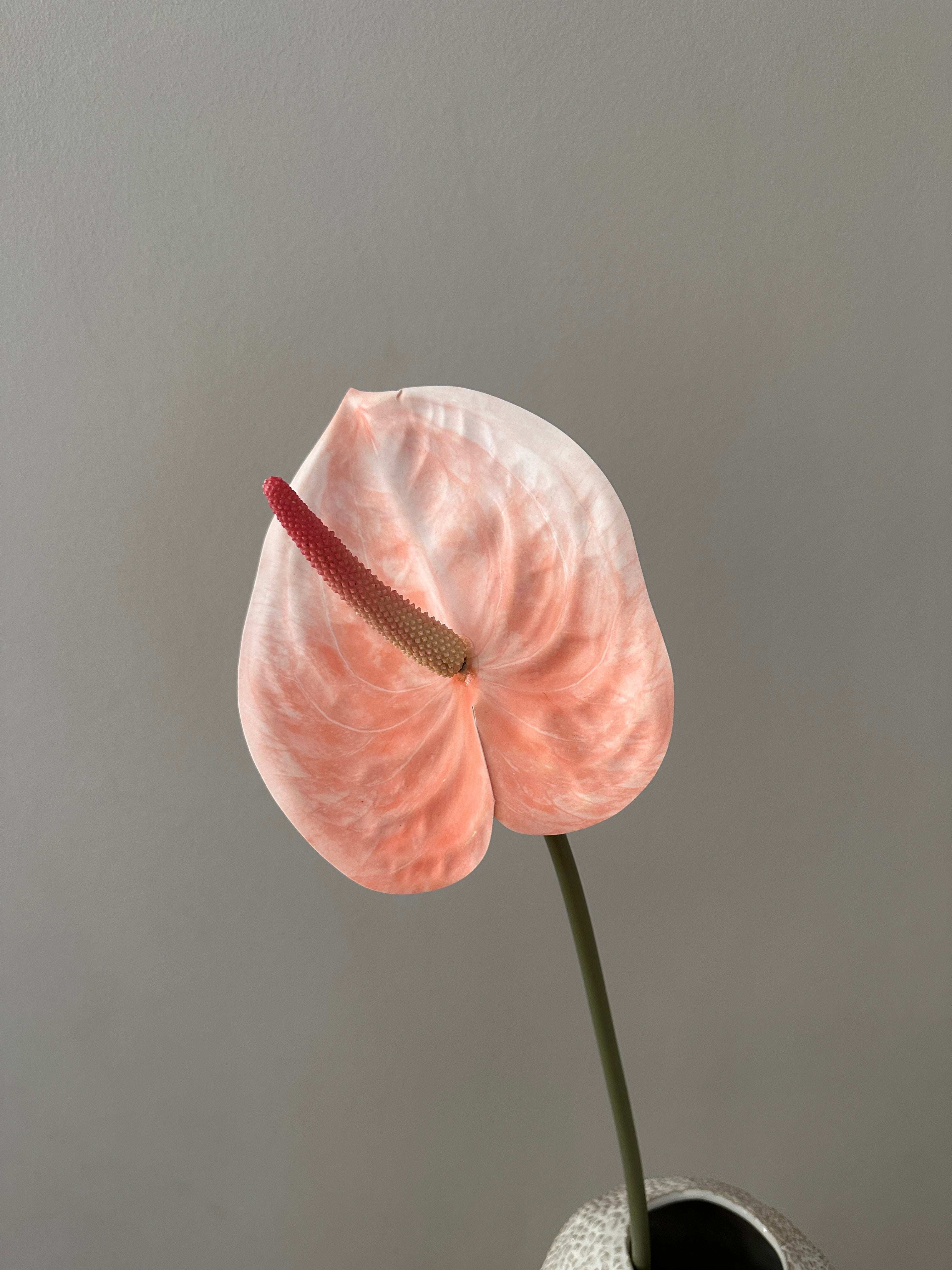 Kunstig dekorativ Anthurium i en smuk lyserød farve.
