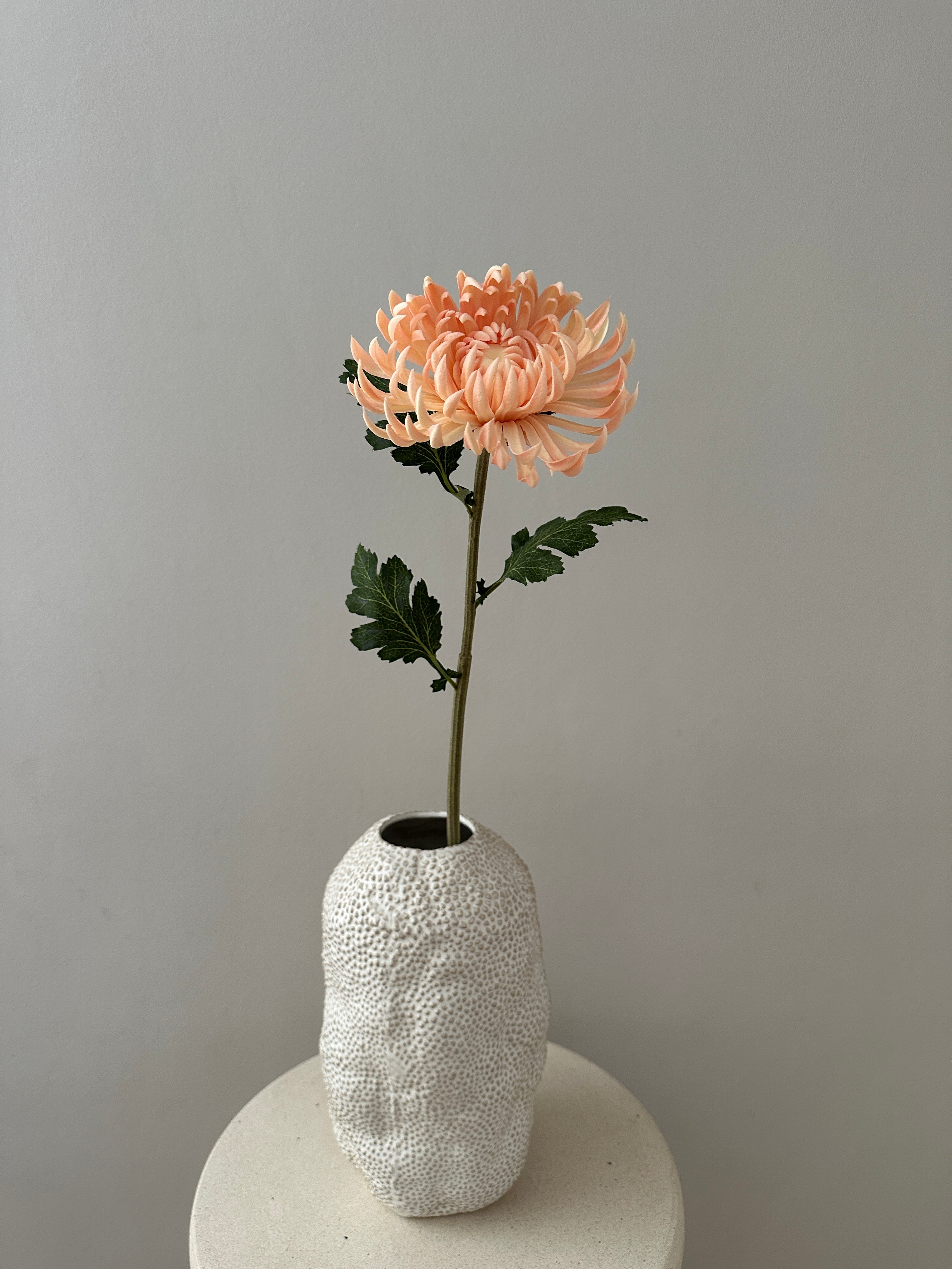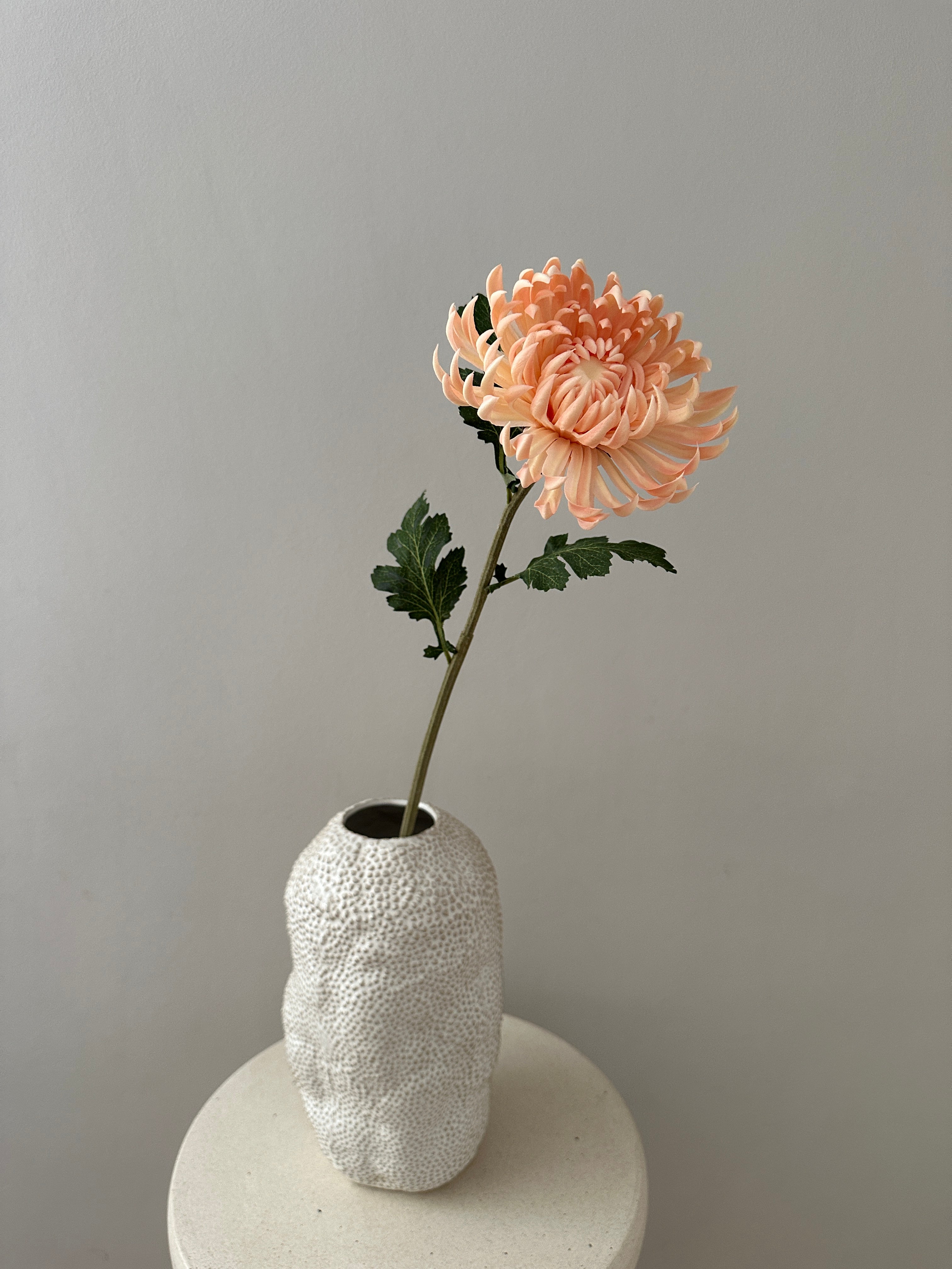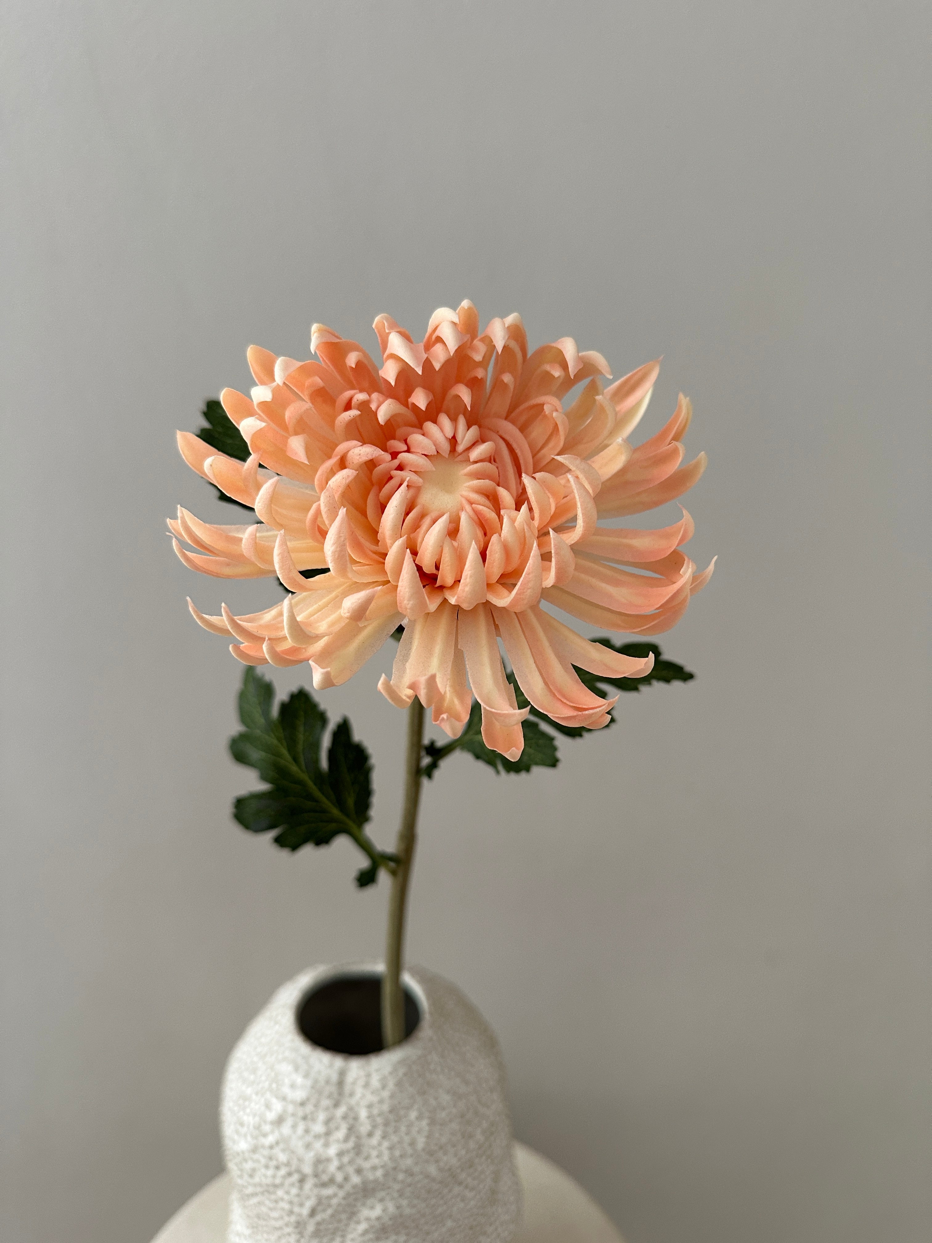 Kunstig eksotisk Krysantemum med dragelignende blade. Stilken er 60 cm lang, men kan bukkes så den passer til alle vaser.