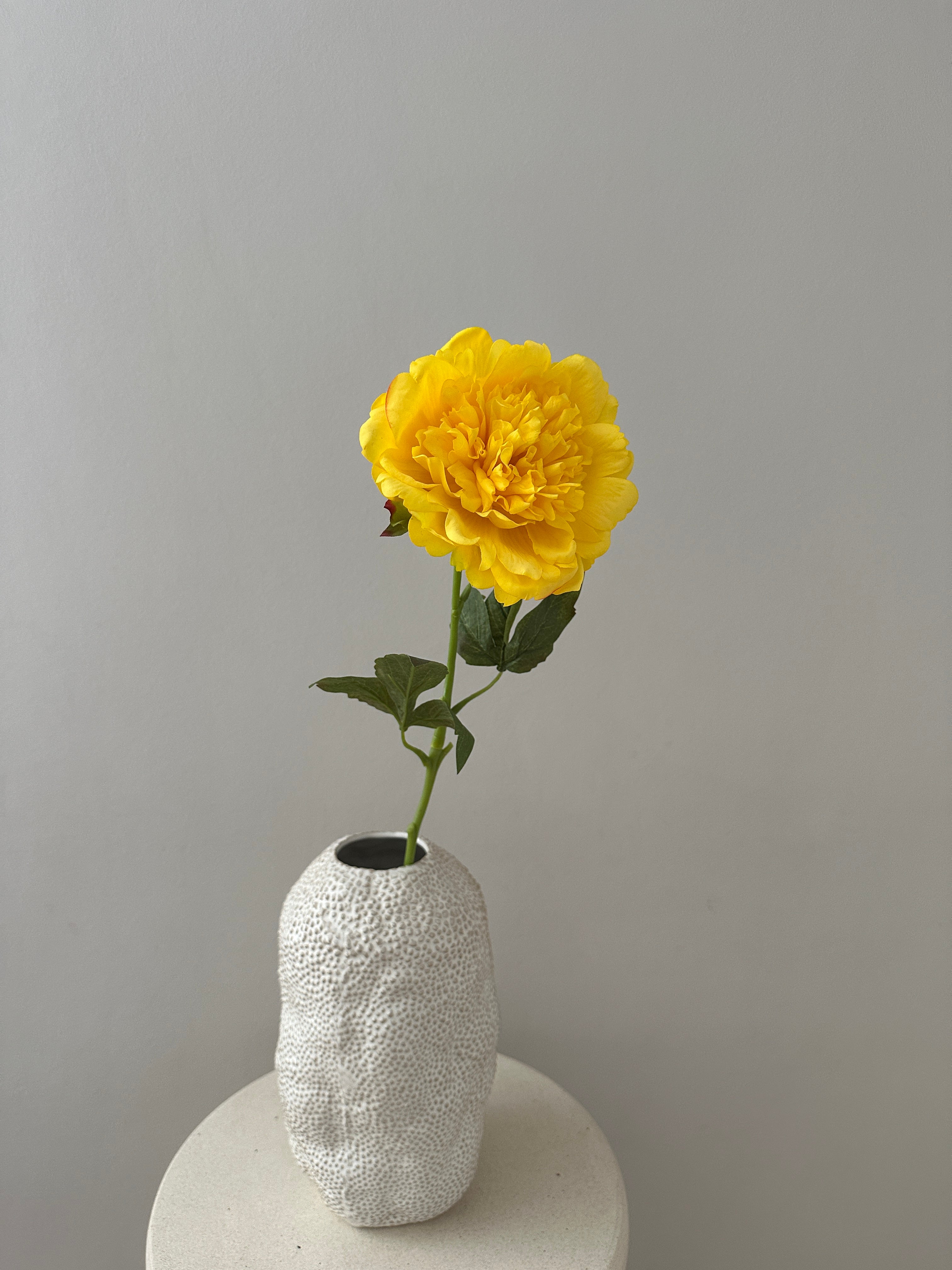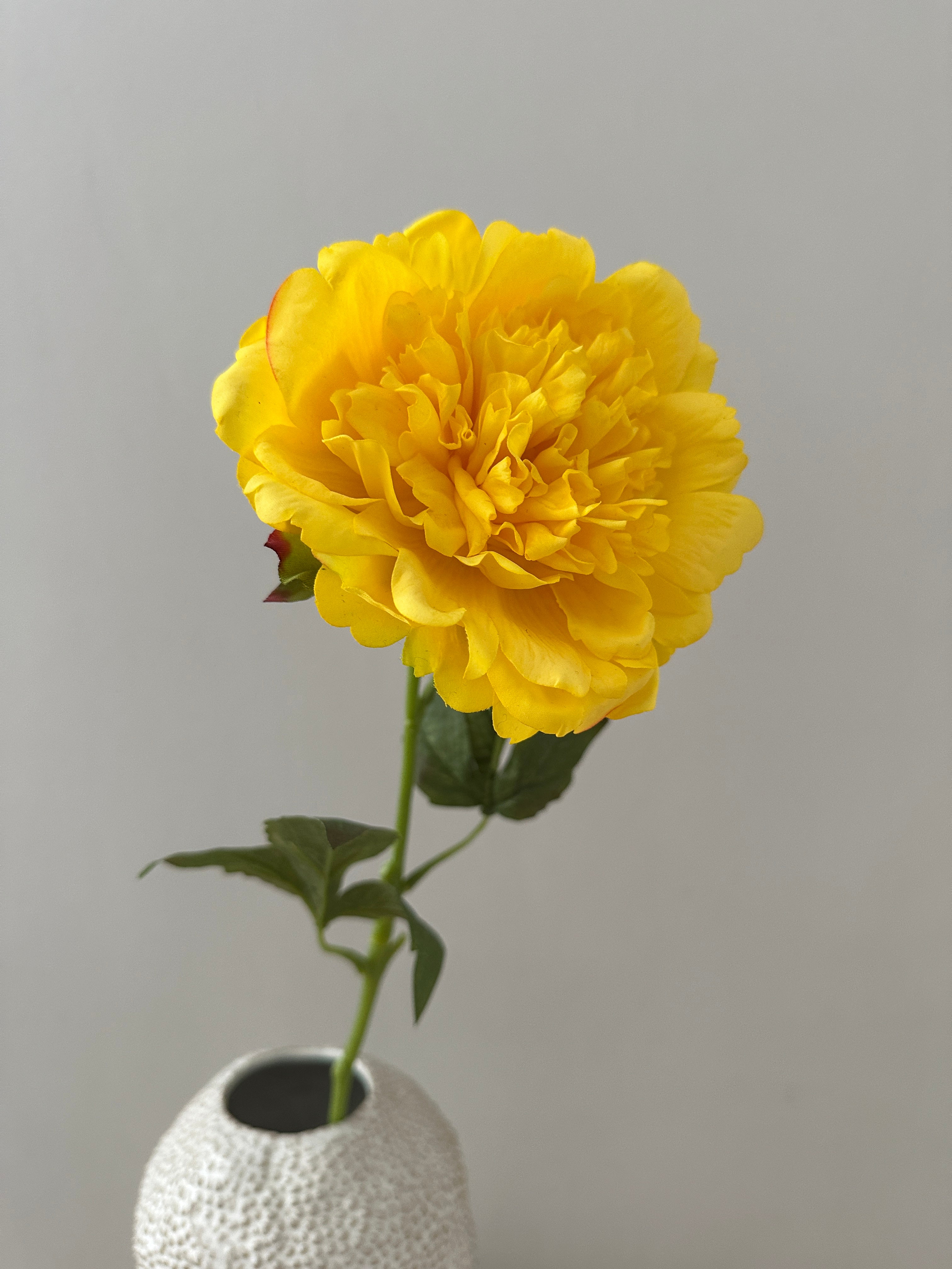Forny dit hjem med vores elegante kunstige pæonblomst på 75 cm stilk, der pryder et enkelt, smukt blomsterhoved. Denne blomst fanger den naturlige skønhed af en pæon med sine fyldige, delikate kronblade og realistiske detaljer, og tilføjer et sofistikeret touch til enhver indretning. Den lange stilk gør den perfekt til at skabe højde og liv i en vase eller som en del af et blomsterarrangement.