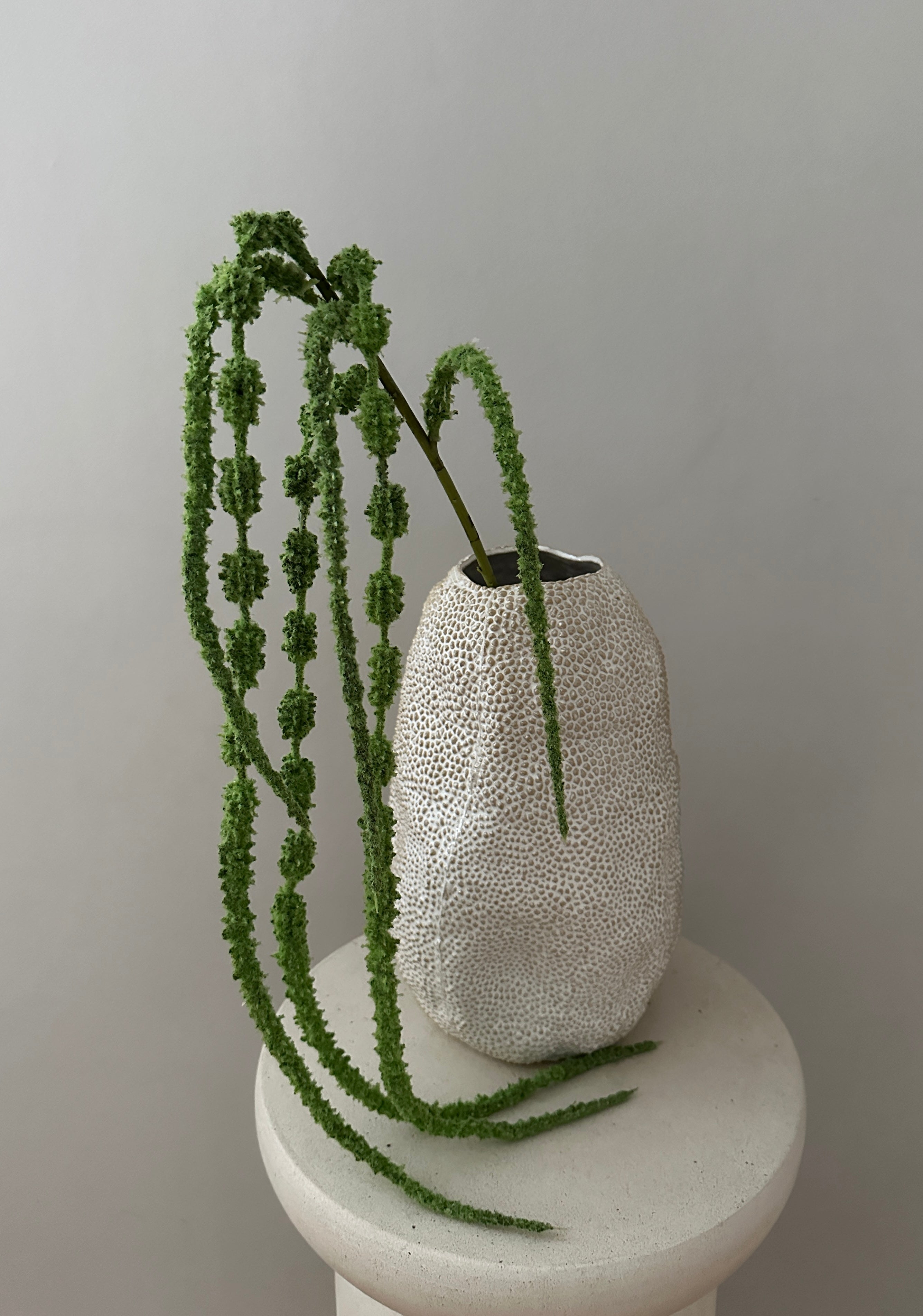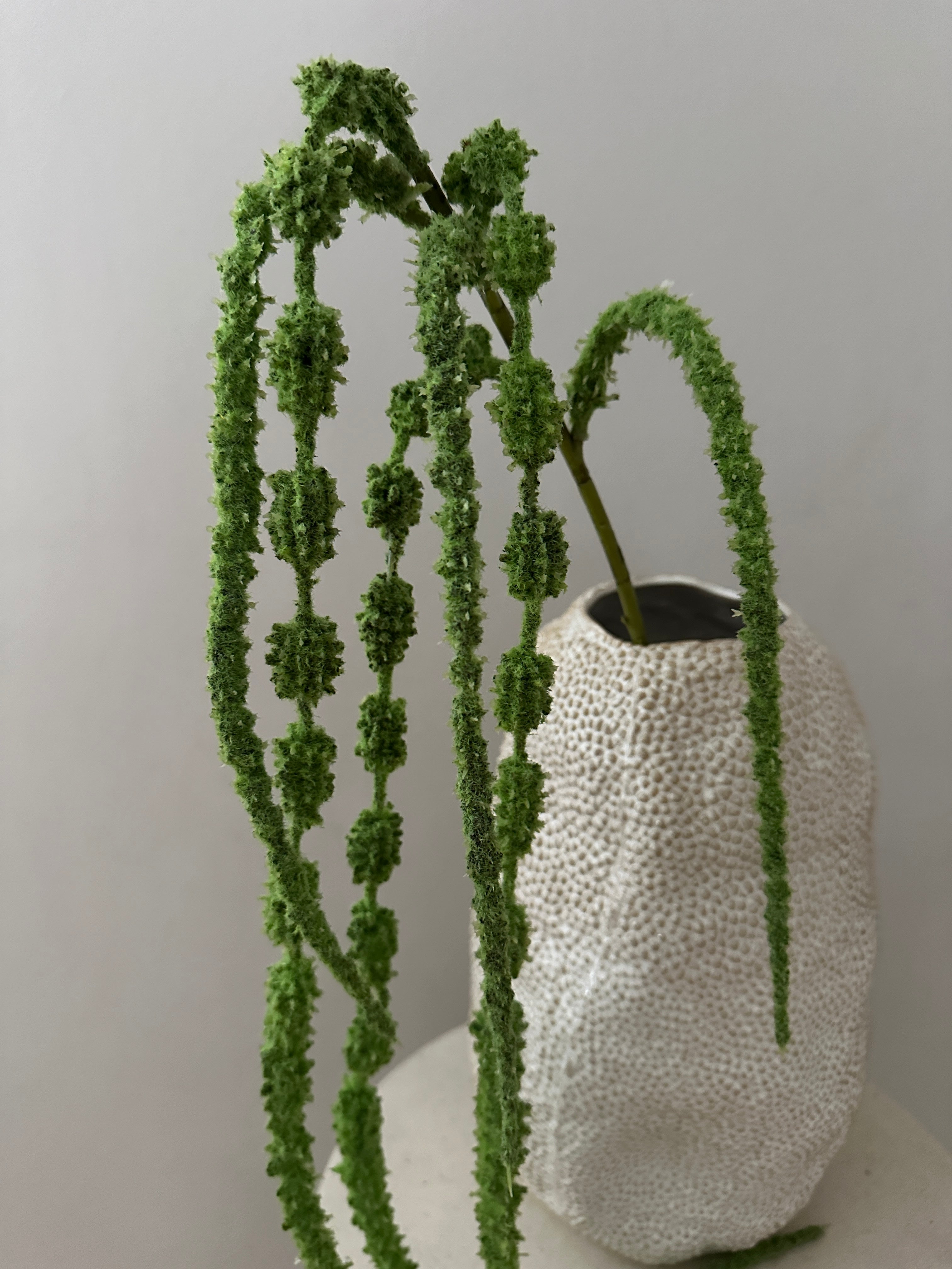 Kunstig Rævehale (Amaranthus) blomst, som hænger smukt ud over vasens kan og giver et eksklusivt udtryk. Stilken er 106 cm lang, men kan bukkes så de passer til alle vaser.