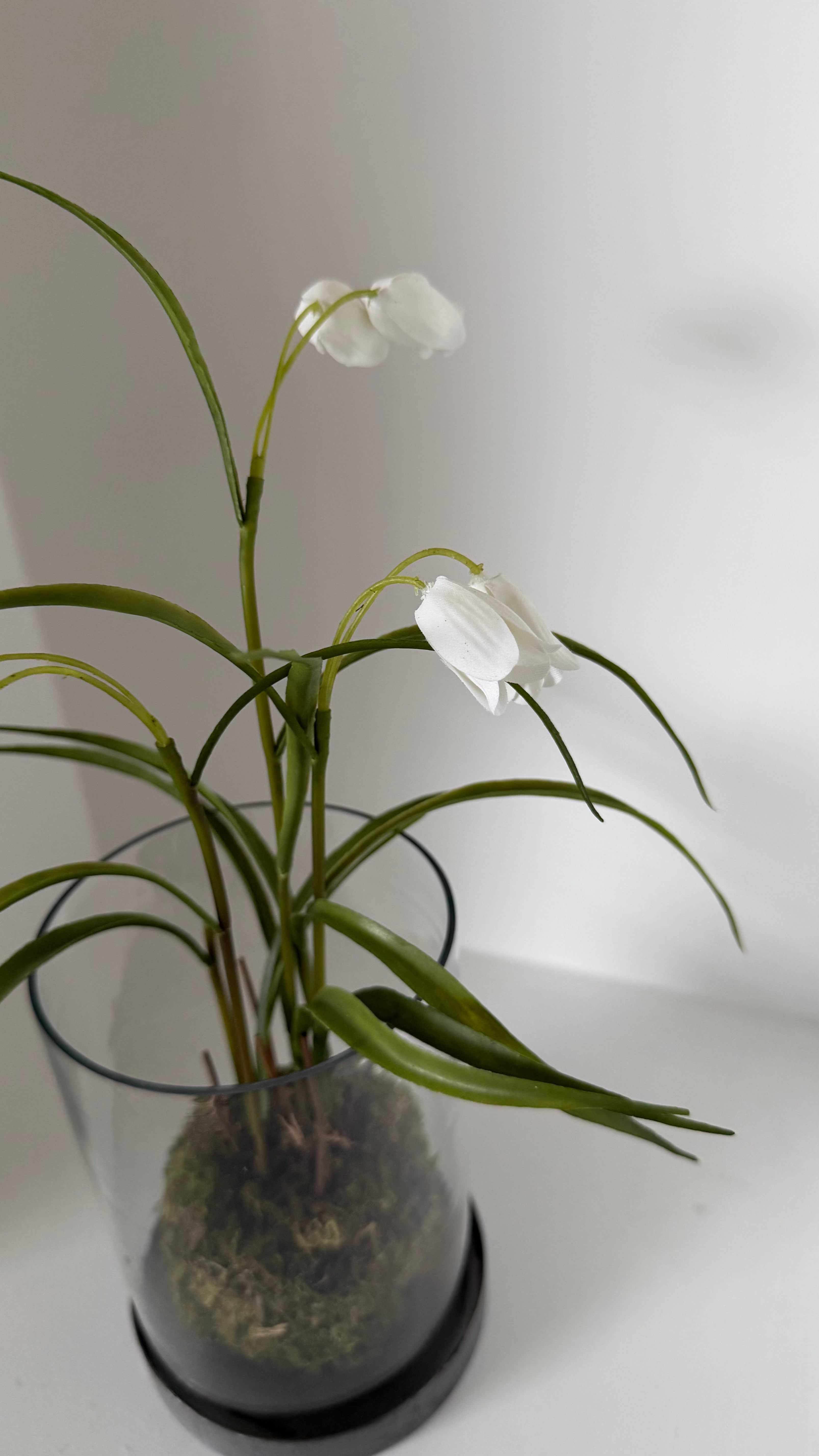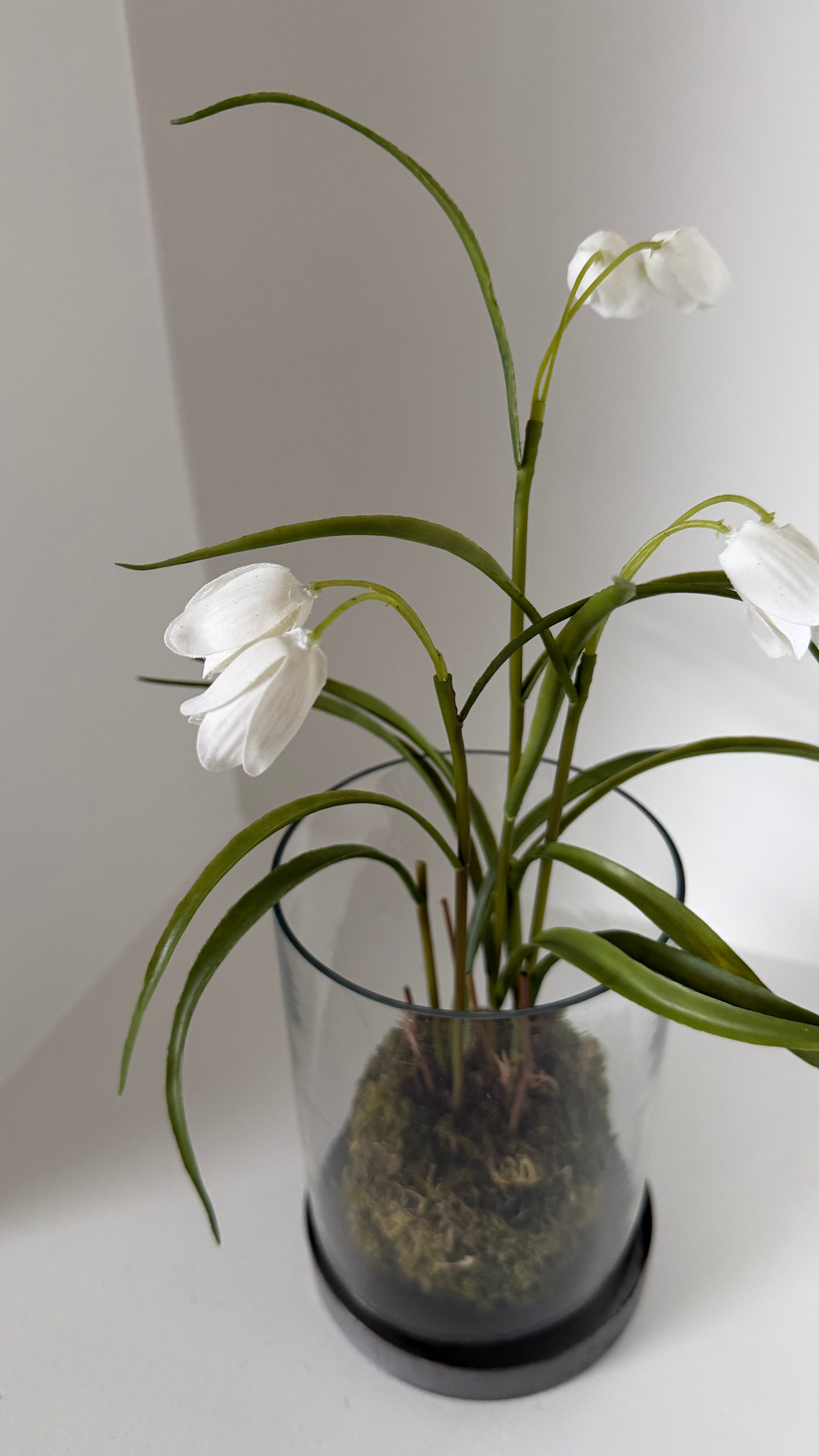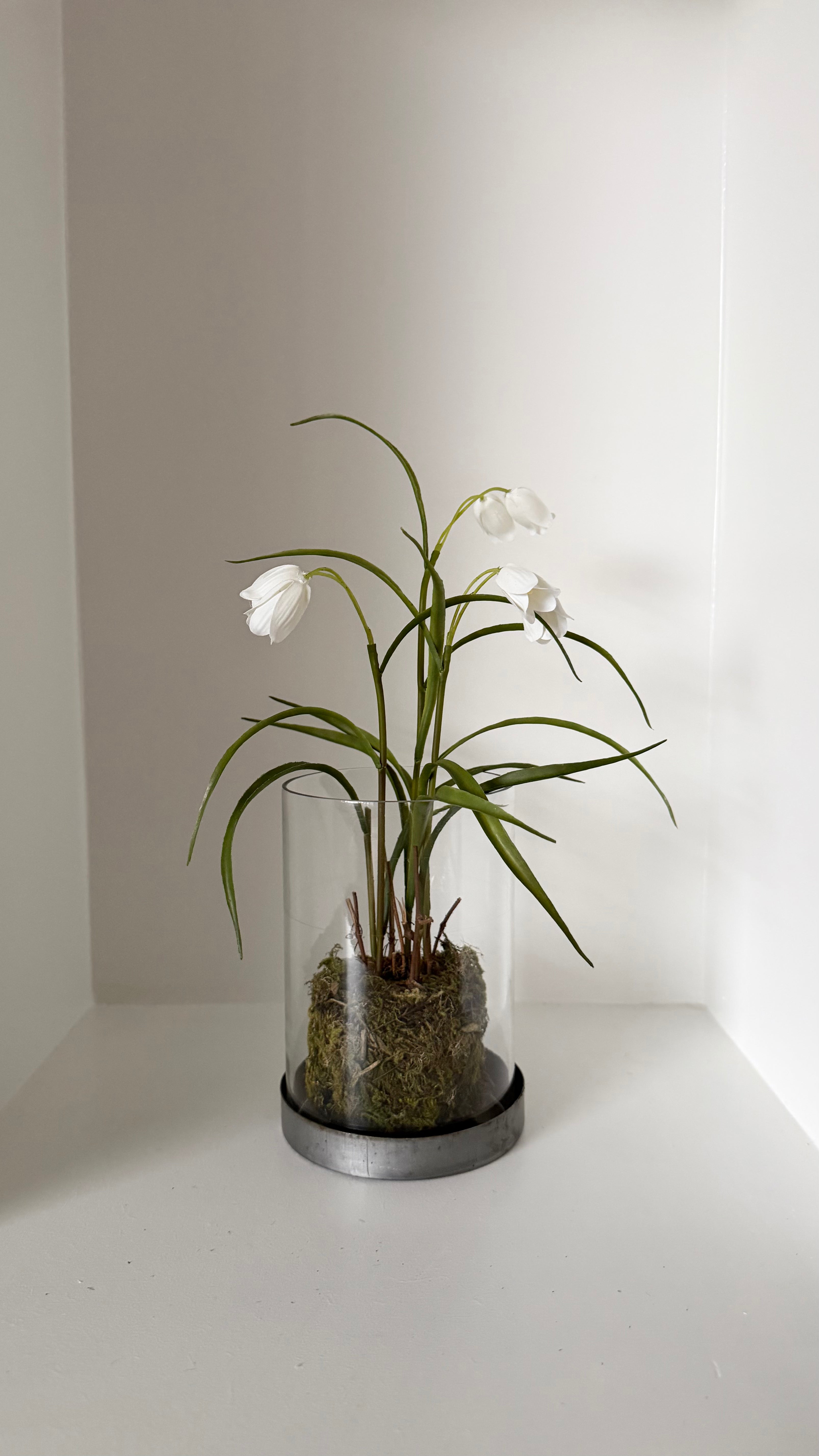 Yndig kunstig klokkeblomst med mosfod. Den både ser og føles naturtro. Planten kræver ingen vedligeholdelse, og kan nydes hele året rundt.
