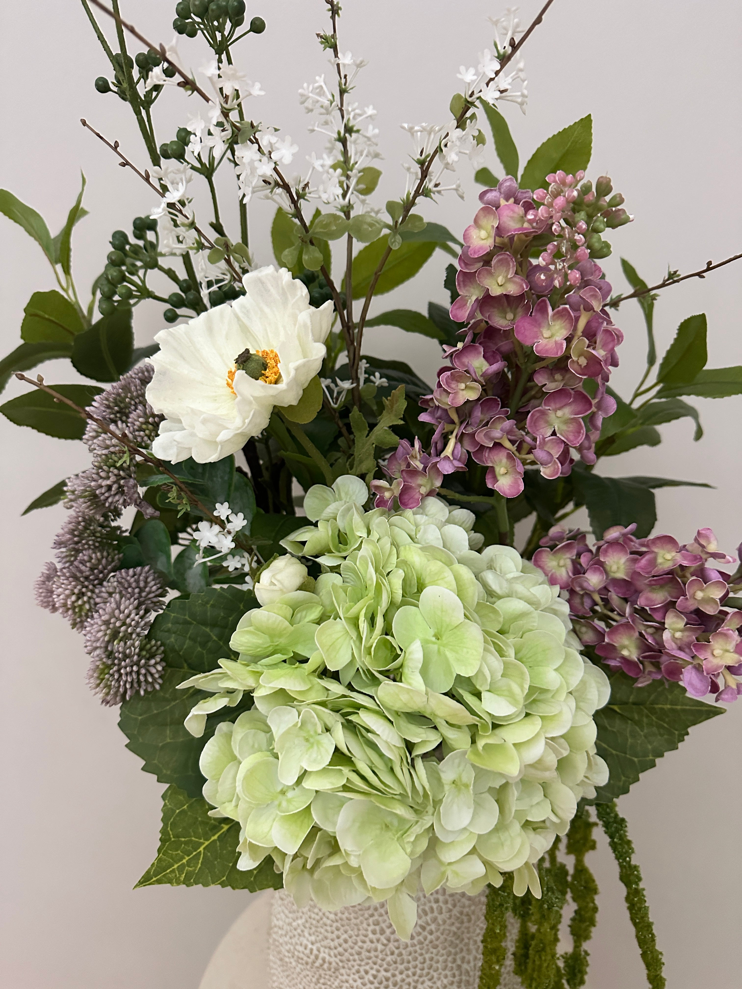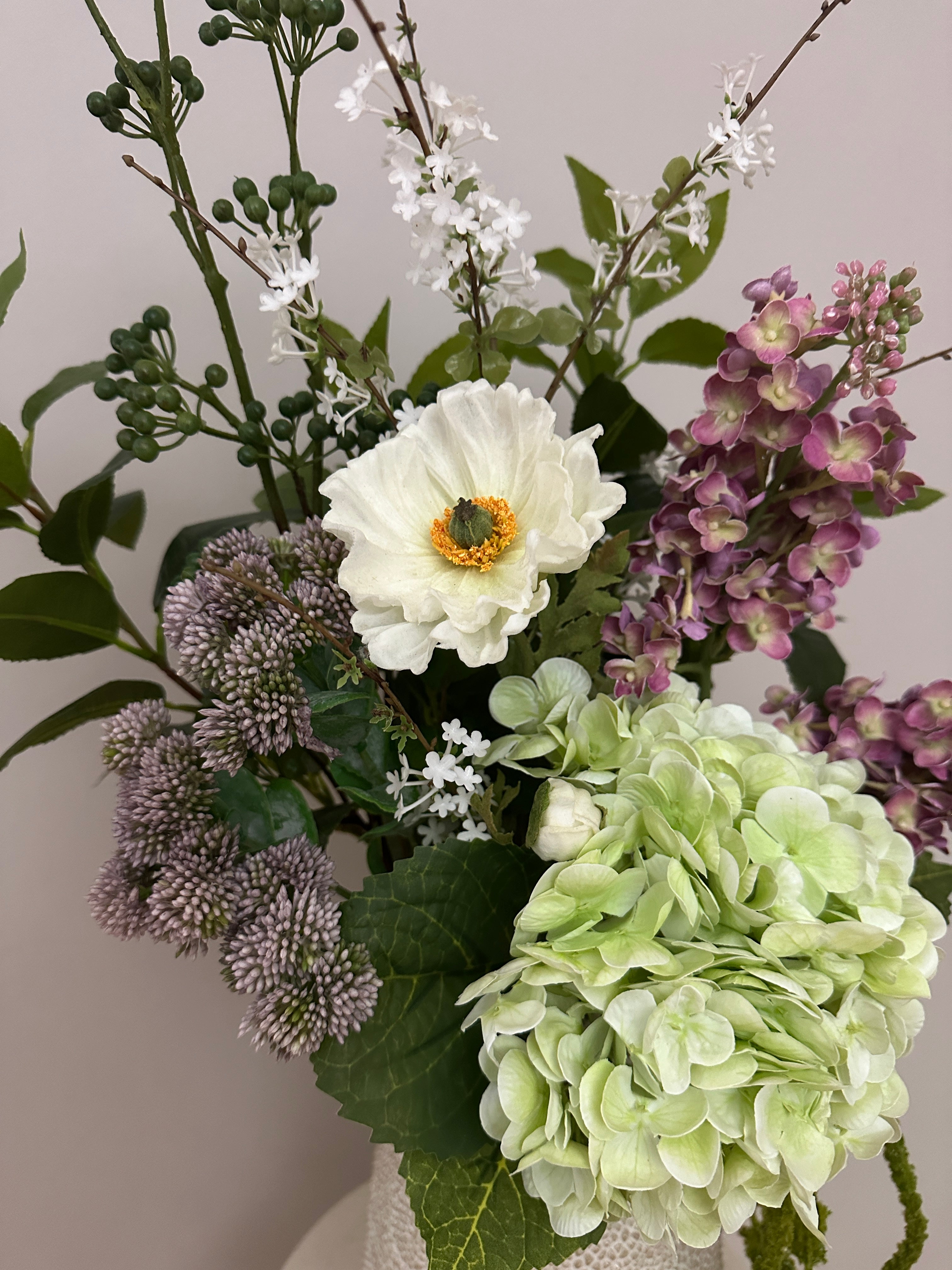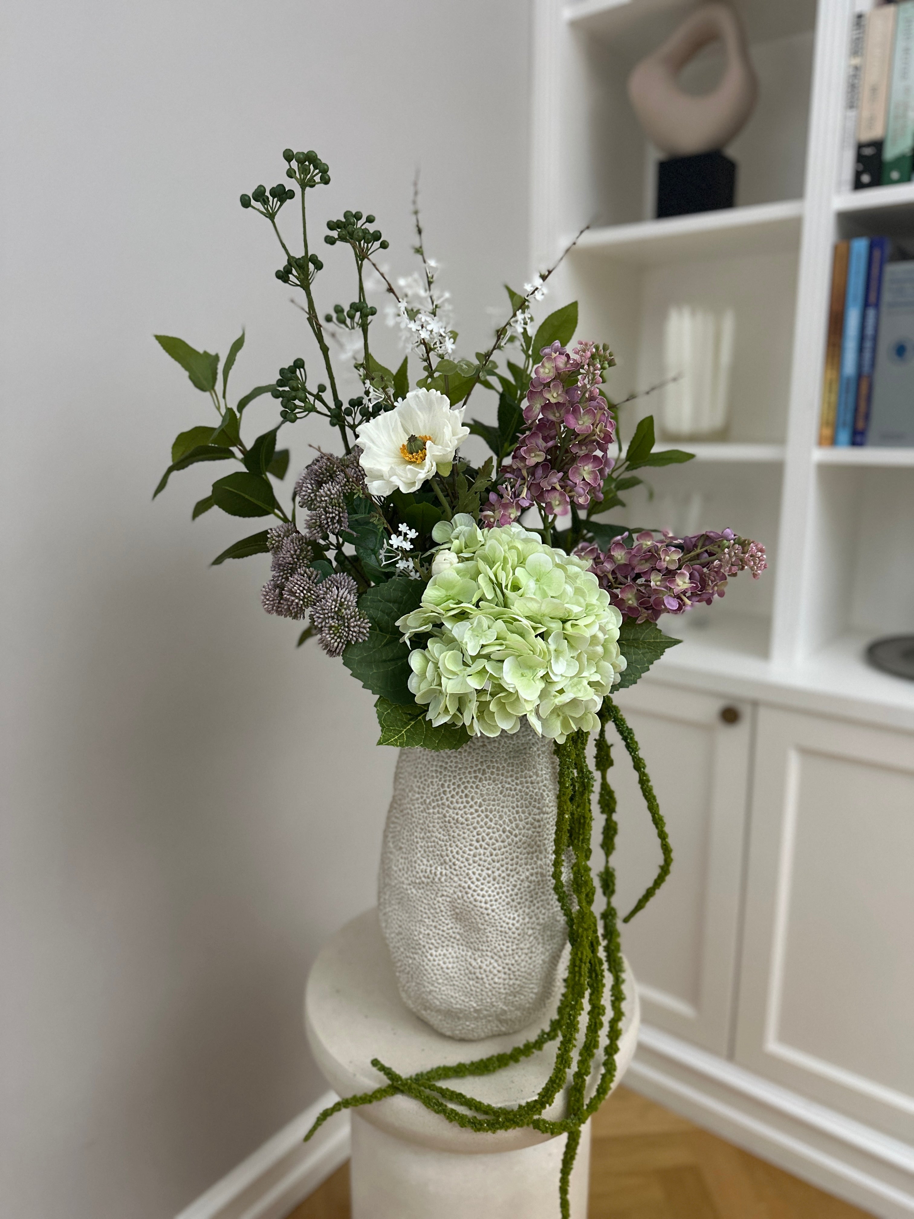 Smuk buket af kunstige blomster, som giver et tidløst touch til ethvert rum. De naturtro blomster ser ud som friske, og du kan nyde dem uden bekymringer om vanding eller pleje. Den perfekte dekoration til hjemmet, kontoret eller som gave, der kan glæde i lang tid.