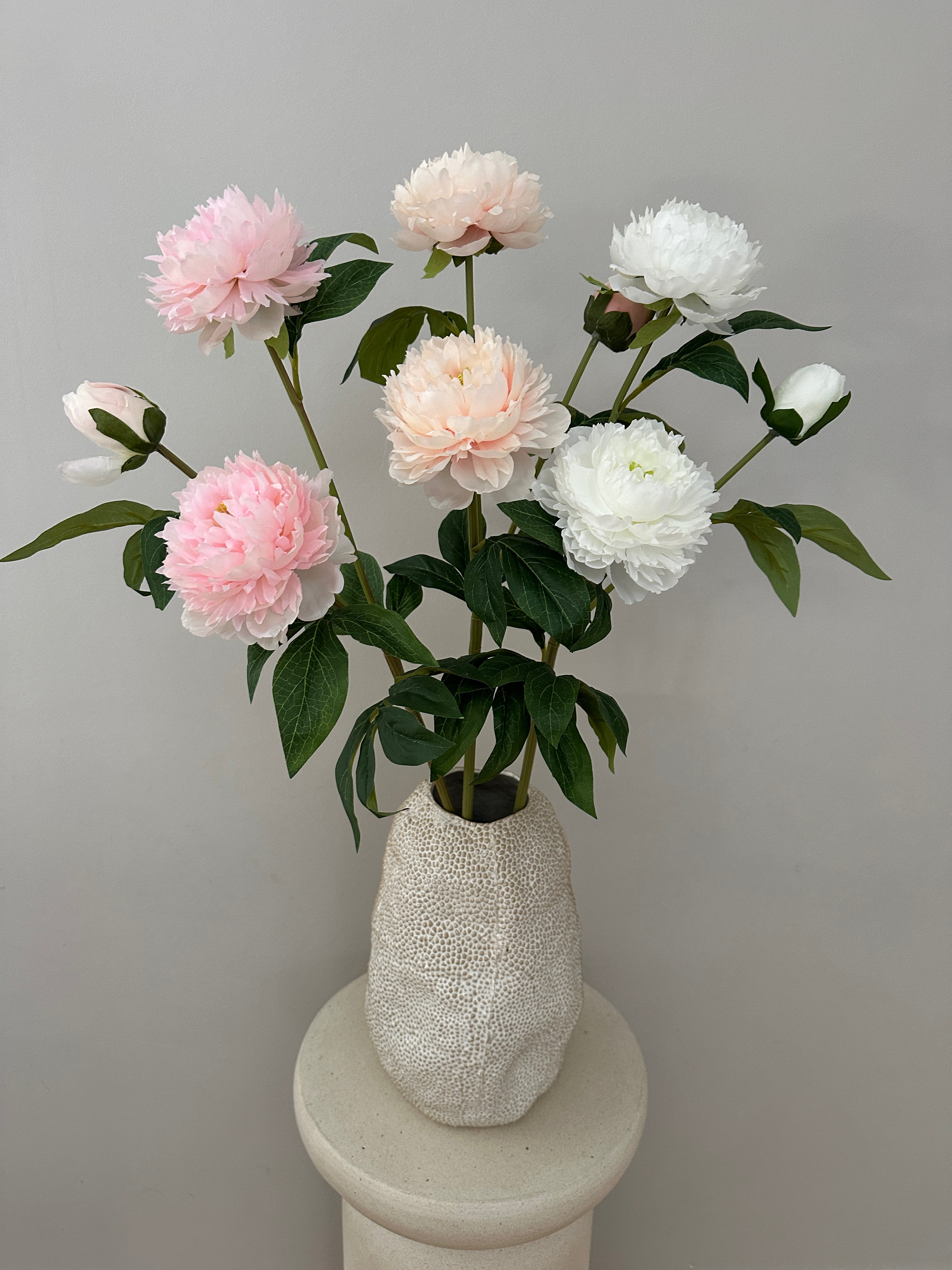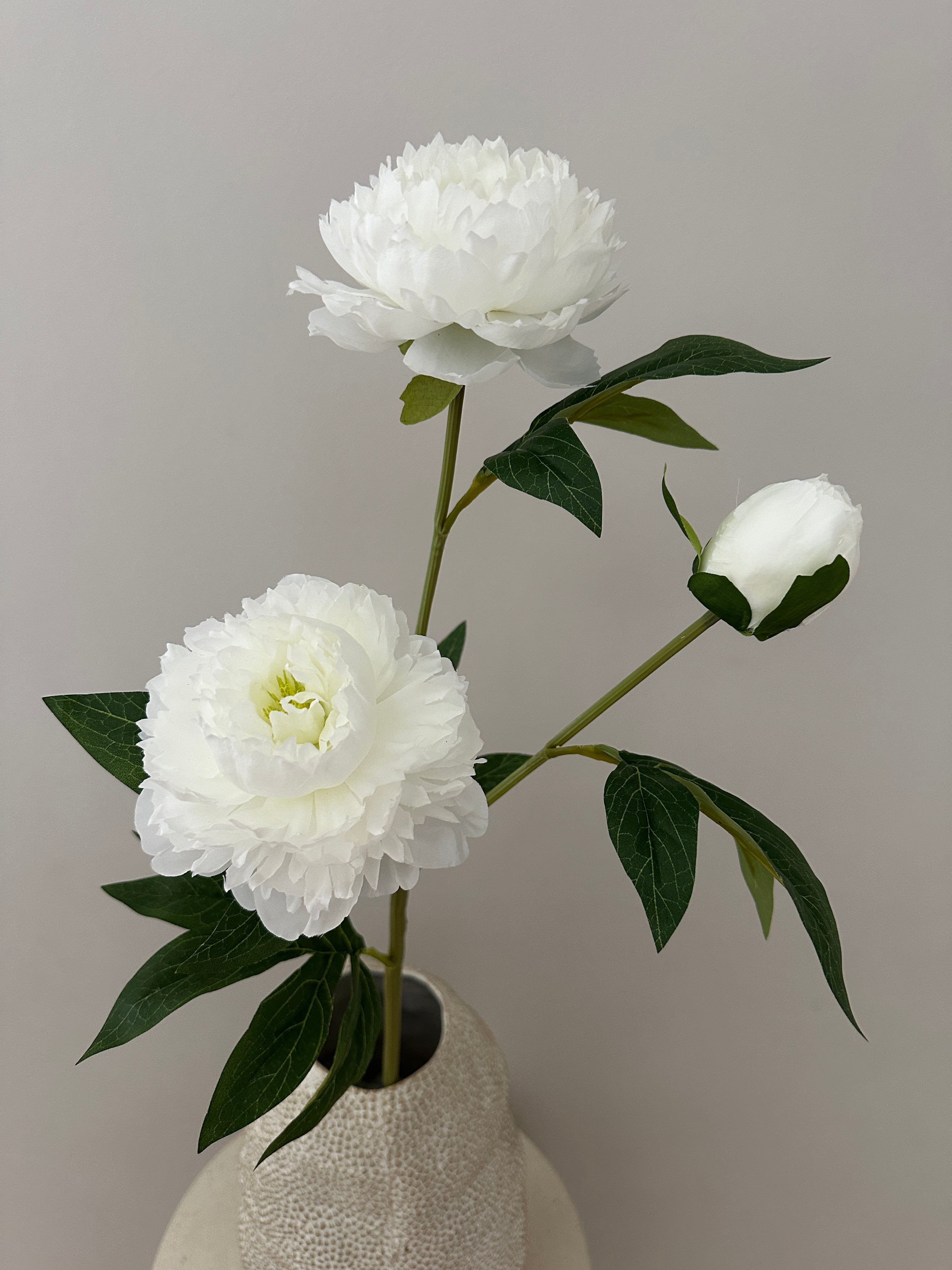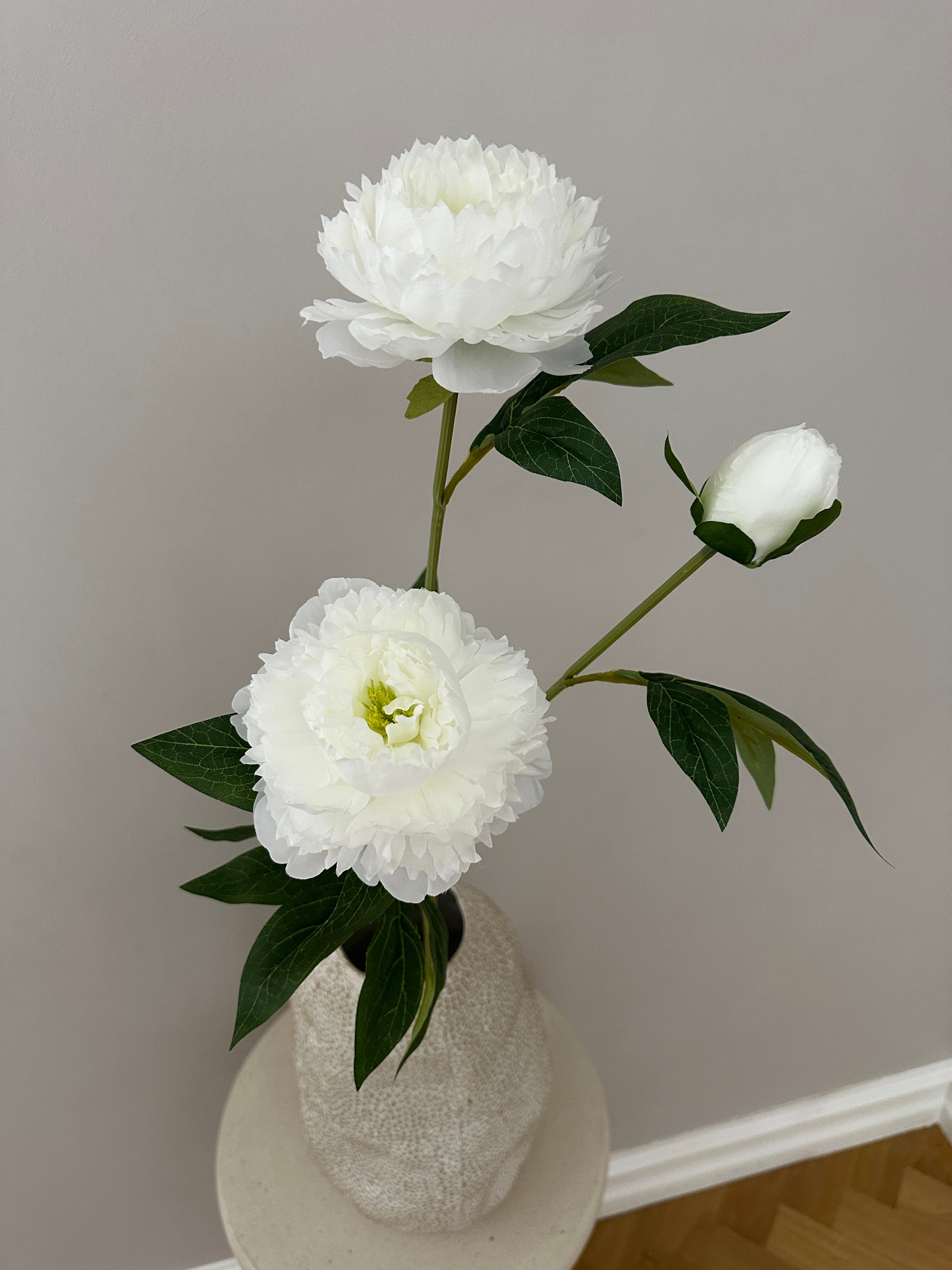 Bring naturens elegante skønhed ind i dit hjem med vores kunstige pæonblomst med tre imponerende blomsterhoveder! Med sin 75 cm lange stilk og de fyldige, delikate blomsterhoveder i smukke nuancer, er denne pæon den perfekte tilføjelse til enhver indretning. Uanset om du placerer den i en stor vase eller som en del af et blomsterarrangement, vil denne blomst fange opmærksomheden og skabe et sofistikeret touch.