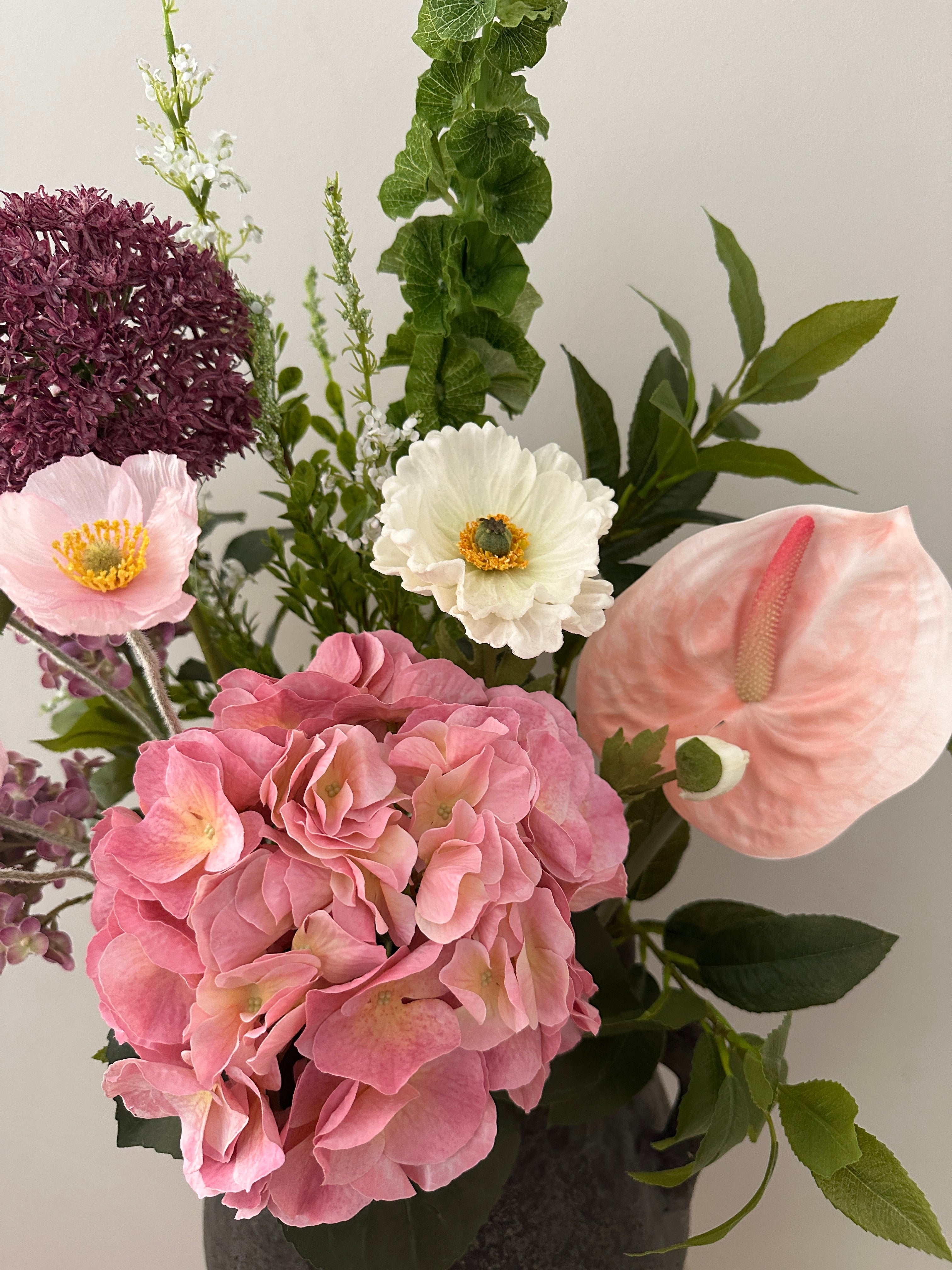 Smuk buket af kunstige blomster, som giver et tidløst touch til ethvert rum. De naturtro blomster ser ud som friske, og du kan nyde dem uden bekymringer om vanding eller pleje. Den perfekte dekoration til hjemmet, kontoret eller som gave, der kan glæde i lang tid.