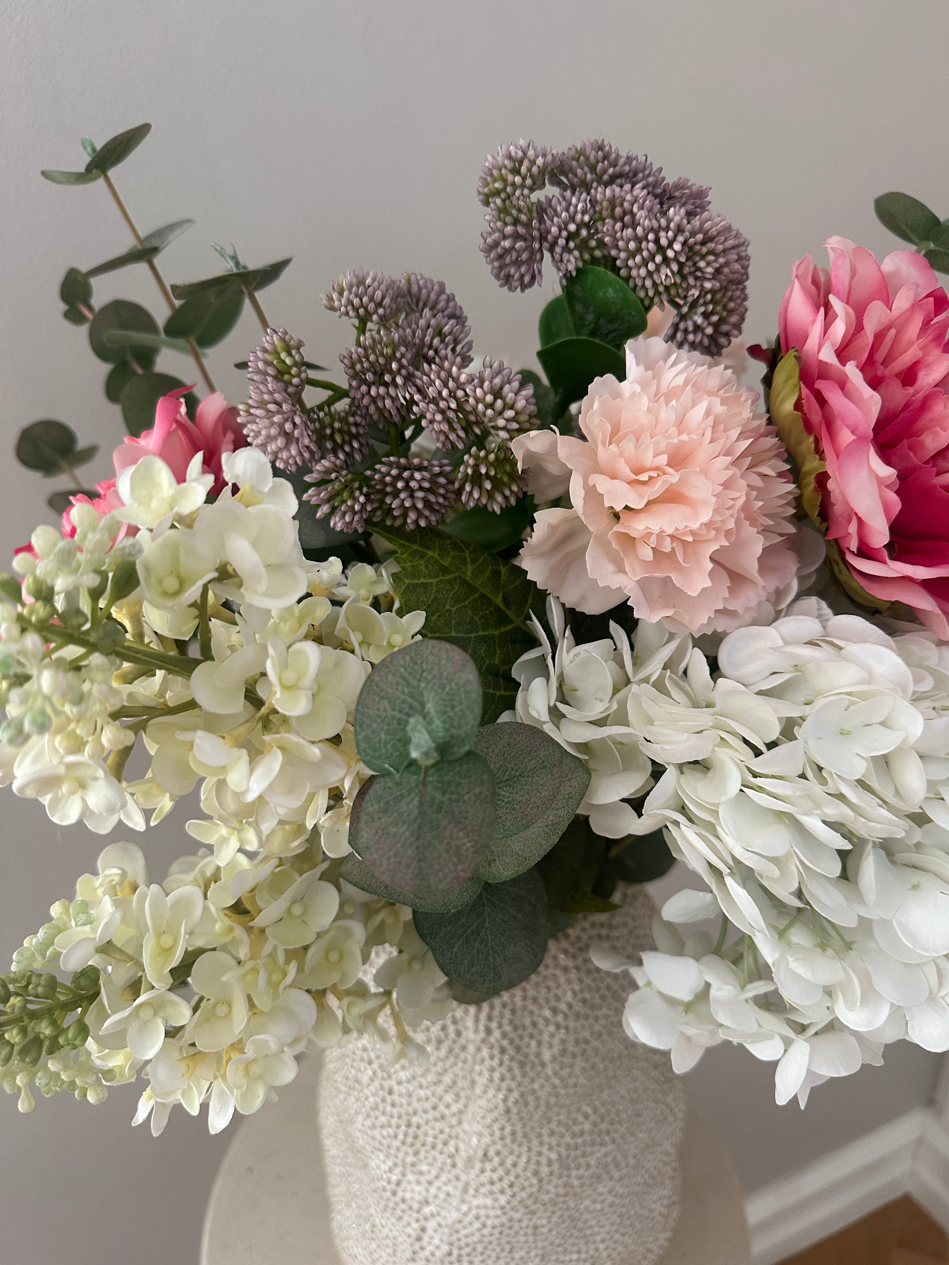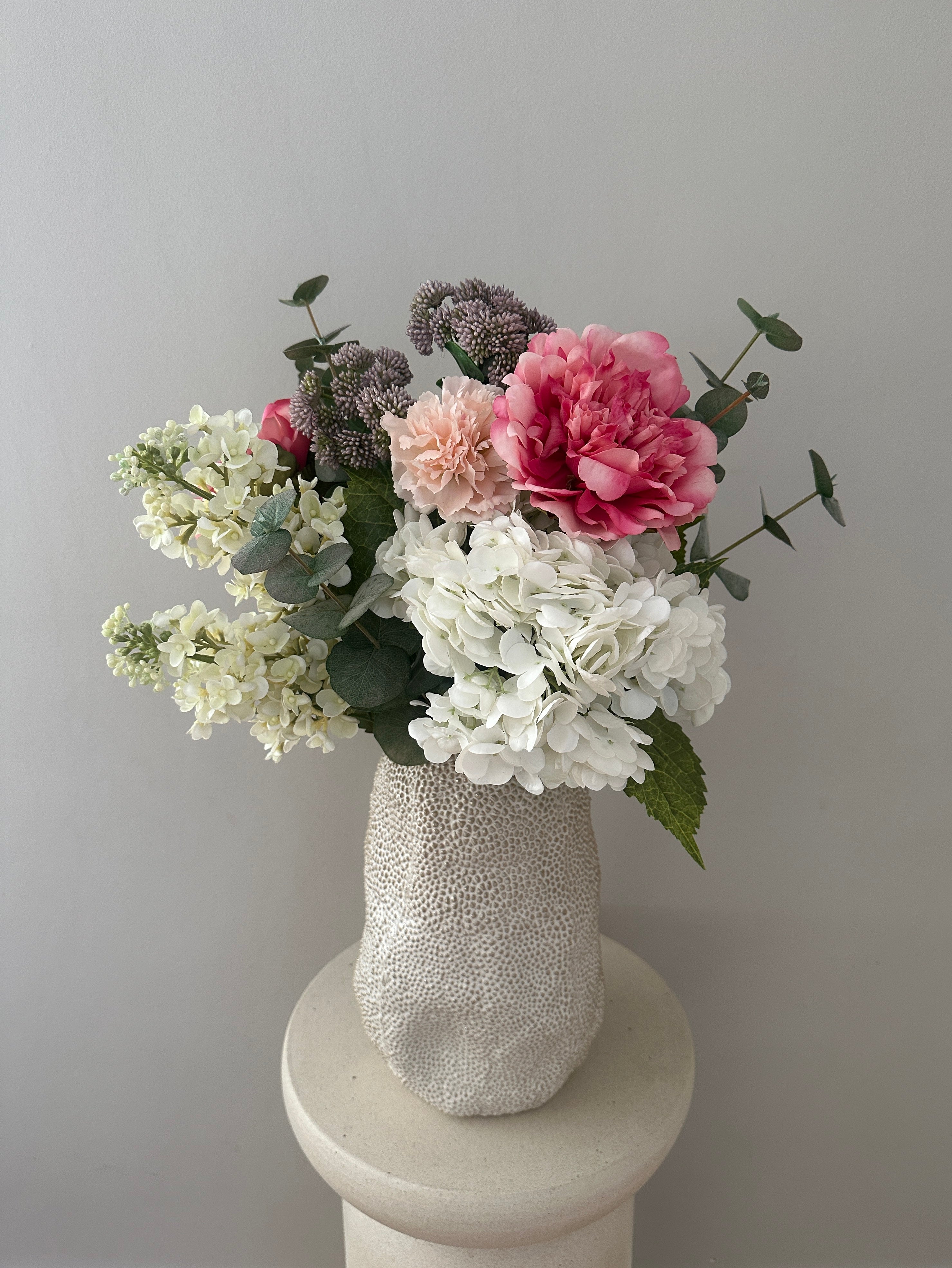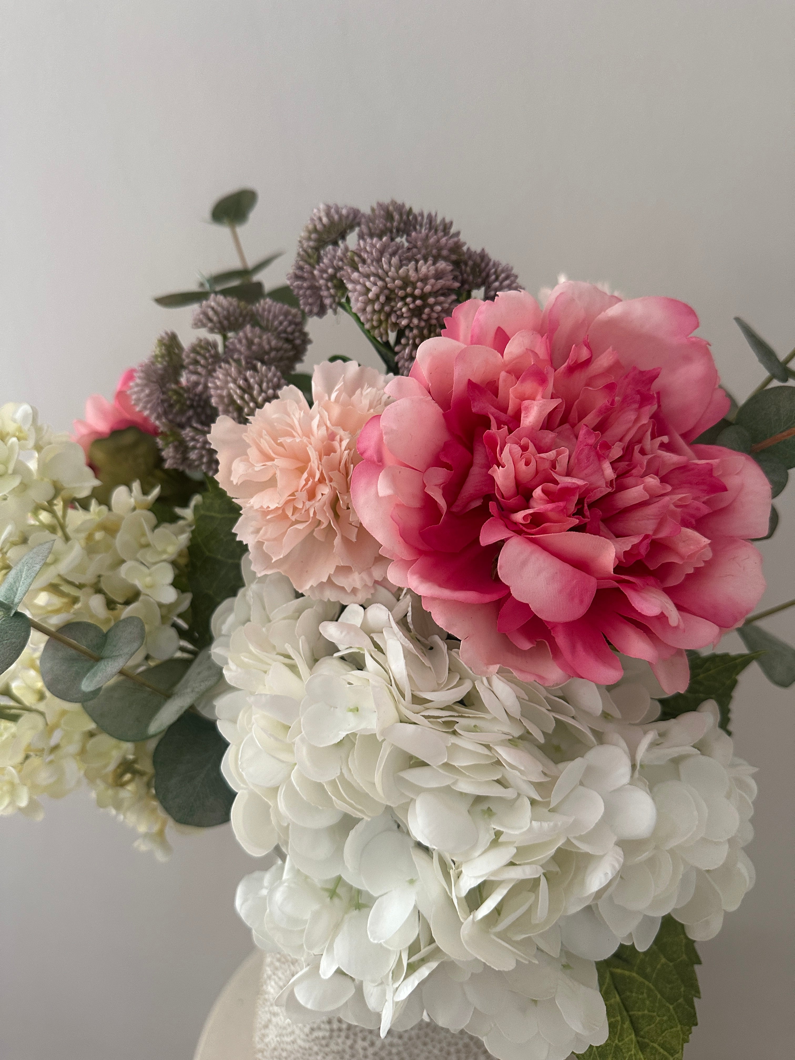Smuk buket af kunstige blomster, som giver et tidløst touch til ethvert rum. De naturtro blomster ser ud som friske, og du kan nyde dem uden bekymringer om vanding eller pleje. Den perfekte dekoration til hjemmet, kontoret eller som gave, der kan glæde i lang tid.