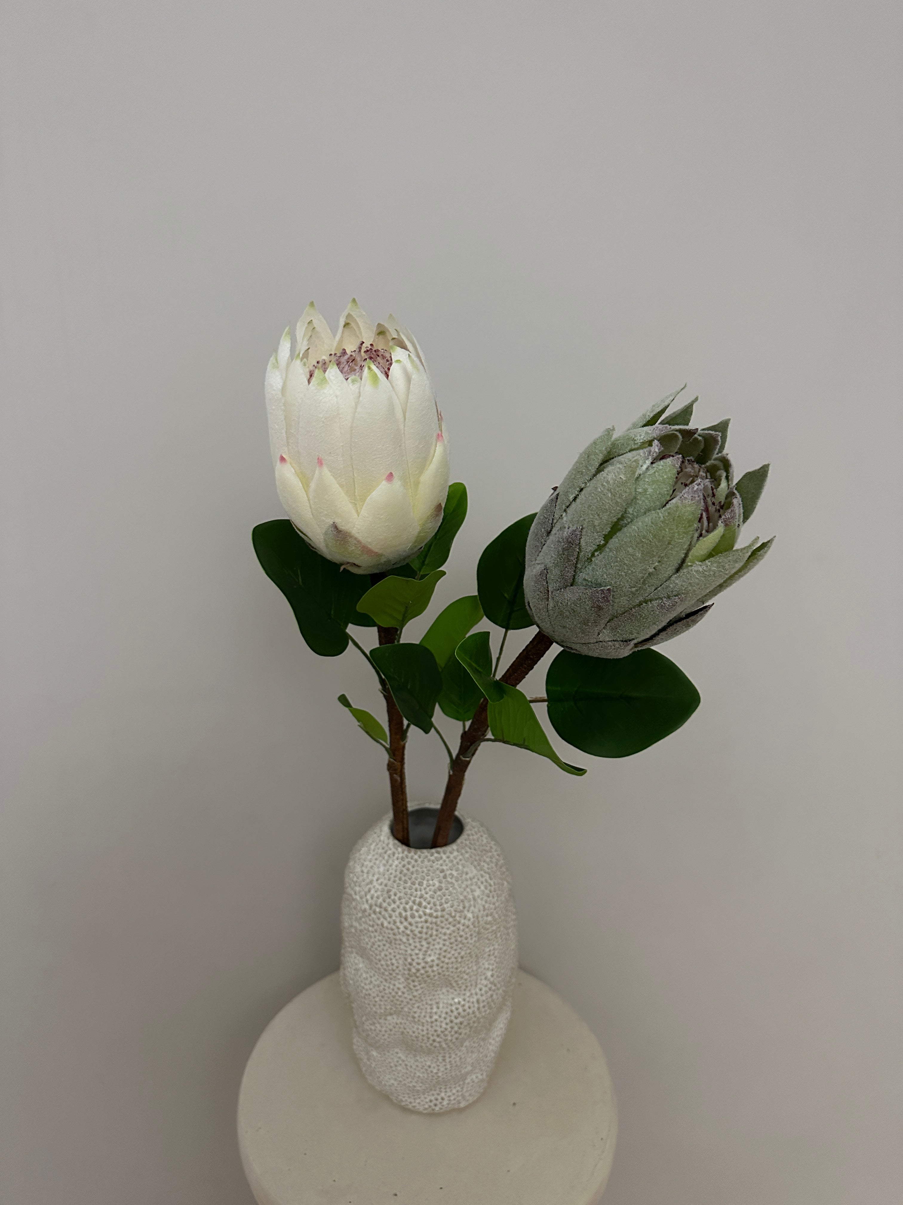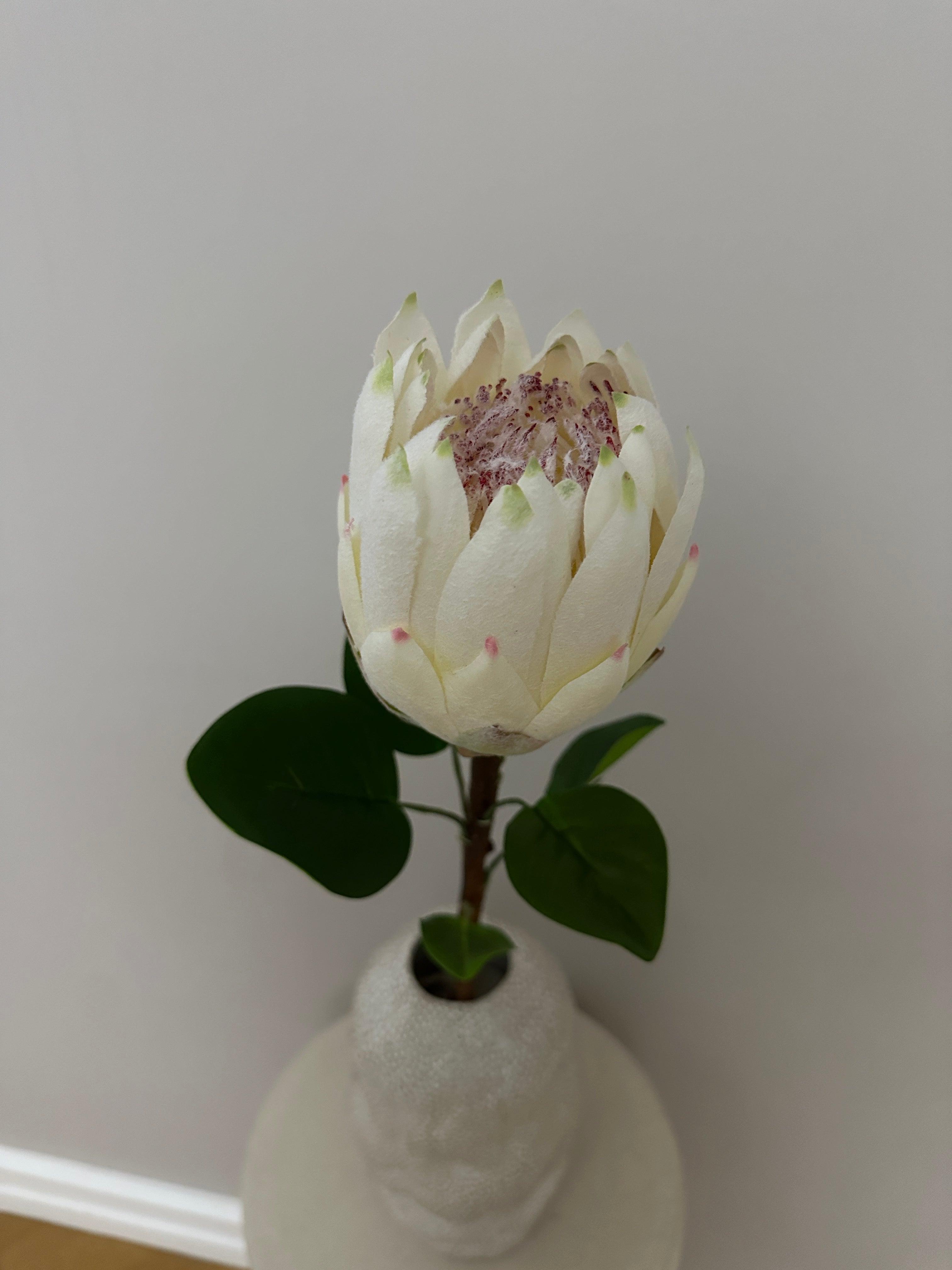 Dekorativ kunstig stor Protea blomst. Vi har den også i grøn
