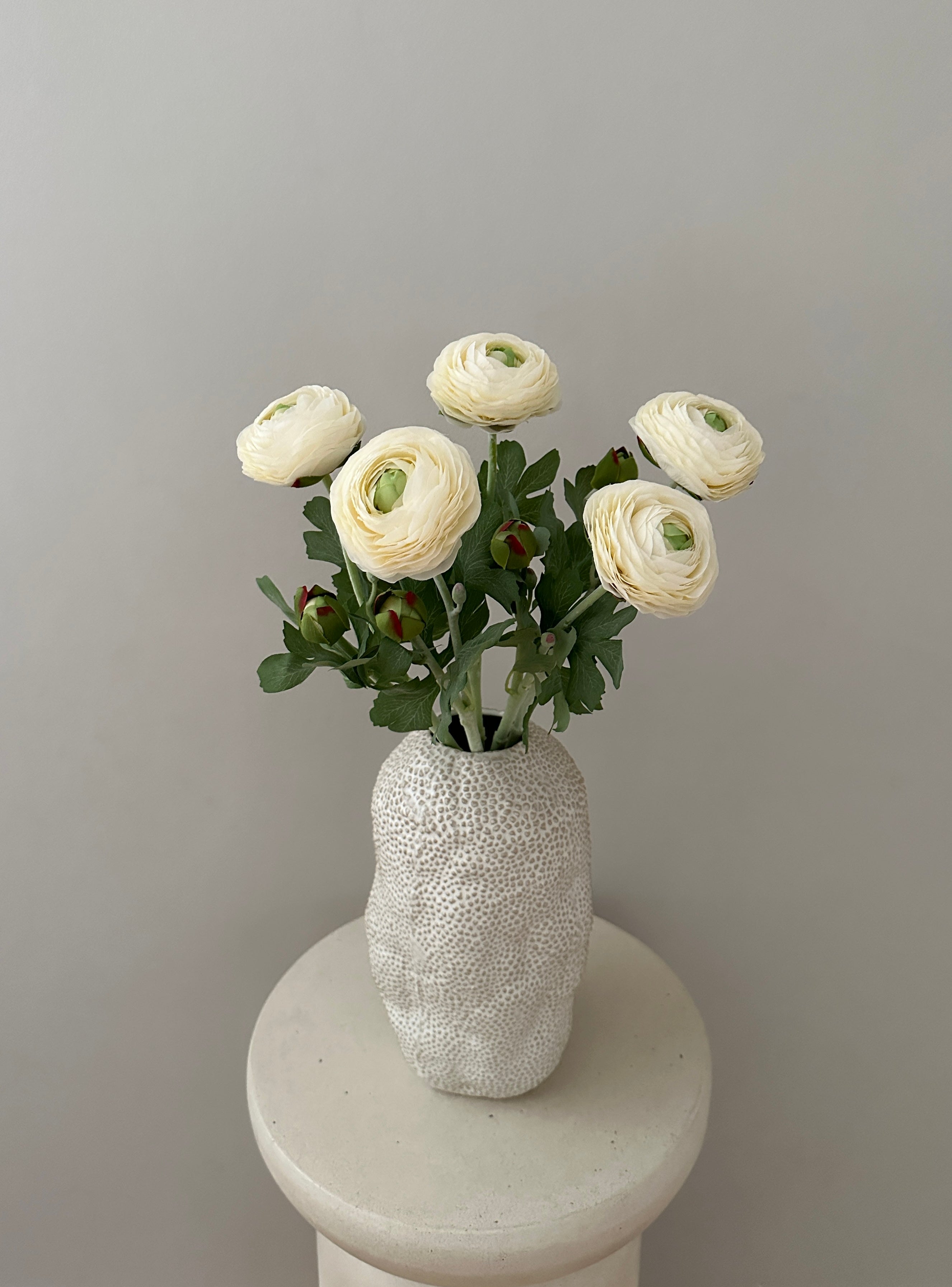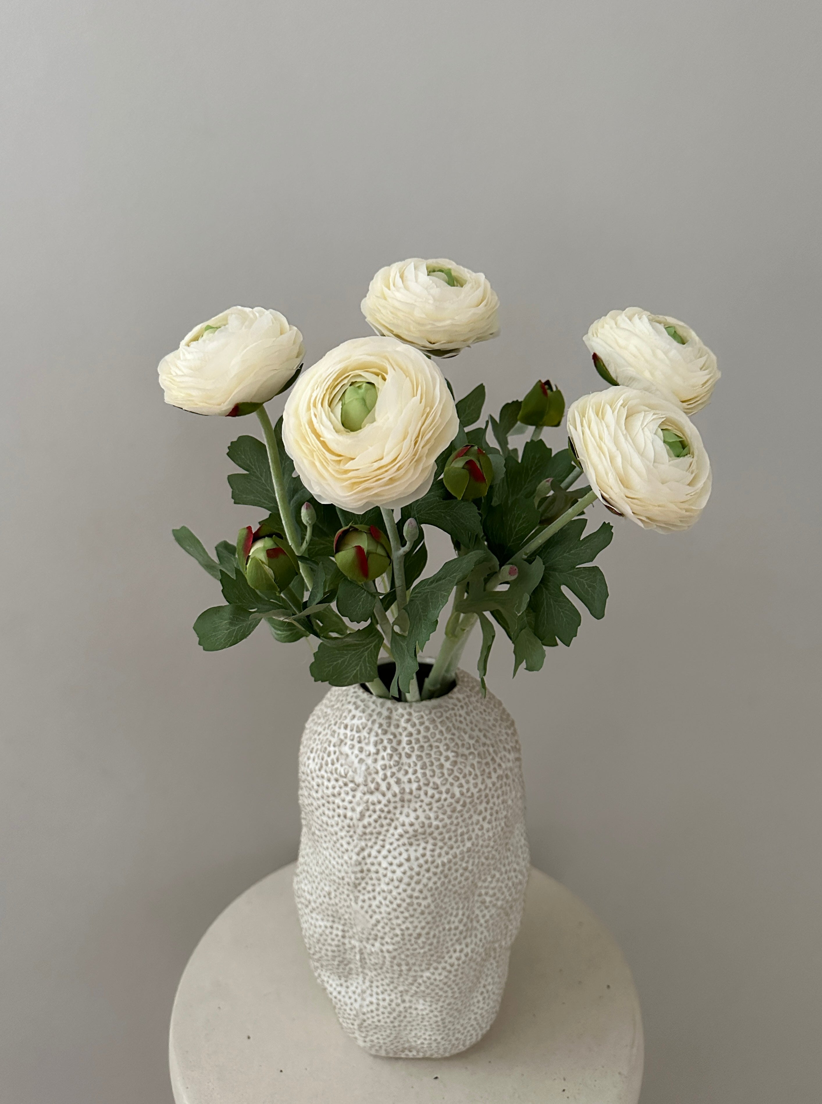 Den kunstige ranunkel kræver ingen vedligeholdelse og holder sig smuk året rundt – en praktisk og flot måde at bringe naturens skønhed ind i dit hjem.
