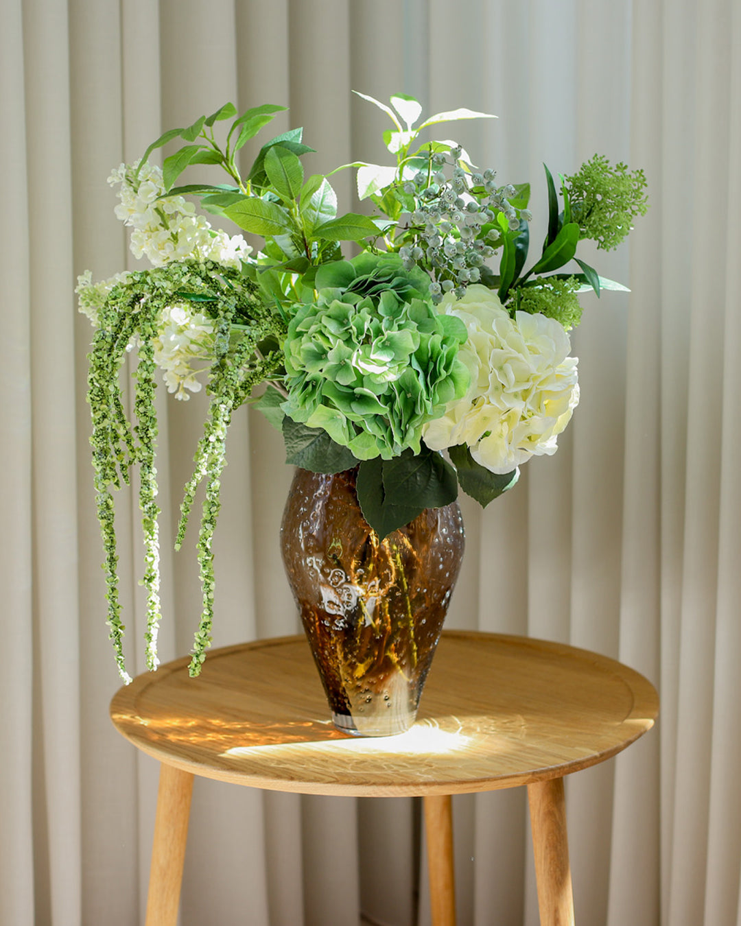 Særtilbud på en smuk vase fra RO Collection og en buket af naturtro kunstig blomster.