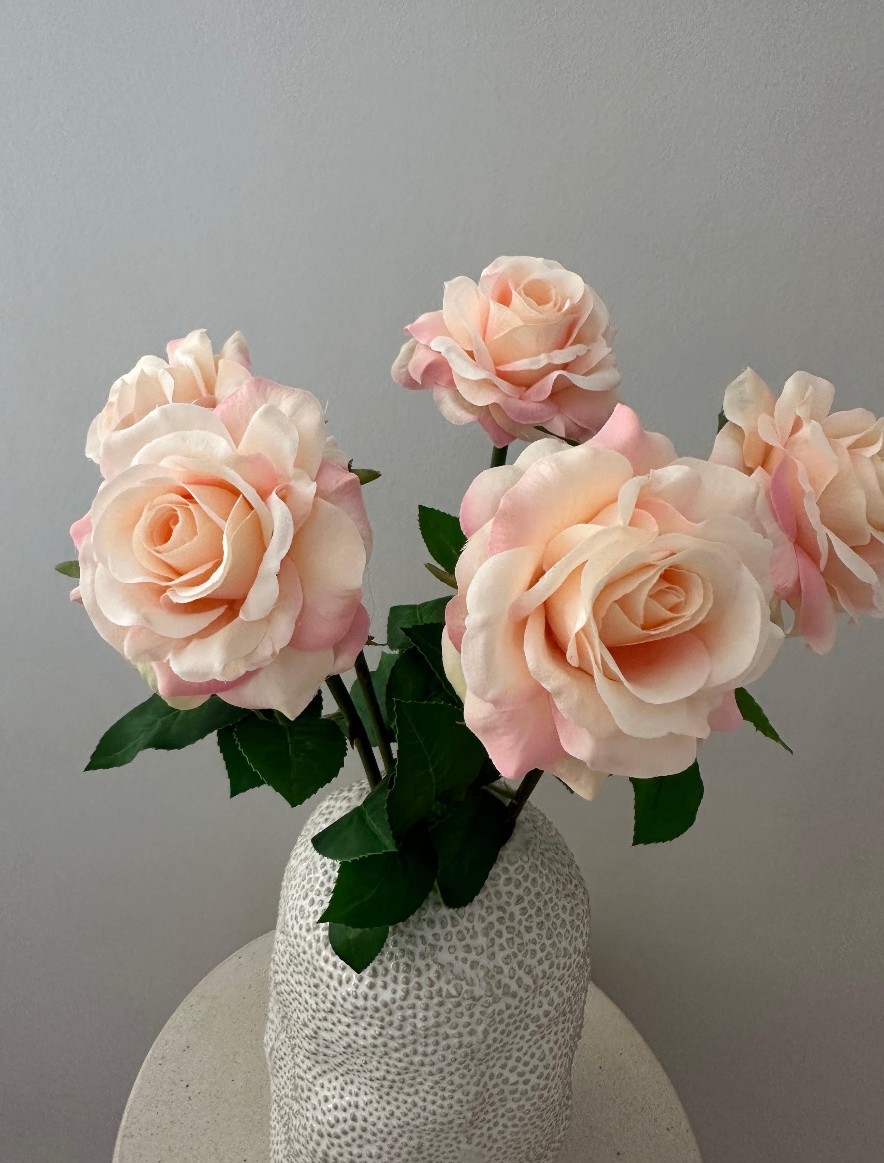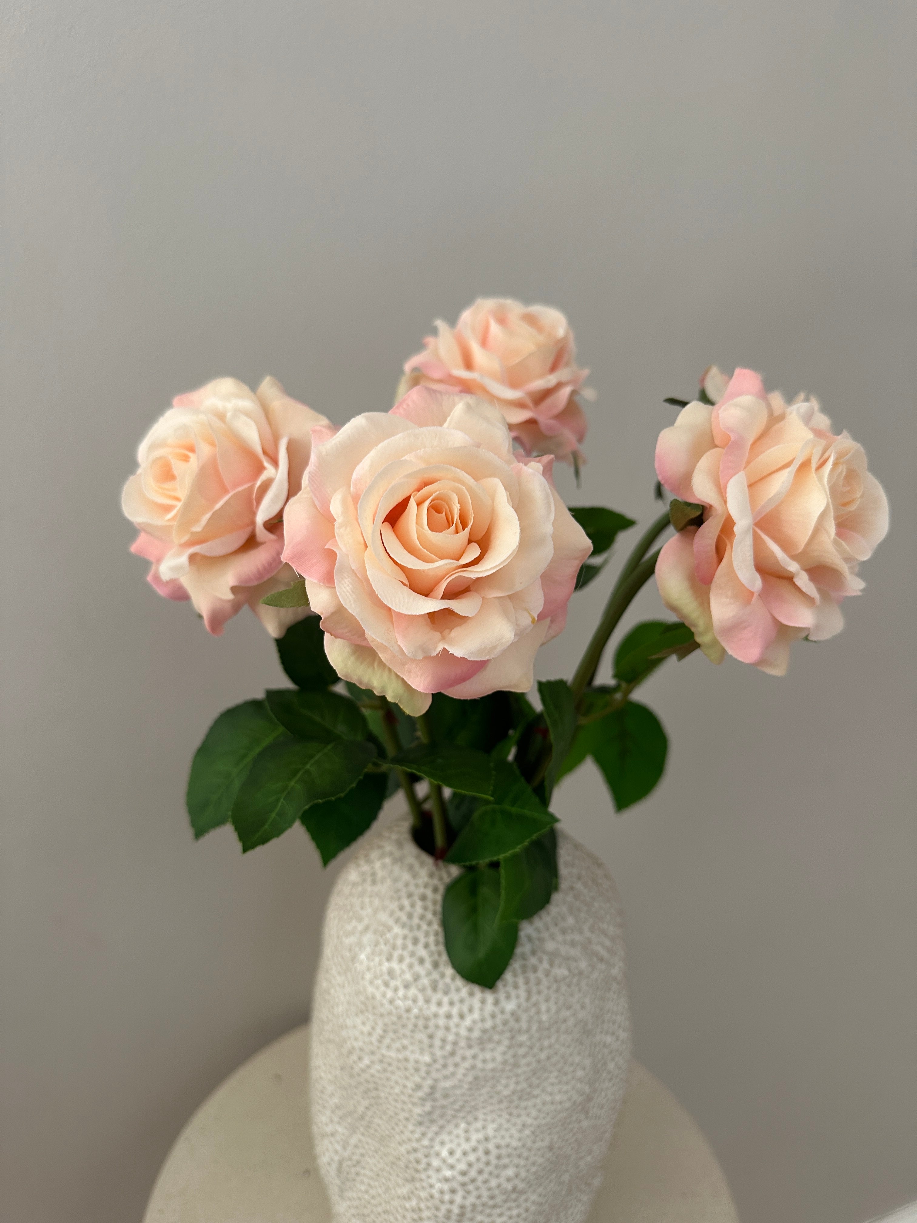 Smuk buket af 5 smukke klassiske kunstige roser. Stilkene er 49 cm lange.
