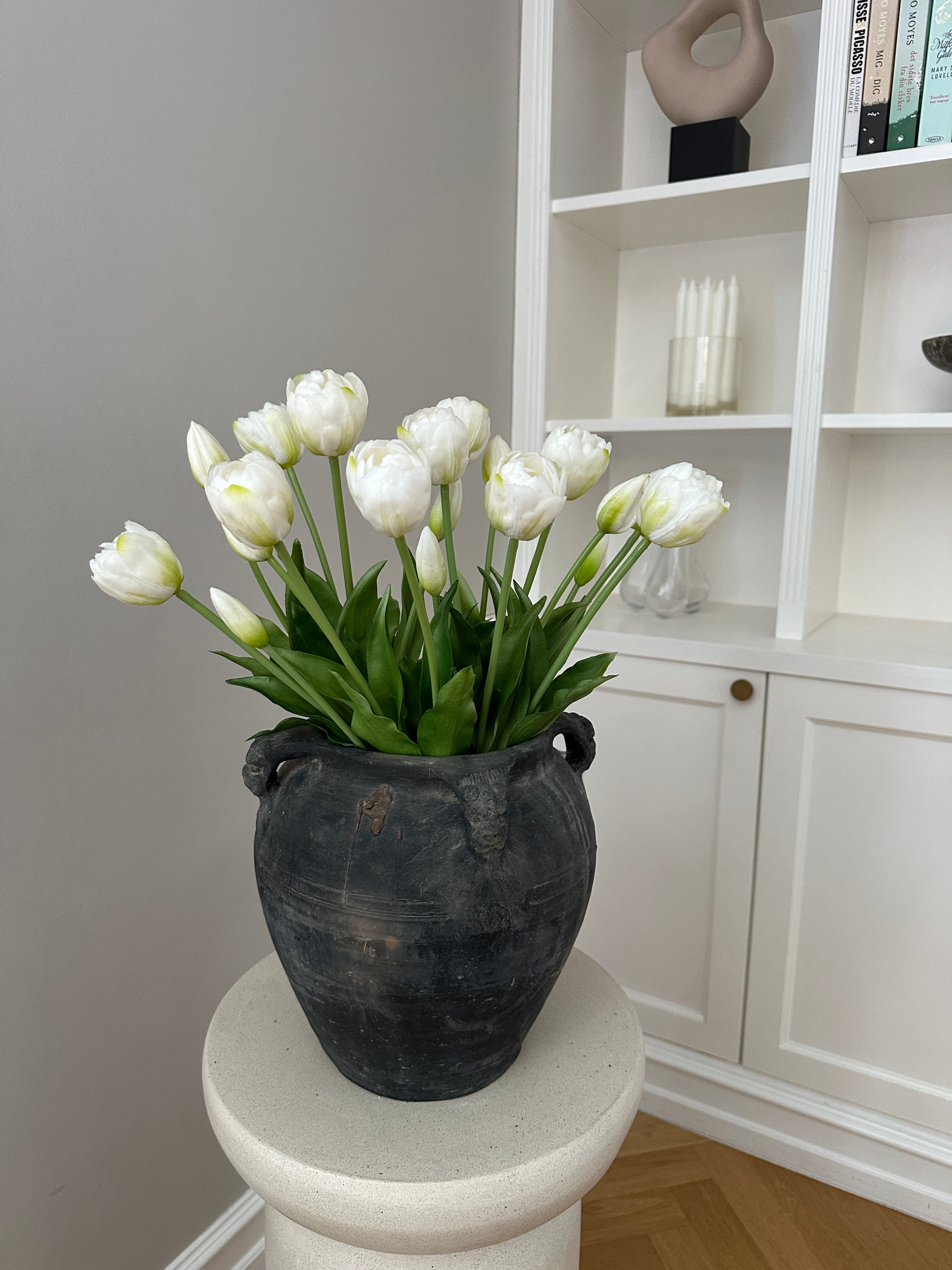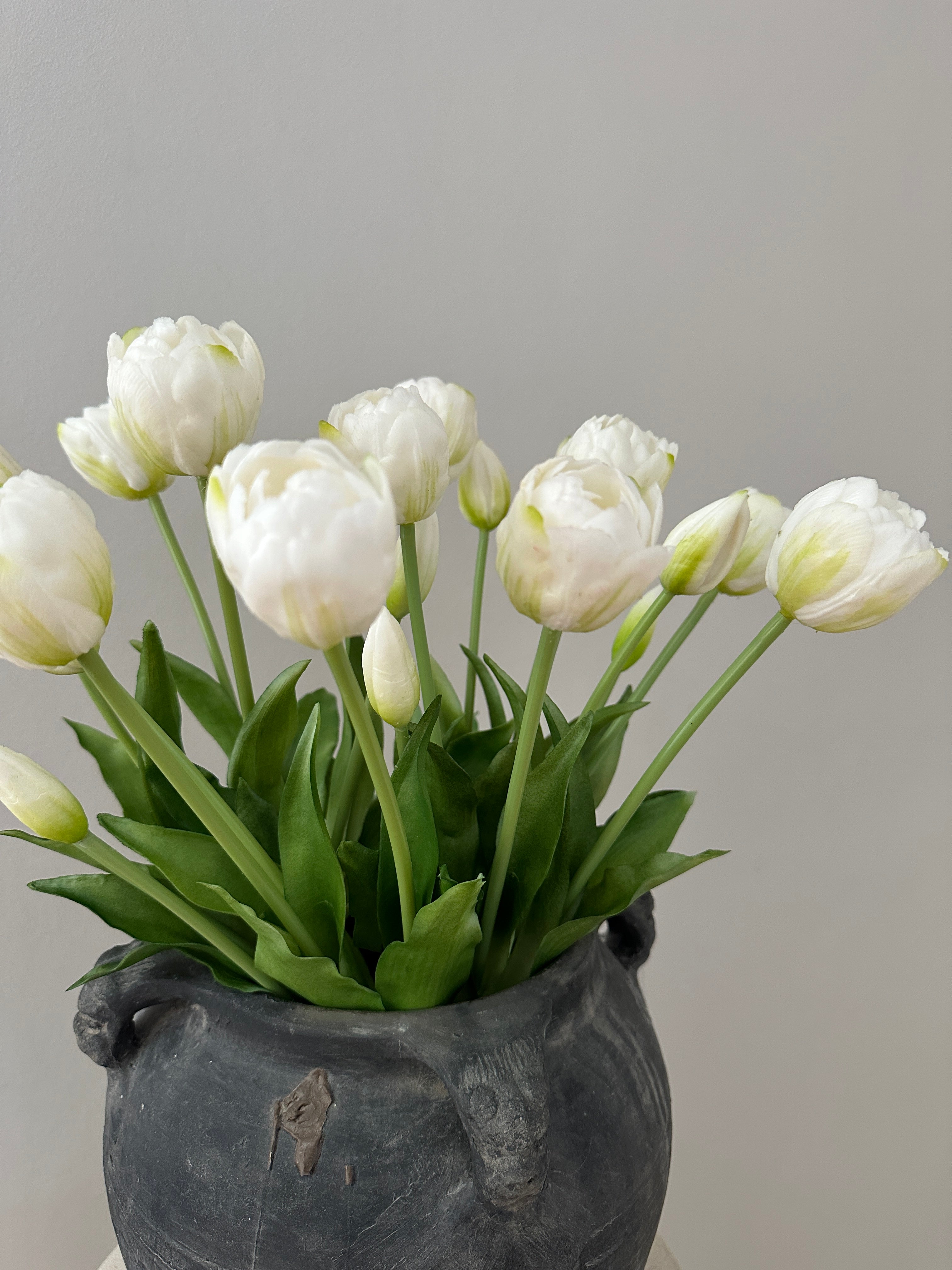 Kunstig ‘Dobbelt blomstrende’ Tulipan buket - Hvid