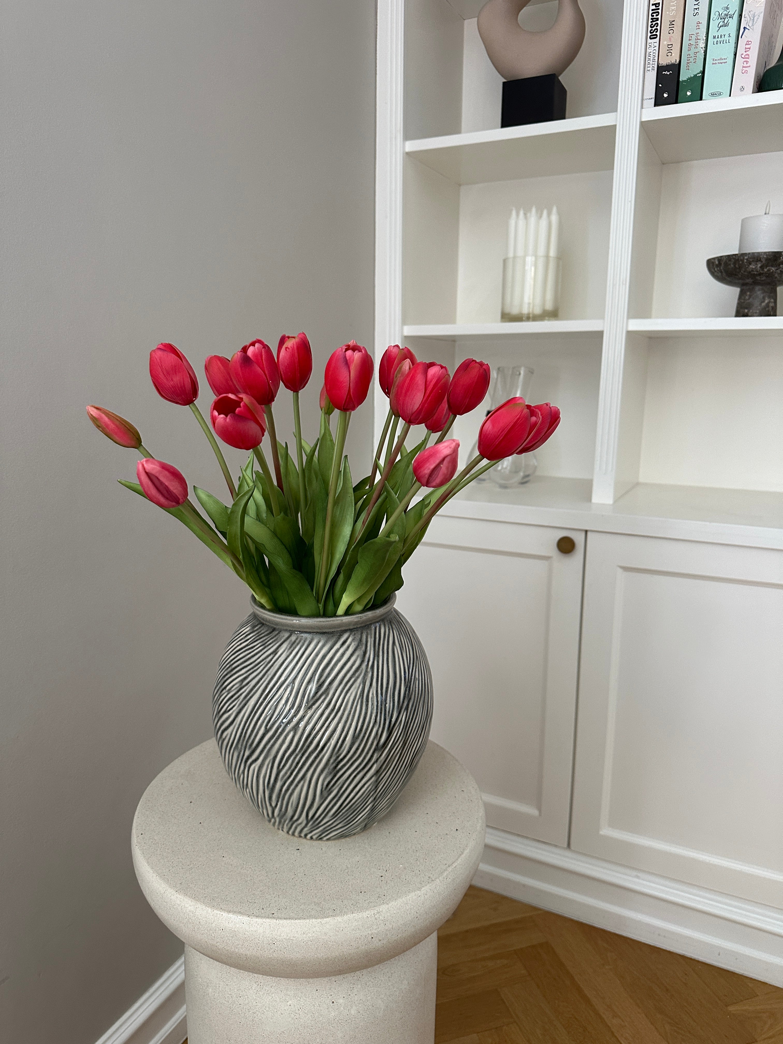 Kunstige blomster: Når du modtager buketten er det vigtigt, at du former og bukker stilkene, så buketten passer perfekt til netop din vase. Stilkene er ofte meget lange, men ved at bukke dem får du præcis det udtryk du godt kan lide. Så lad kreativiteten slippe løs!