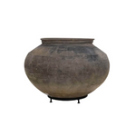 Smuk vintage lerkrukke med jernfod. Krukken har smukke detaljer og en skøn rustik patina. Alle krukkerne er unika, og kan derfor variere i farve og størrelse (omkring 30 cm uden fod. Foden måler ca 5 cm).