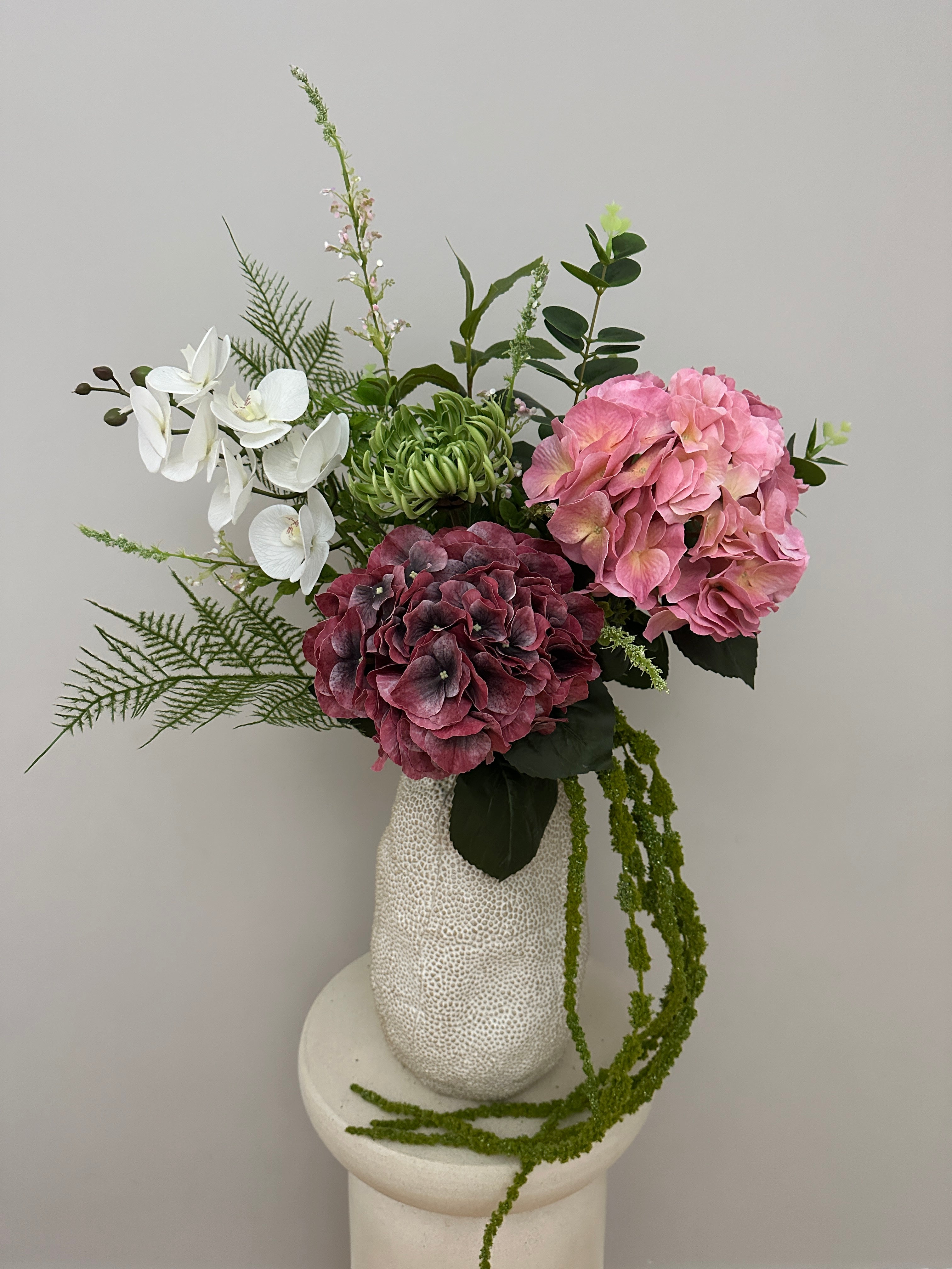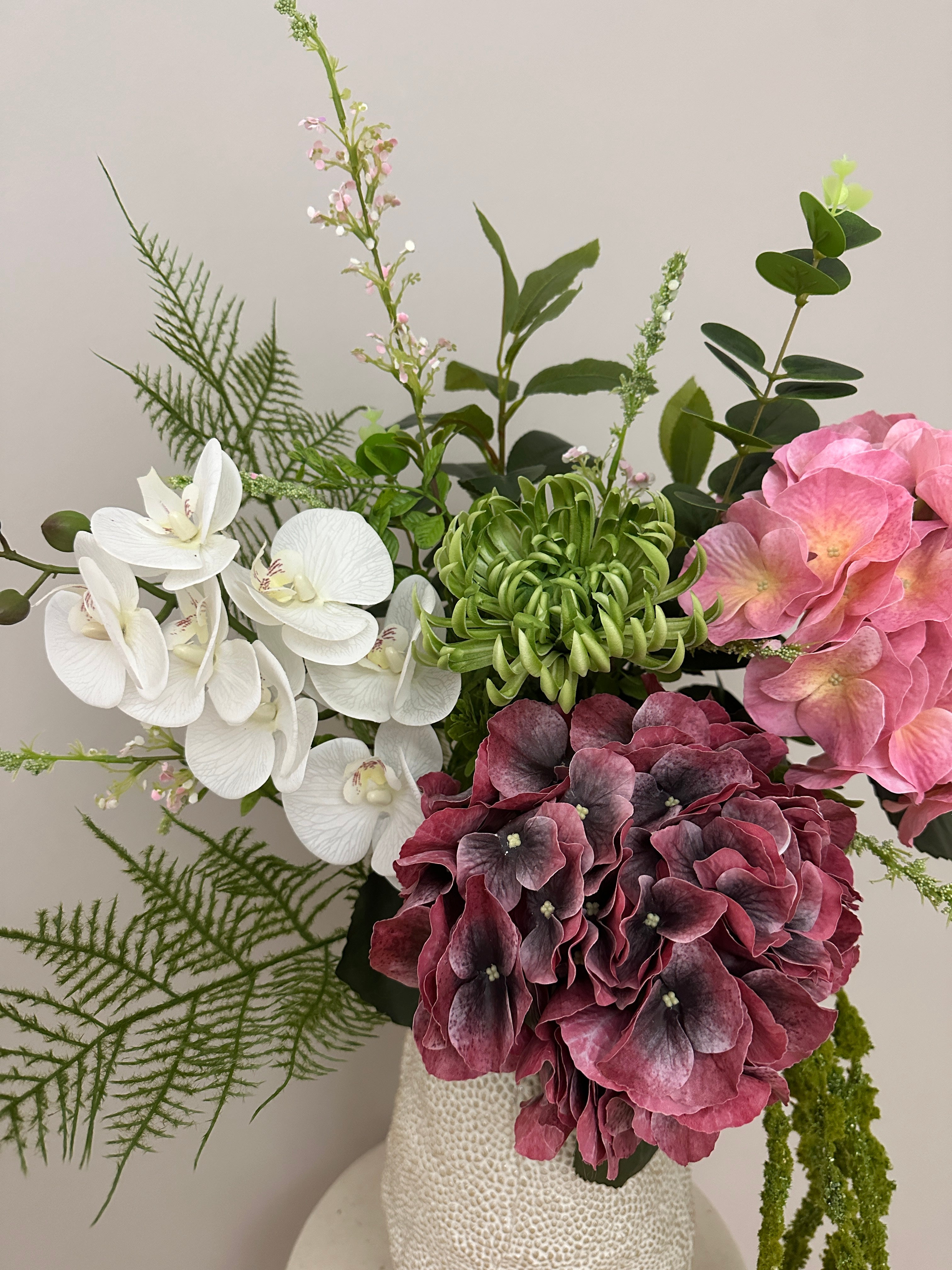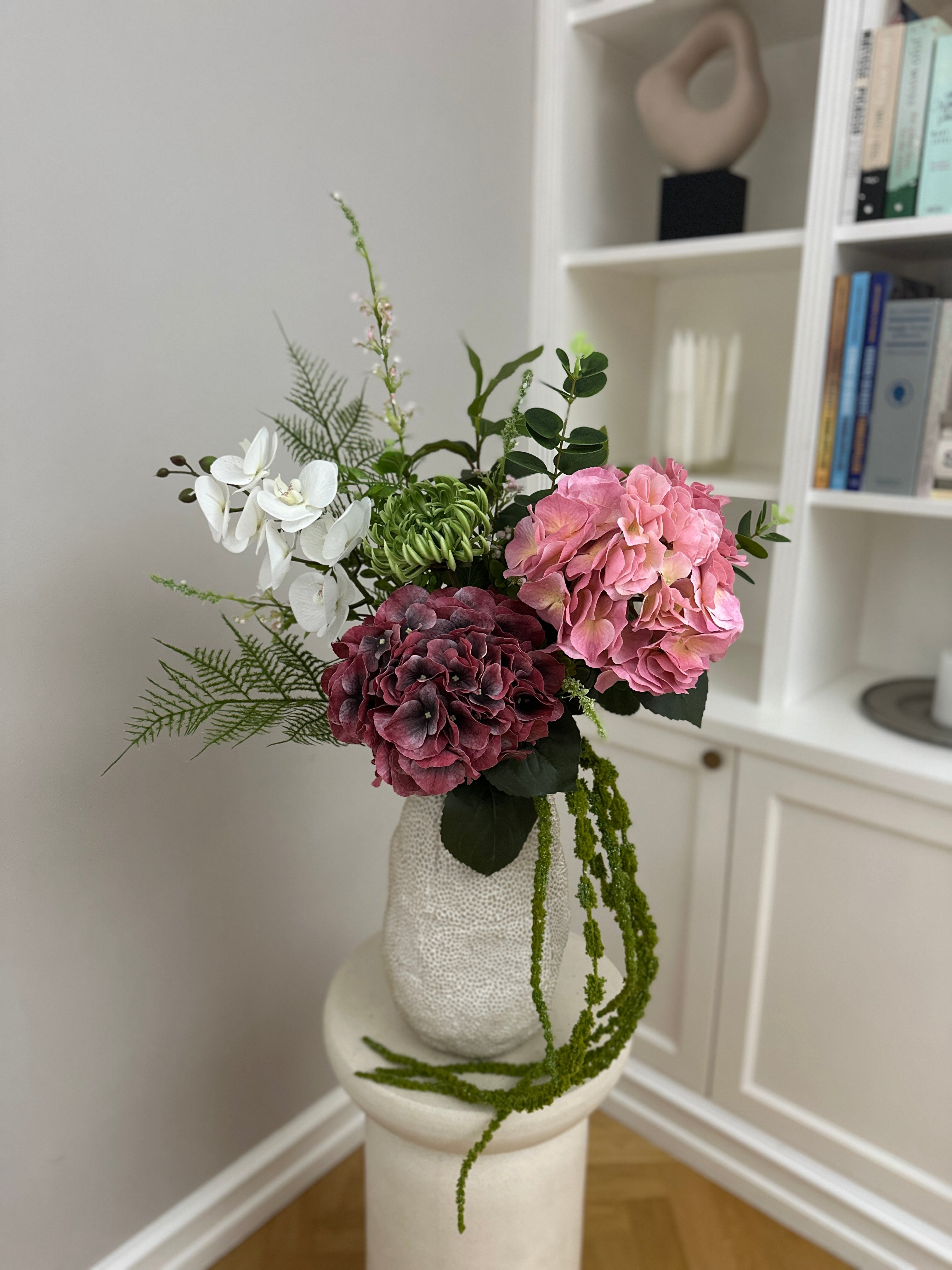 Smuk buket af kunstige blomster, som giver et tidløst touch til ethvert rum. De naturtro blomster ser ud som friske, og du kan nyde dem uden bekymringer om vanding eller pleje. Den perfekte dekoration til hjemmet, kontoret eller som gave, der kan glæde i lang tid.