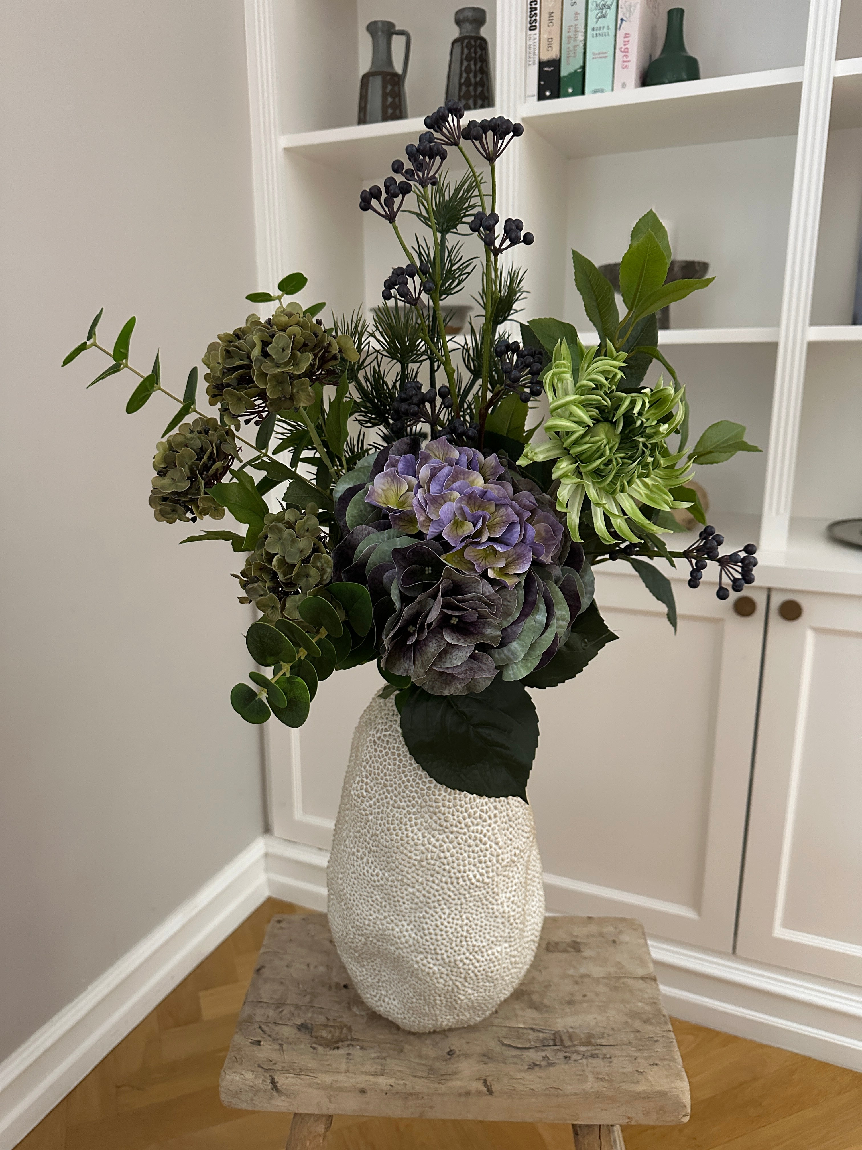 Elegant buket af kunstige blomster i årstidens smukkeste farver.